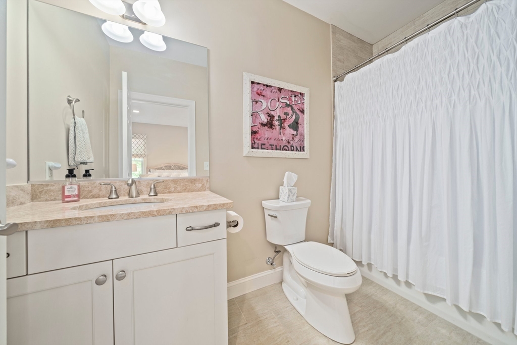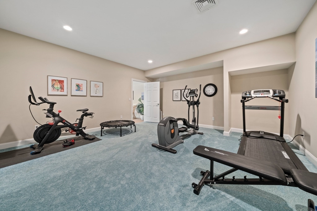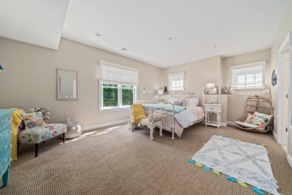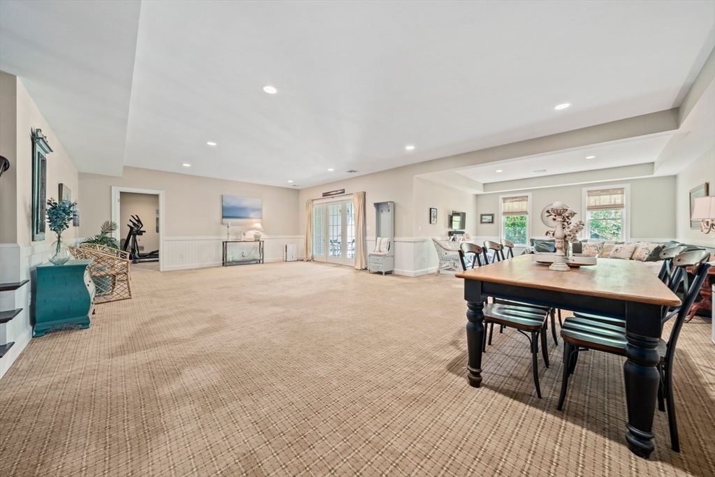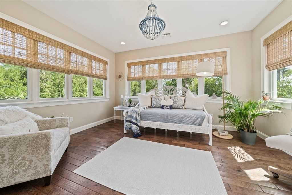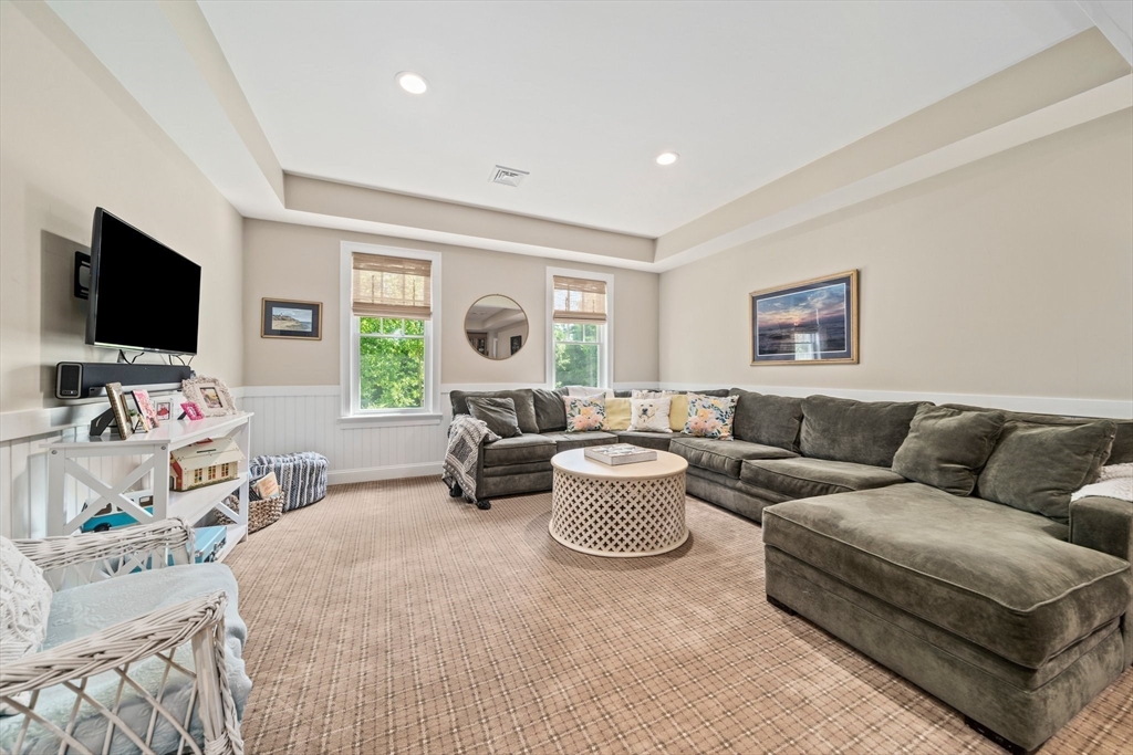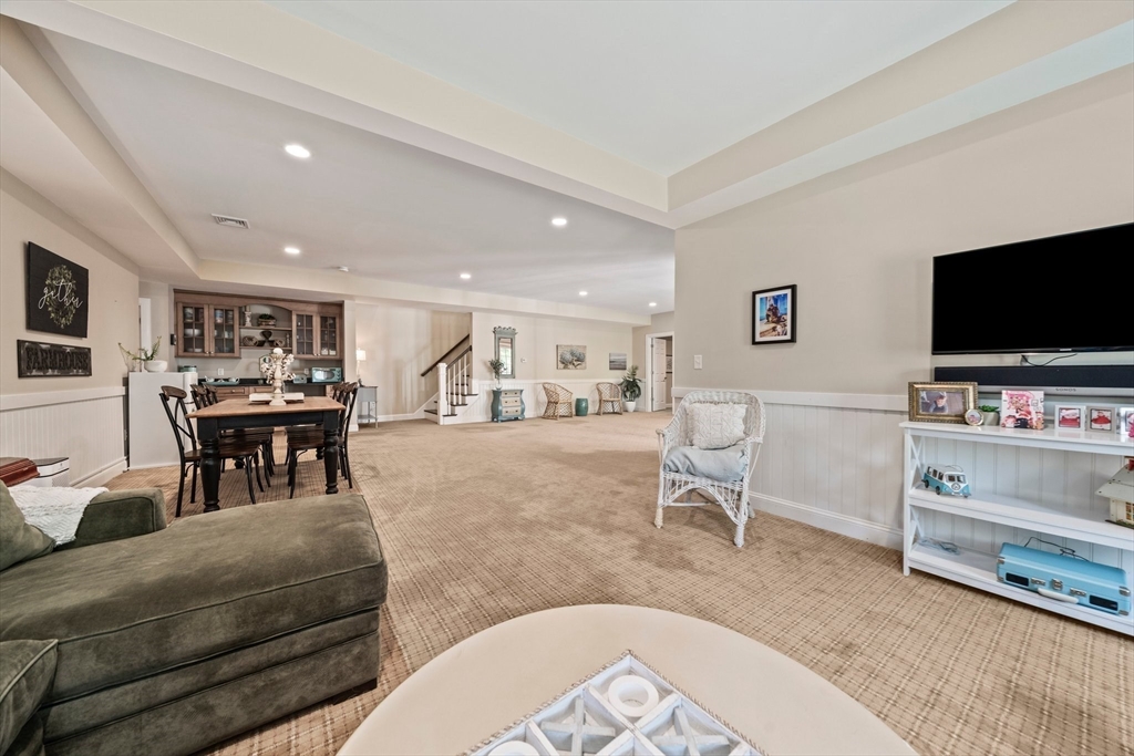 Welcome to Cook Estates, where luxury coastal living meets unparalleled flexibility. This 4,823-square-foot Lindsay-style stand-alone condo is your gateway to the ultimate New England lifestyle. Situated just over a mile from Cohasset village with exclusive Sandy Beach access, this property offers peaceful seclusion plus great accessibility with access to Boston via ferry and Greenbush train in under an hour. The open floor plan, centered around a cozy see-through fireplace, is flooded with natural light while the four-season sunroom and two outdoor spaces create endless entertaining possibilities. Two spacious en-suite bedrooms complete the main level for seamless first floor living. The sunlight-filled ground level walkout features its own private patio and includes a private bedroom with en-suite bathroom, dedicated office and home gym, media room and half bath, plus kitchenette bar area. This high-end, move-in ready home offers maintenance free luxury in a private coastal setting.