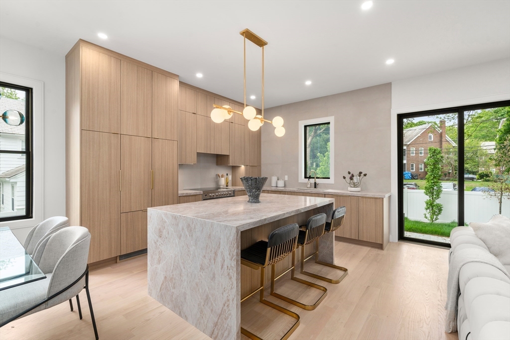 Welcome to 180 Hunnewell Ave, a luxury new construction development in Newton Corner by one of Newton's premier developers. This townhome has a wonderful open floor plan with high ceilings & hardwood floors. The kitchen features top of the line appliances, quartz countertops, custom cabinetry & a large island with seating for 3. The Main level also offers a dining room area & a gorgeous family room with a custom fireplace & sliding glass doors leading out to a patio and private fenced in yard. The second level offers a spacious primary ensuite with a spa like bathroom & walk in closet, 2 add’l bedrooms, full bath & laundry room round out this level. The finished 3rd floor offers an oversized flex space perfect for kids or a home office. The finished lower level offers a second family room, bedroom and full bath. Close to shops, restaurants, schools & public transportation.