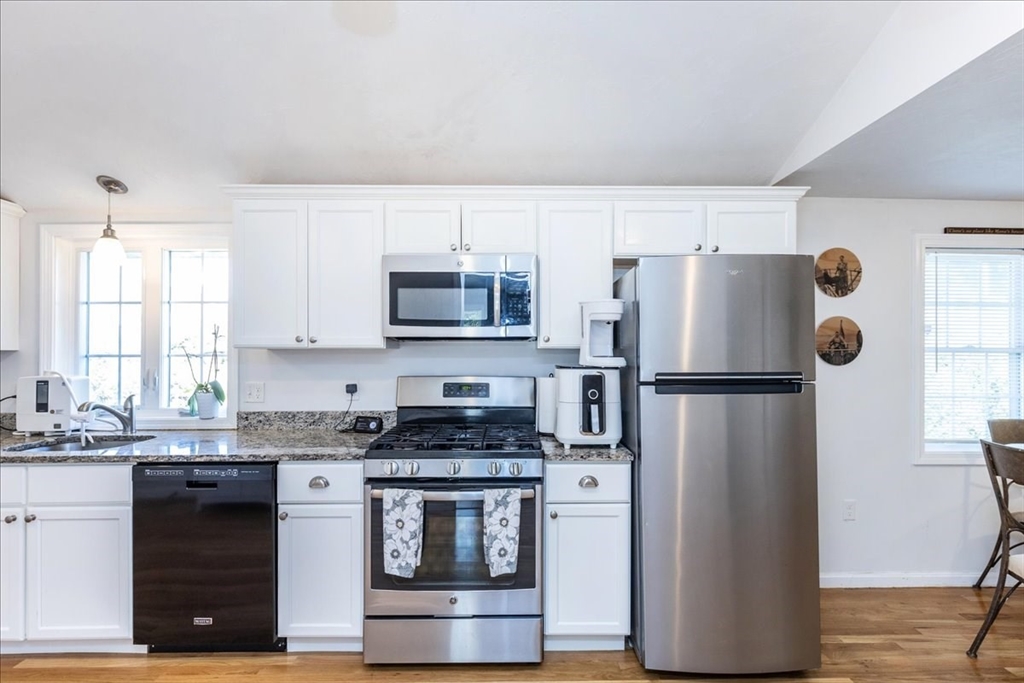 Welcome to this beautifully renovated 3-bedroom, 1-bathroom ranch-style home, perfectly blending modern updates with classic charm. Located on a quiet street in desirable Holbrook, this move-in ready gem features an open-concept layout that’s ideal for today’s lifestyle. Step inside to find a bright and airy living space with updated flooring & a seamless flow from the living room to the dining area and kitchen. The newly renovated kitchen boasts sleek cabinetry, stainless steel appliances, granite countertops, and direct access to a spacious deck — perfect for entertaining or enjoying your morning coffee. All three bedrooms offer ample natural light and generous closet space, while the updated full bathroom includes a closet with washer and dryer connections. Outside, enjoy a private backyard with room to play, garden, or relax. Conveniently located close to schools, parks, shopping, commuter routes, & the commuter rail station this turnkey ranch is the perfect place to call home.