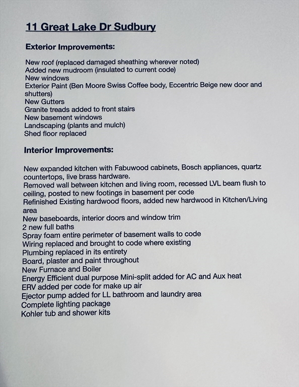 Charming fully renovated home in one of Sudbury's most sought after neighborhoods. *4 bedroom septic!* This move-in ready property features a full gut renovation with hardwood floors, new custom kitchen featuring Bosch appliances, Large quartz island, newly created mudroom, and 2 brand new full bathrooms. The main level offers 3 bedrooms, primary bedroom with en suite bath and large windows that bring in an abundance of natural light. Fireplaced living room open to the kitchen ideal for entertaining. The new finished lower level provides exceptional flexibility with a family room, private large office suitable for guests and an additional full bath. Enjoy the fenced backyard on a beautiful corner lot perfect for play or entertaining. Ideally located within walking distance to the town pool, athletic fields, playground, and lake. This home combines modern updates, functional living spaces, and an unbeatable neighborhood setting. Please see the comprehensive list of improvements attached