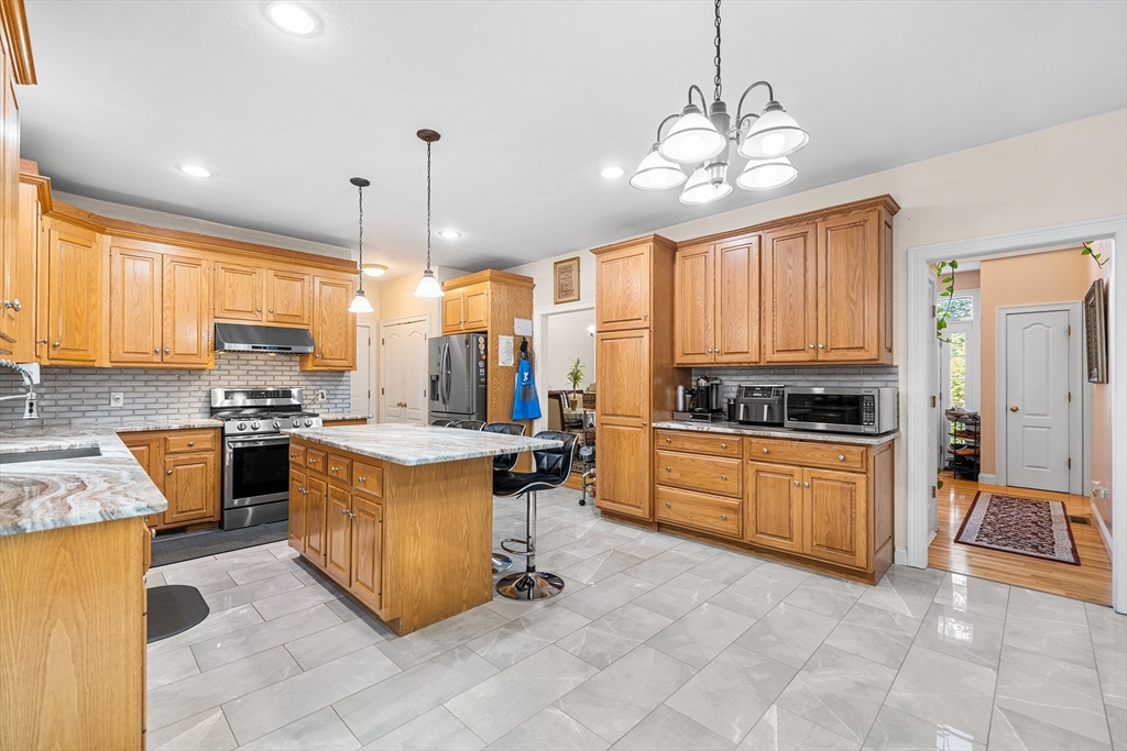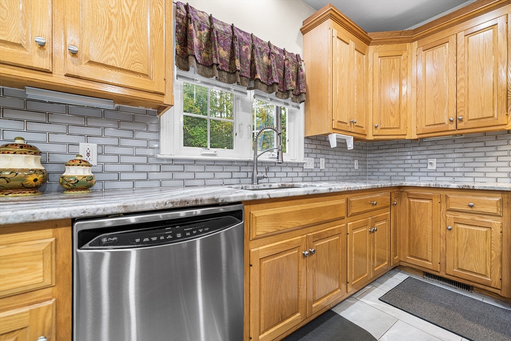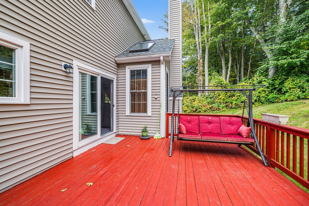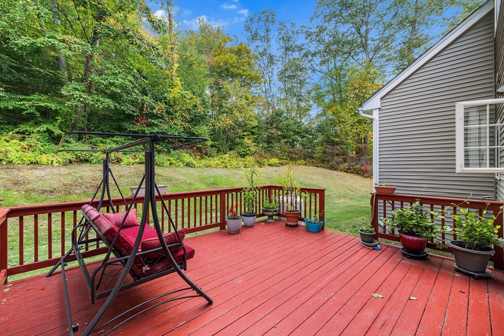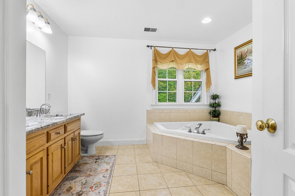 Move-in ready and beautifully designed, this 4-bedroom, 2.5-bath Colonial offers spacious living on a scenic, tree-lined acre+ lot in Charlton. Located in a very quiet neighborhood with incredibly quick access to Route 20, the home features 9-ft ceilings and a two-story foyer, hardwood floors in the living and dining rooms, and tile in the kitchen and baths. The kitchen was renovated in 2021 with new granite countertops, a stylish backsplash, and updated tile in 2023. A rare gas stove complements the custom cabinetry. Upstairs, the 2nd-floor bedrooms and hallway floors were redone in 2021, and both full baths were upgraded with granite counters. The oversized deck overlooks the private backyard. Enjoy HydroAir heating with central air, a 3-car garage, detailed trim, and a spacious main suite with soaking tub, double vanity, and 4-ft shower—blending comfort, quality, and convenience.