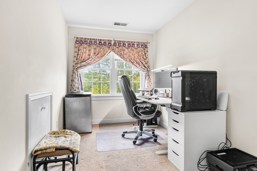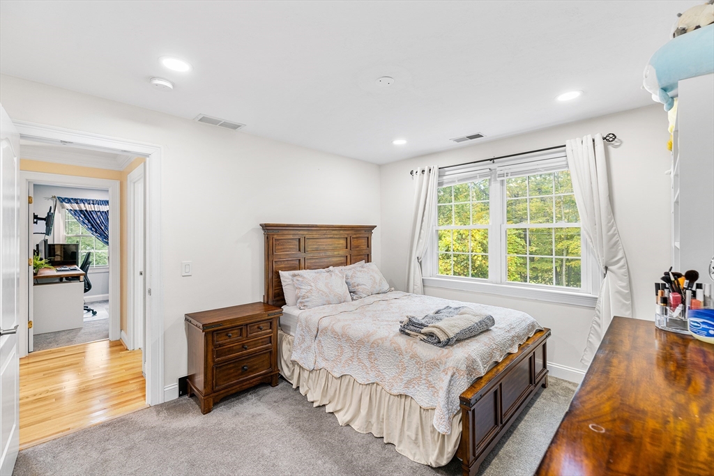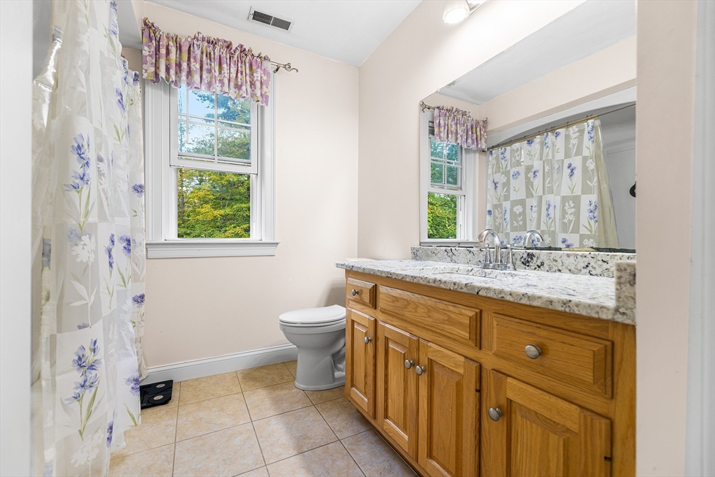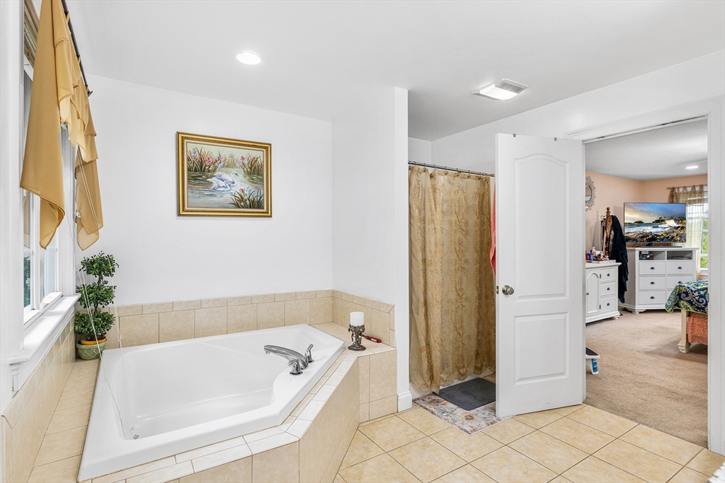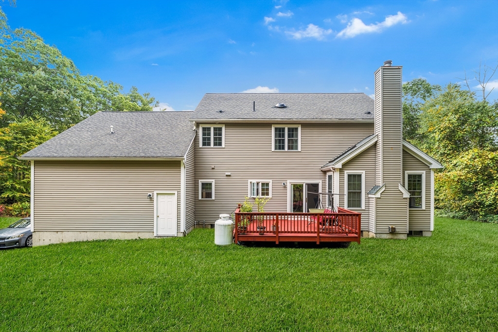 Move-in ready and beautifully designed, this 4-bedroom, 2.5-bath Colonial offers spacious living on a scenic, tree-lined acre+ lot in Charlton. Located in a very quiet neighborhood with incredibly quick access to Route 20, the home features 9-ft ceilings and a two-story foyer, hardwood floors in the living and dining rooms, and tile in the kitchen and baths. The kitchen was renovated in 2021 with new granite countertops, a stylish backsplash, and updated tile in 2023. A rare gas stove complements the custom cabinetry. Upstairs, the 2nd-floor bedrooms and hallway floors were redone in 2021, and both full baths were upgraded with granite counters. The oversized deck overlooks the private backyard. Enjoy HydroAir heating with central air, a 3-car garage, detailed trim, and a spacious main suite with soaking tub, double vanity, and 4-ft shower—blending comfort, quality, and convenience.