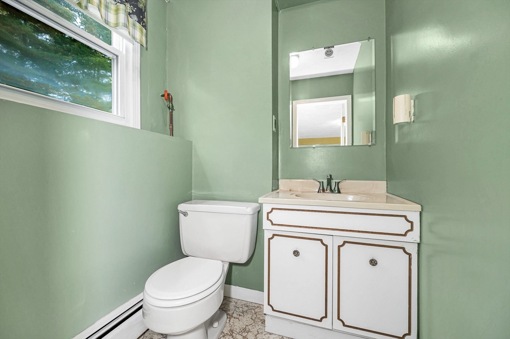 Discover this inviting Raised Ranch home nestled on a level acre lot. Lovingly maintained by the original owner. Featuring 3 bedrooms and 2.5 baths including the main bedroom with an en-suite. The kitchen offers ample natural light. The lower-level family room features a brick fireplace and a half bath. Step outside to find a deck, perfect for enjoying outdoors. Additional features include a 2-car garage and updated central air conditioning. Convenient commuter location, close to highways and shops.