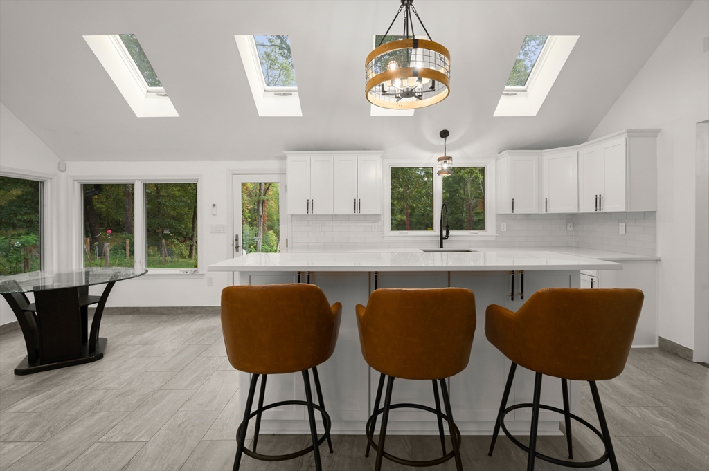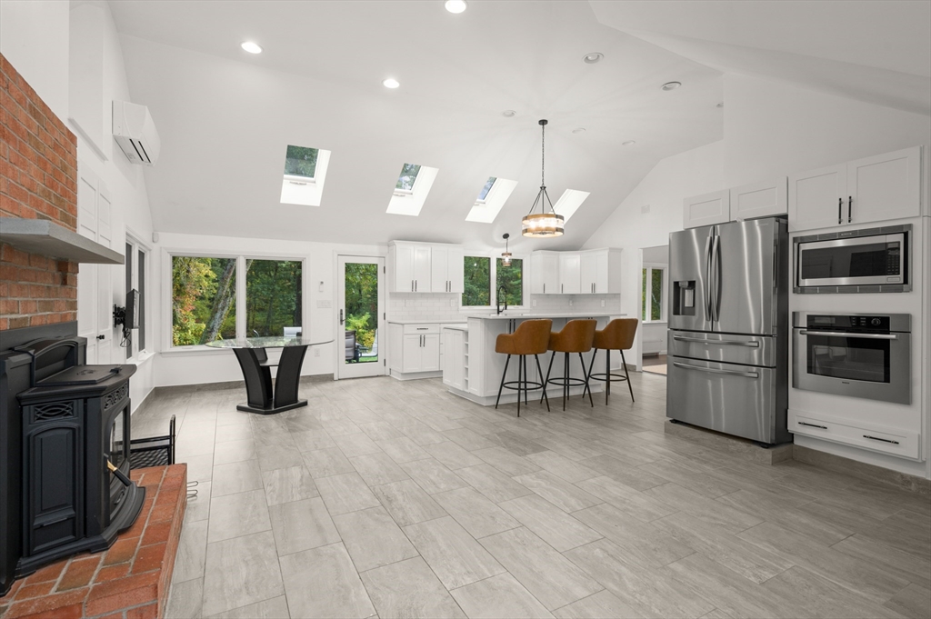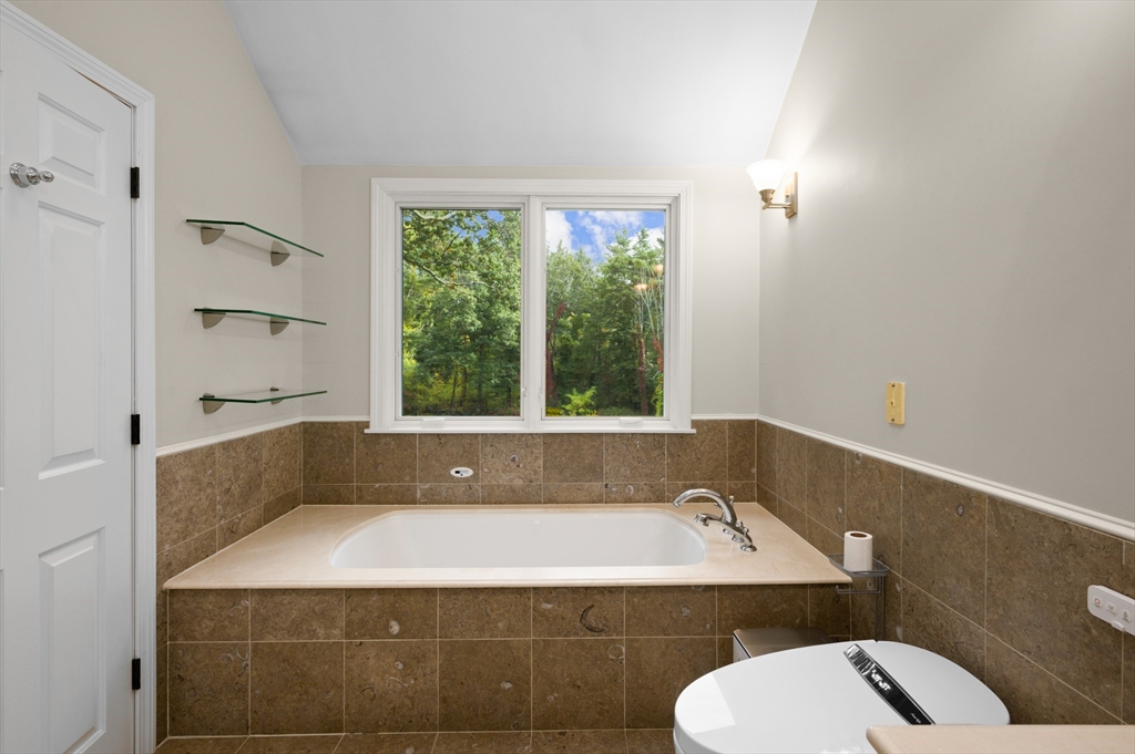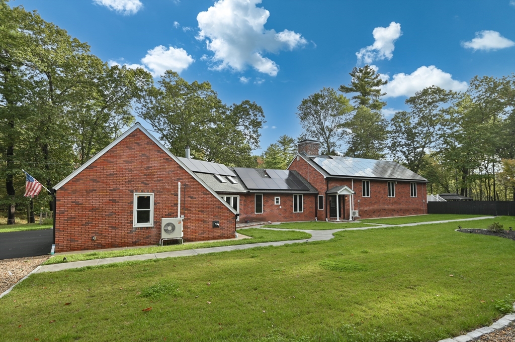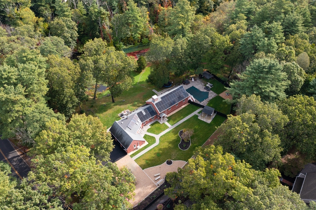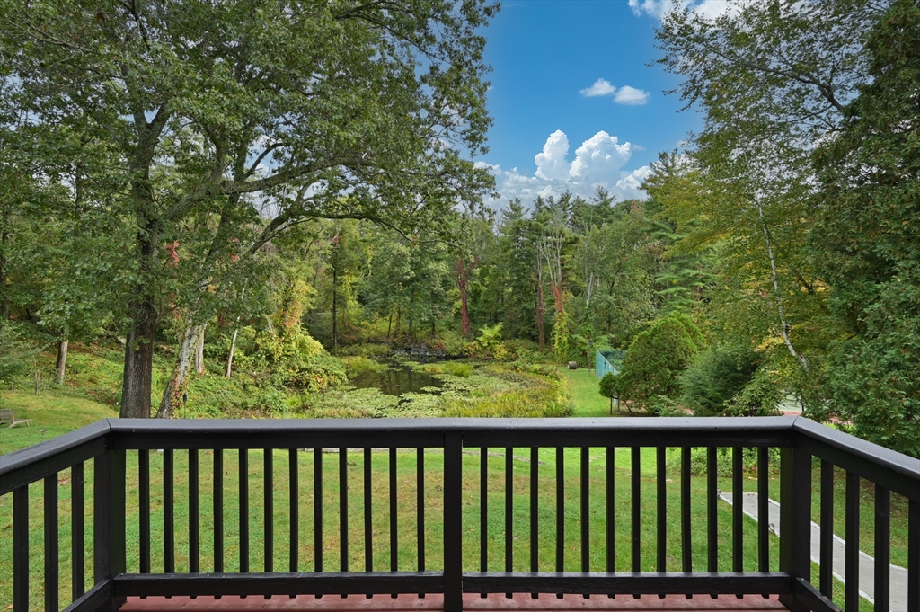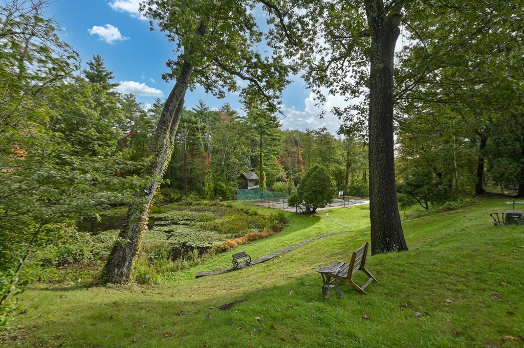 Welcome to your dream estate in Boxford. A substantial parcel, 3.91 acres of stunning land with mature woods. This impressive three thousand square foot home with custom appointments boasts five spacious bedrooms and two and a half baths, multiple patios and decks. Perfect for family and entertaining. Open concept chef’s kitchen with top-end appliances. Principal bedroom ensuite with walk-in closet. Four cozy fireplaces. Three garages. Dive into luxury with your own pool, hot tub, and tennis court, all nestled beside a serene natural pond. Generous-sized family/game room. The property offers an expansive outdoor canvas for creating your ideal environment. Imagine the possibilities for outdoor living and recreation. Paid for solar generation system. Salt water pool and spa with updated systems. Mini-split A/C system. Patio level has full windows and doors. See attachments for floor plans and all the recent updates. See the home by appointment only.