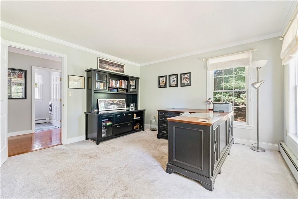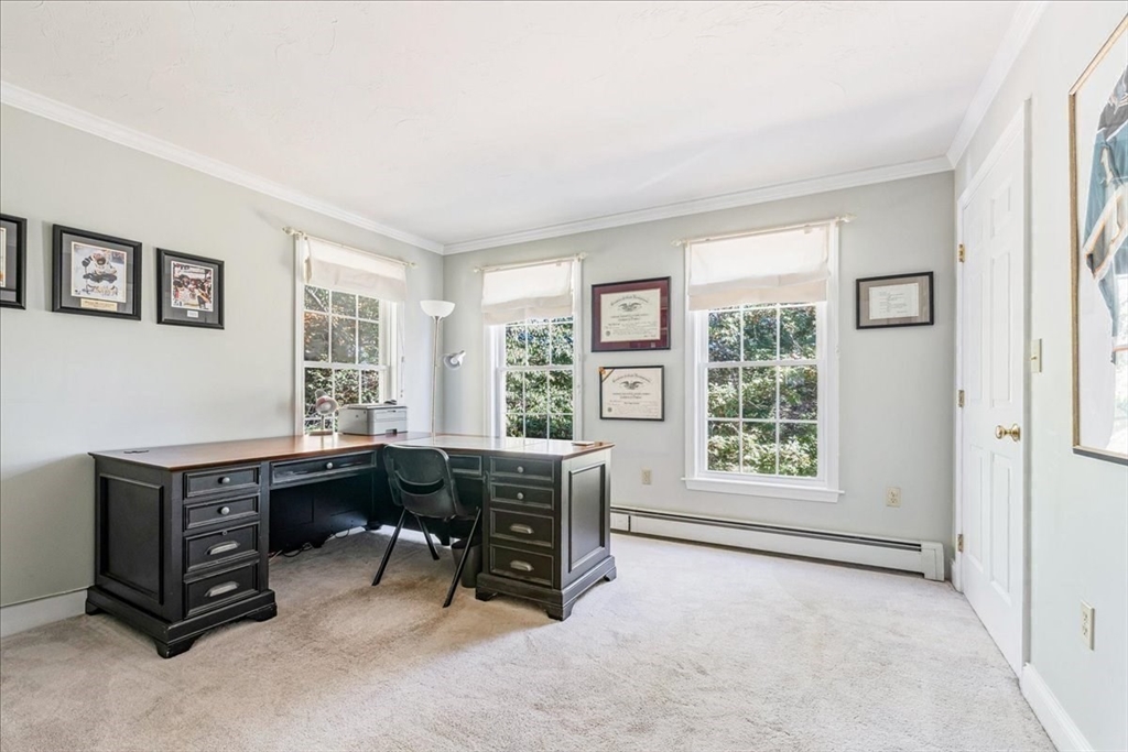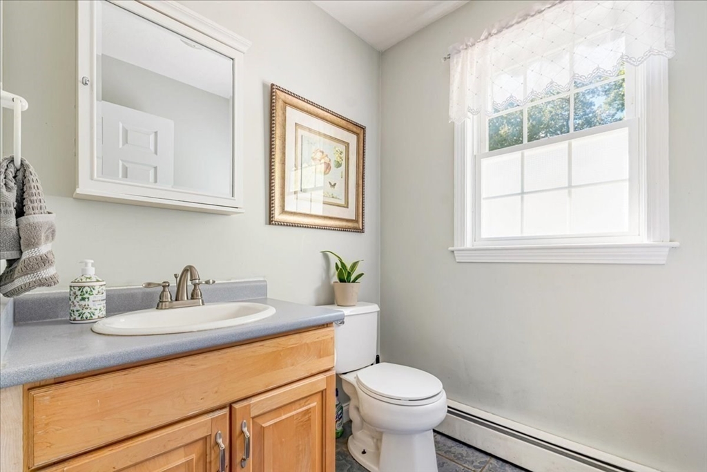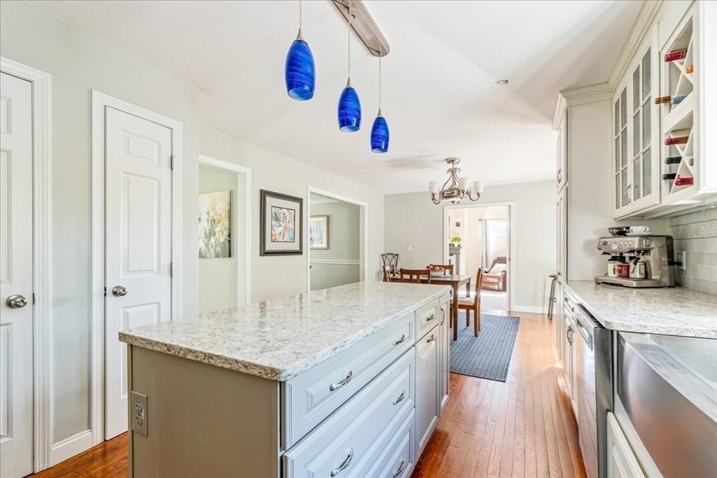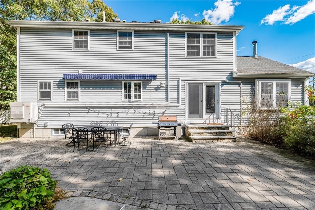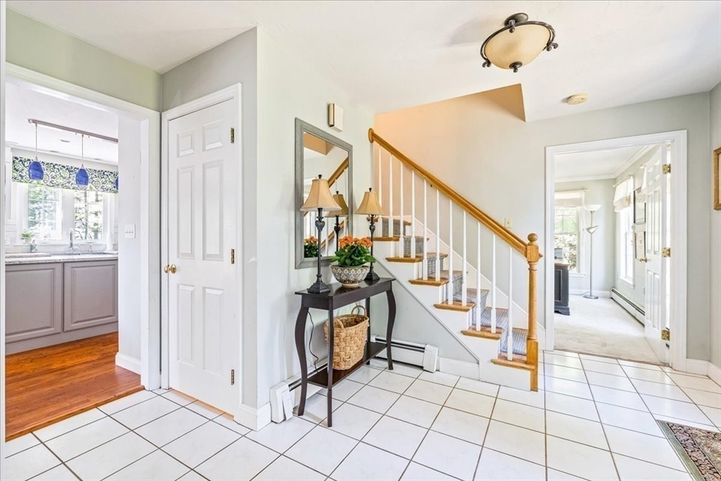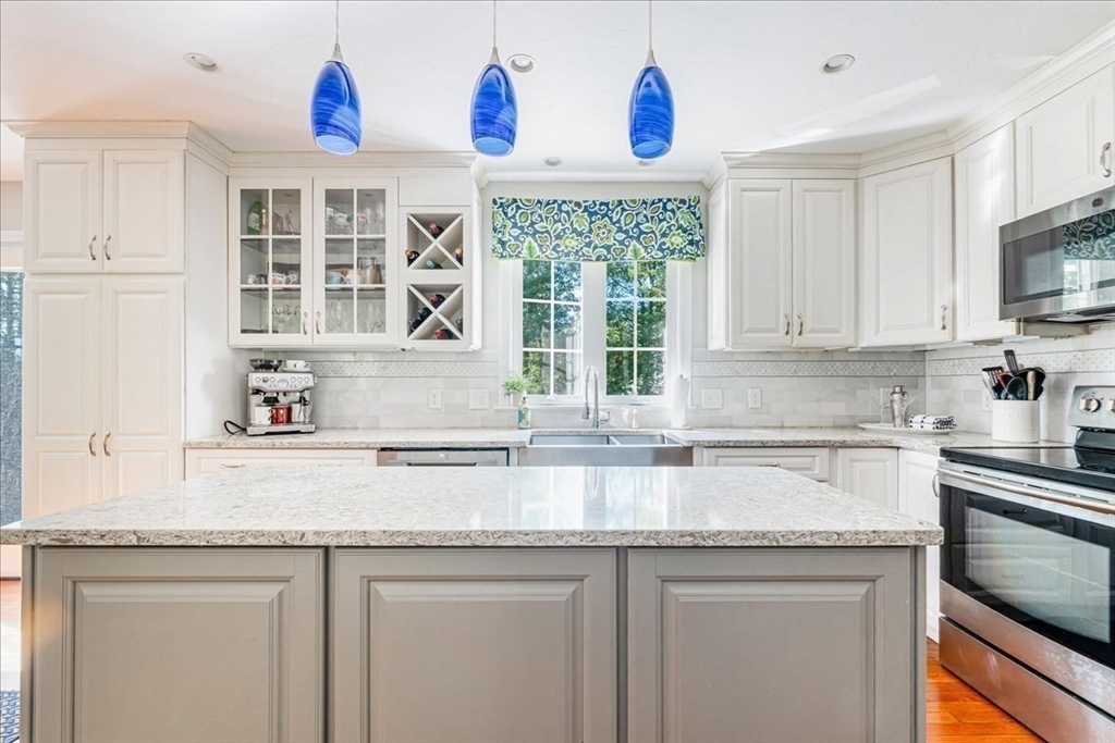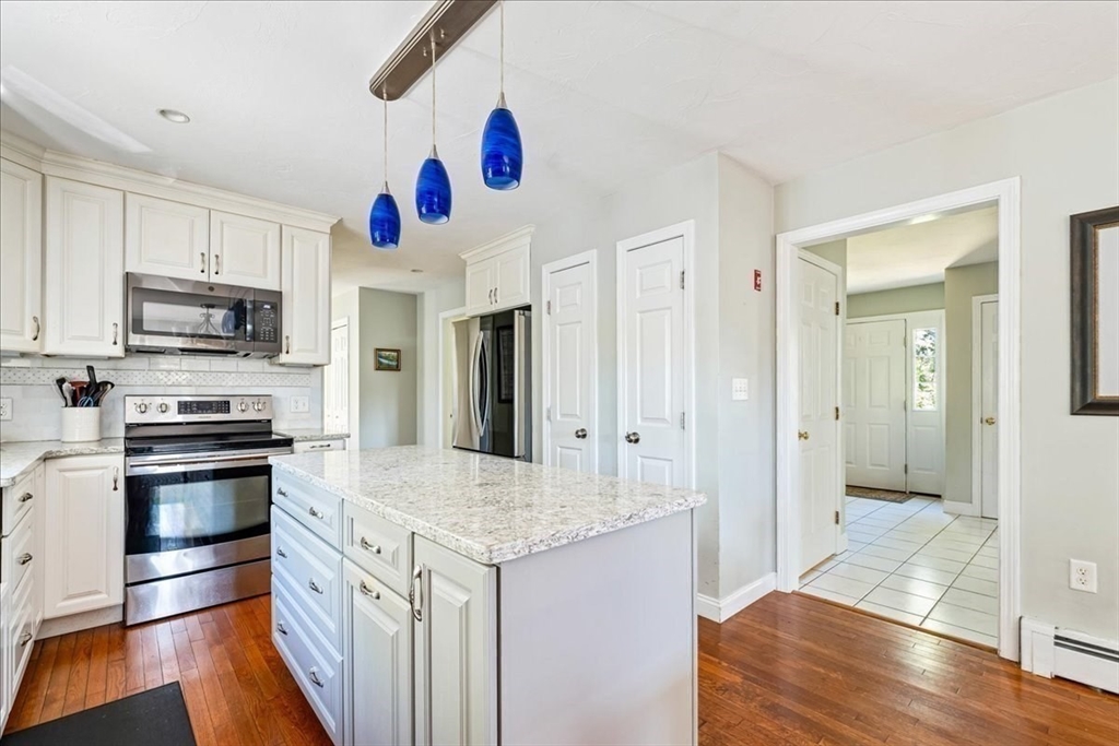 This welcoming 4-bedroom, 2.5-bath Center Entrance Colonial is set on 1.3 private wooded acres abutting Granite Estates. The heart of the home is the stunning remodeled kitchen, showcasing quartz countertops, marble backsplash, center island, stainless steel appliances, pantry, and gleaming hardwood floors. French pocket doors lead to a spectacular vaulted family room with fireplace and transom windows perfect for relaxing or entertaining. Step outside and discover your own backyard retreat featuring a sparkling kidney-shaped in-ground pool, large patio, awning, fencing, and storage shed, ideal for endless summer gatherings with family and friends. The first floor also offers a formal dining room, home office, convenient laundry room, and a half bath with ceramic tile flooring. Upstairs, you’ll find 4 generous bedrooms and 2 beautiful full baths. The finished LL provides incredible versatility w/mudroom and 2 bonus rooms perfect for media room, playroom or gym. ~3 mi to Commuter Rail.