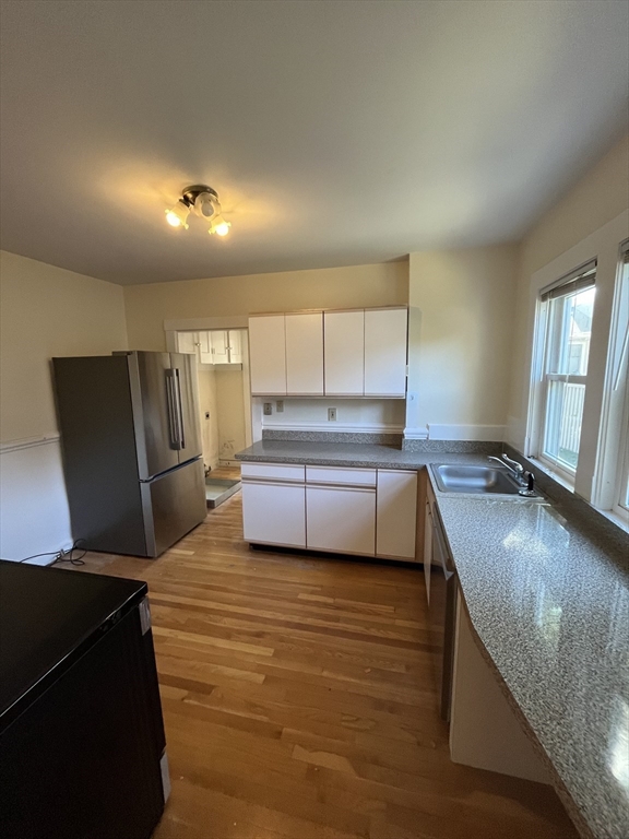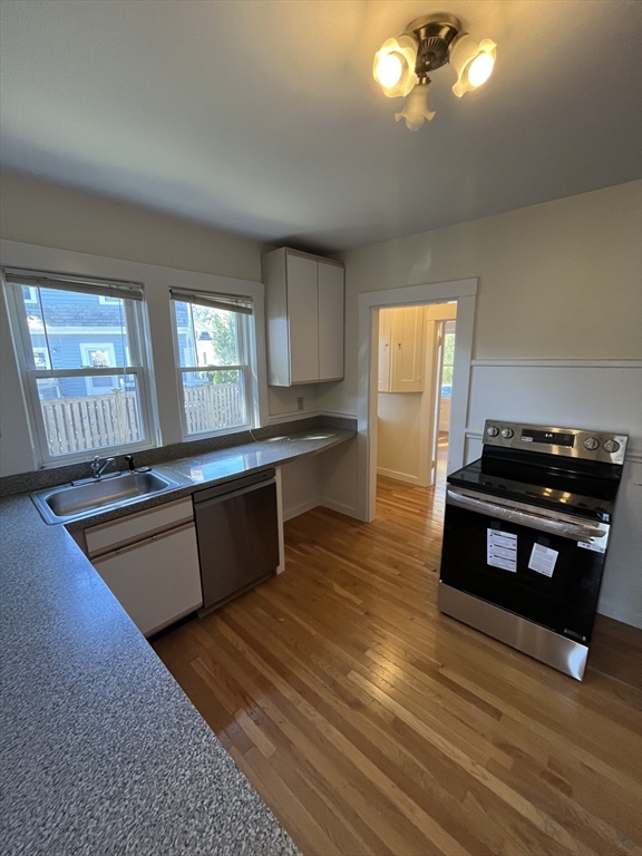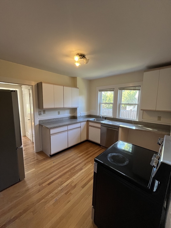 Welcome to 49 Katherine - a spacious, sunny first floor apartment located in a desirable Watertown neighborhood. This inviting space offers a large living room, formal dining room, kitchen with modern appliances and large pantry, two good sized bedrooms with deep closets, a full bath, and office space. Hardwood floors throughout and W/D hookups in unit. There's an enclosed front porch and yard space to hang out, and comes with two off street parking spots. Don't miss out!