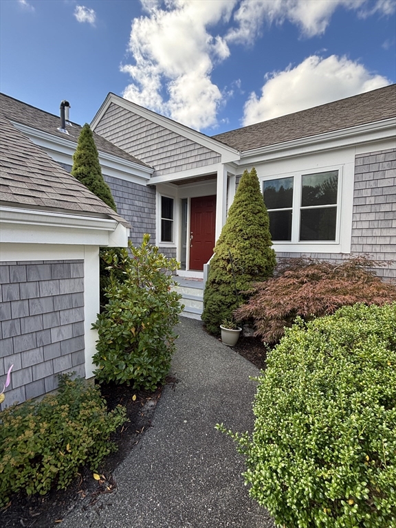 Welcome Home to The Pinehills! Discover this inviting single-level "J" floor plan, ideally situated in the desirable Winslowe’s View neighborhood. Sun-filled and thoughtfully designed, this home offers effortless living with a vaulted-ceiling living room, private deck, and a one-car garage with storage.The kitchen features granite countertops, tiled backsplash, and stainless steel appliances—perfect for both everyday cooking and entertaining. A spacious primary suite and a comfortable guest bedroom are conveniently located on the same level.Step outside to your private deck and enjoy expansive wooded views, creating a serene backdrop for morning coffee or evening relaxation. Every room is perfectly proportioned, making it easy to host friends and family or simply enjoy the comfort of home.This is Pinehills living at its best—move-in ready and waiting for you! Home has been virtually staged