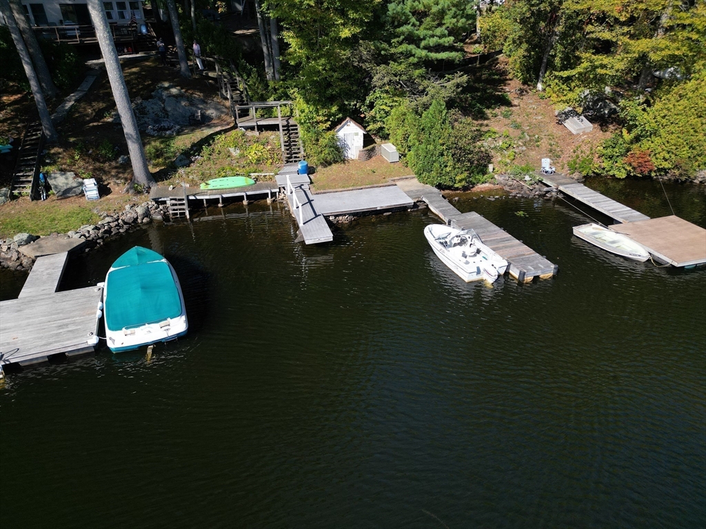 Ready for all the Fun to be had on Bare Hill Pond this Fall? Vacation All Year Round in this Lovely Two Bedroom Bungalow Home with Dock Just Steps from Bare Hill Pond. This private home offers spacious open style living on one floor with a country kitchen, living room with a rustic woodstove, and dining area. Two bedrooms and a clean and updated full bath round out this sunny space. The home has been well maintained and is ready for your water front living enjoyment. Plenty of space in the yard for your vacation toys, boats, snowmobiles (trails to your door) etc. There is an outbuilding, shed and pergola bar that add to your outdoor fun. Best of all you have your own private dock with panoramic views of the pond.