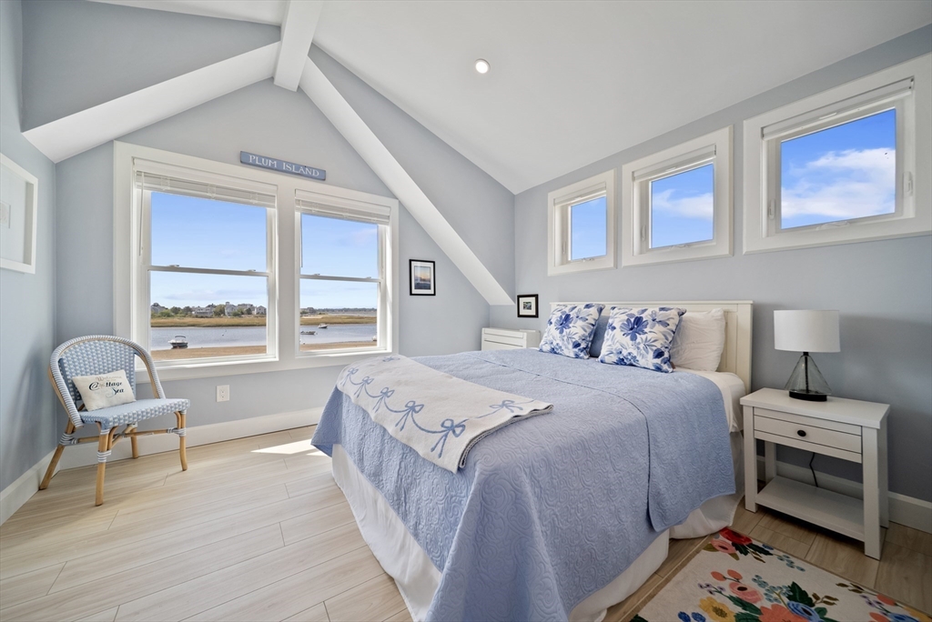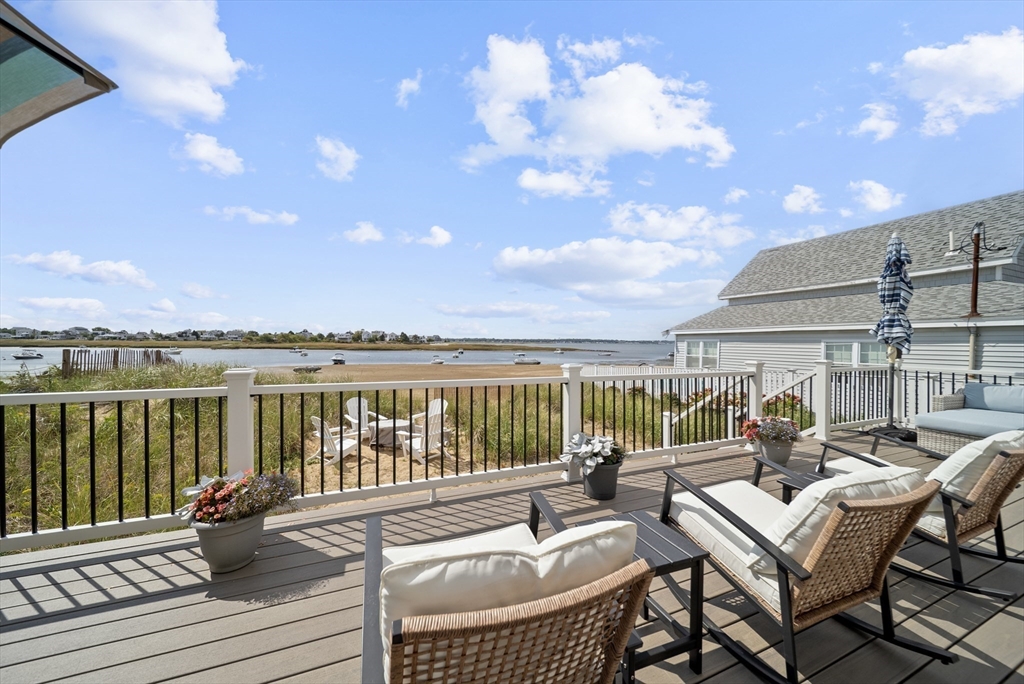 Basin-front on Plum Island! 5 Harbor Street is a rare waterfront property offering a true year-round vacation lifestyle. Enjoy your own private beach, sweeping water views, and a huge deck perfect for entertaining or taking in spectacular sunsets. This completely renovated, turnkey home features 3 bedrooms and 3 baths, with updated systems and low-maintenance design throughout. A modern, open-concept kitchen with stone countertops and a peninsula seating area flows seamlessly into bright, sun-filled living and dining areas. A charming custom accessory structure for your private office flex space. A private mooring makes boating effortless, completing this exceptional coastal escape. Whether you’re seeking a primary residence, second home, or investment, 5 Harbor Street offers rare waterfront living in one of Plum Island’s most coveted locations.