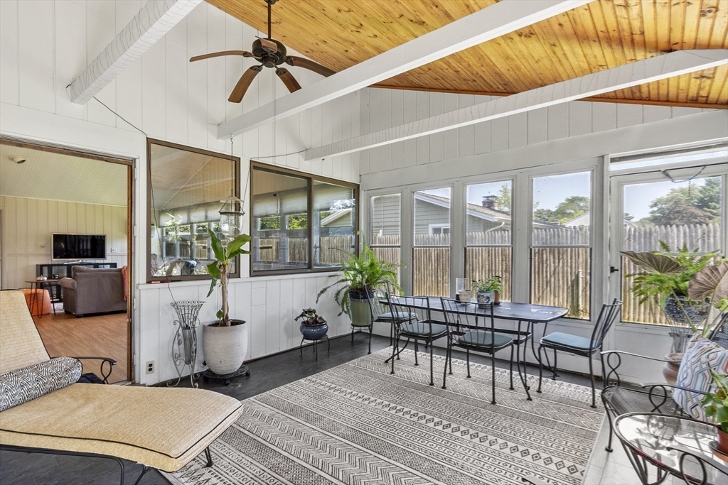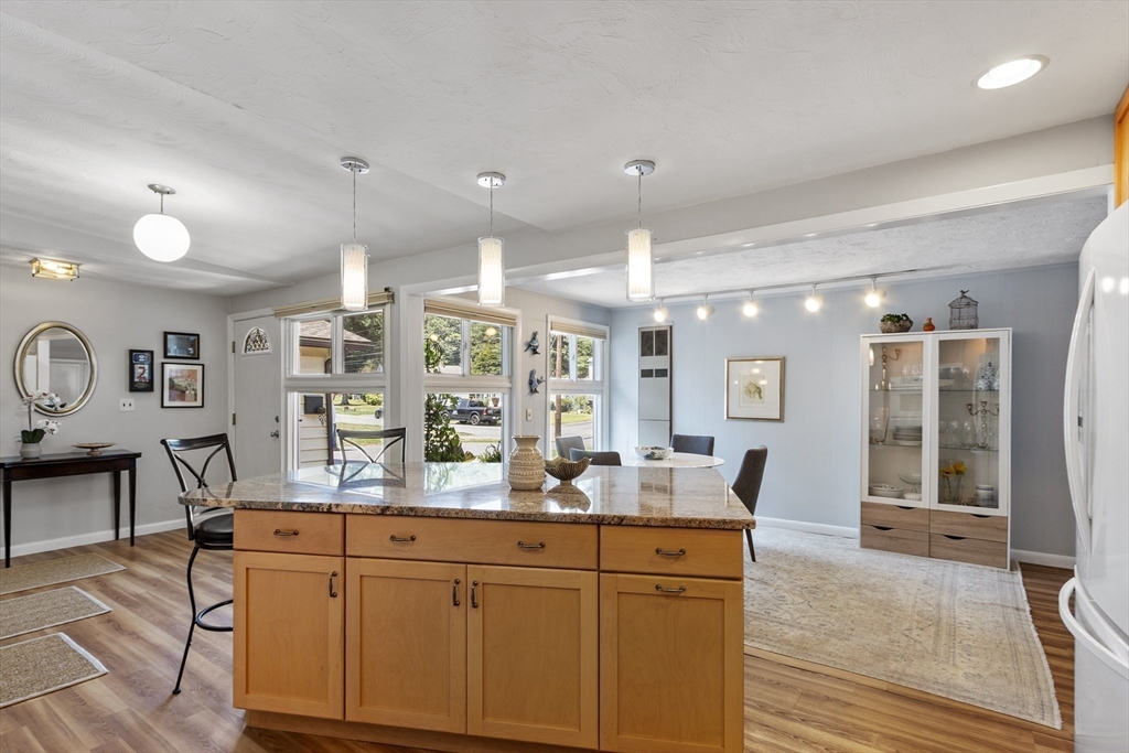 Welcome to this expansive Campanelli Ranch, where style, comfort, and functionality come together. Step inside to a home filled with sunlight and open flow, starting with the updated eat-in kitchen featuring an oversized island, breakfast nook, built-in pantry, and floor-to-ceiling windows. The kitchen seamlessly connects to the formal dining and living rooms, a vaulted family room, and a sunroom/screened porch overlooking the fenced, professionally landscaped backyard with shed. The primary suite boasts a flexible adjoining space—ideal for a home office or nursery—along with a full bath and laundry. Another bedroom offers a private half bath with potential to expand to a full, while the bonus room with exterior access provides endless possibilities for guests, rental income, or an in-law suite.Curb appeal shines with a charming paver walkway and welcoming front entrance, with a one-car garage and a spacious driveway. This home is a rare find, offering space, versatility, and charm.