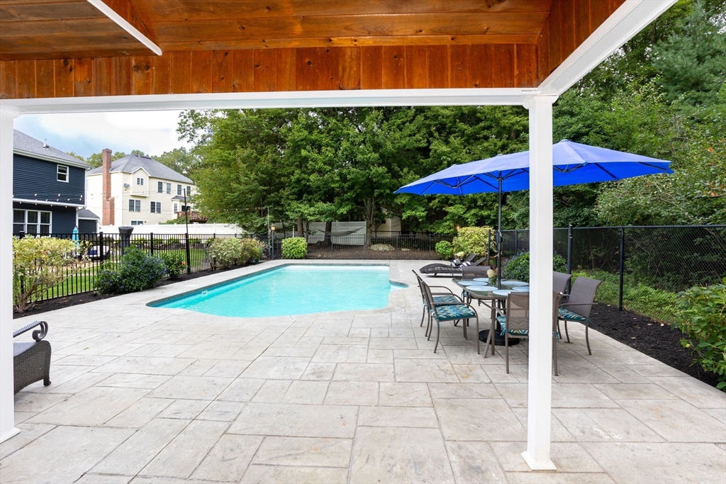 Welcome to this beautifully updated home, perfectly situated on a quiet cul-de-sac in one of Stoughton’s most sought-after neighborhoods. With its charming wraparound porch and thoughtful updates, this property blends modern finishes, flexible living options, and outdoor luxury.Inside, you’ll find a stunning renovated kitchen with sleek cabinetry, quartz countertops, stainless steel appliances, and a wine fridge—ideal for everyday living and entertaining. The open-concept design flows seamlessly into the dining and living areas, filling the home with natural light and warmth.Highlights include a first-floor office, a spacious bonus room over the garage, well water, and a versatile in-law/multigenerational suite that’s perfect for extended family or guests. Step outside to your own private retreat: a heated saltwater inground pool with cabana, and landscaped grounds designed for summer gatherings and relaxation.Conveniently located just minutes from schools and major highways!