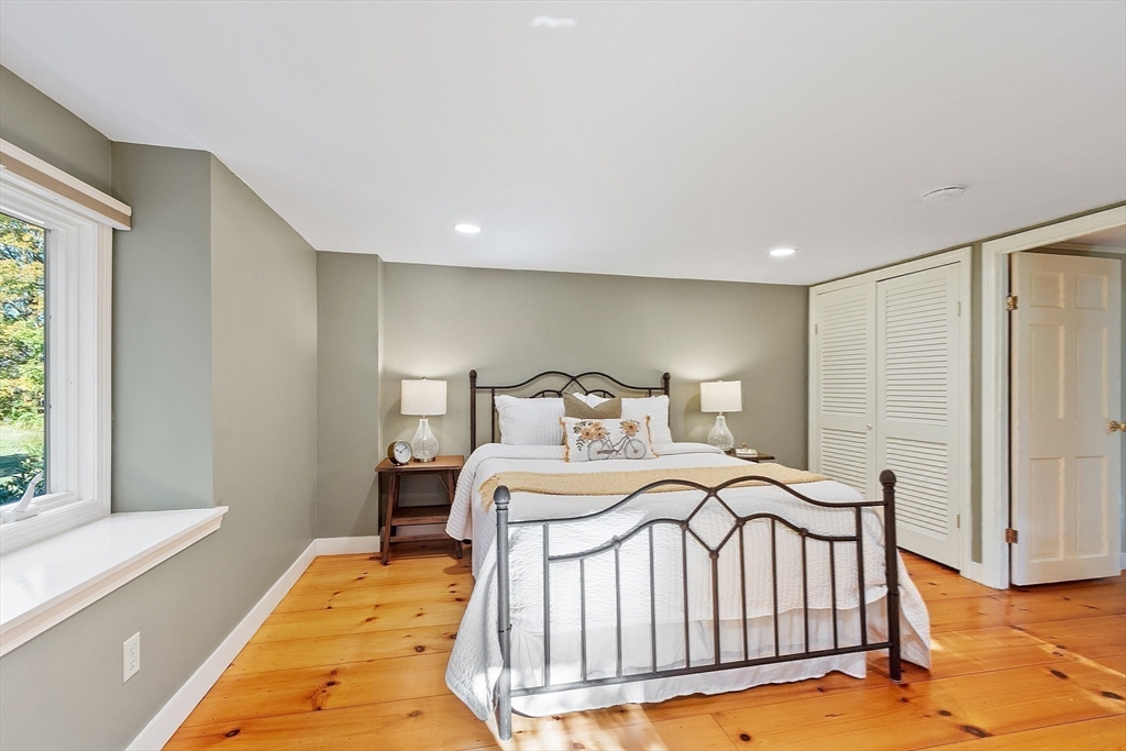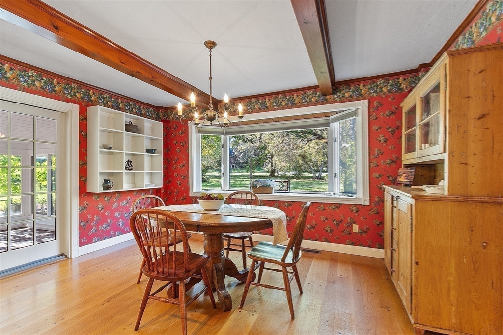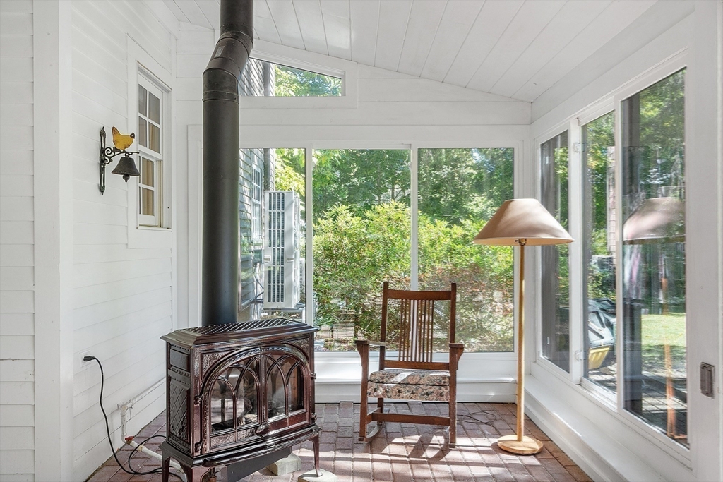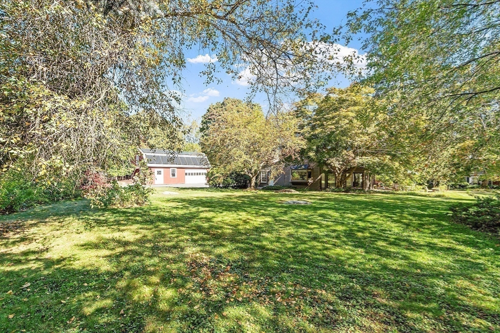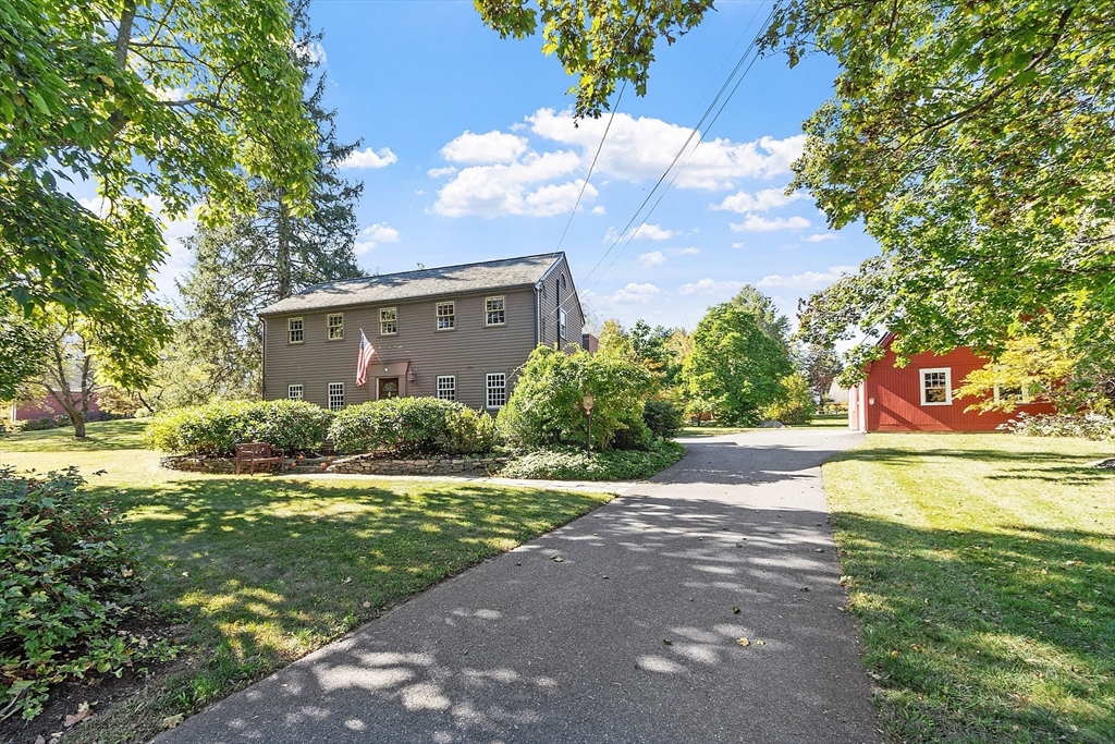 This is the one you've been waiting for! Come fall in love w/ this charming Antique home sited on a quiet country road just off the town center in desirable Harvard. The bucolic setting includes mature landscaping; peach & apple trees as well as raspberries. The house itself is warm & welcoming from the moment you step inside. Light & bright w/ gleaming wood floors.The first floor includes a mud room, living room, family room with rustic stone fireplace, home office w/ built-ins, full bath, dining room w/ views to the beautiful grounds & updated kitchen. The dining room has sliders that open onto the lovely 4 season porch w/ gas stove & a view of the large brick patio. The second floor consists of 4 bedrooms & a full bath w/ walk in tub. The oversized garage/barn provides plenty of room for storage, cars (an electric car charger) bikes & canoes, etc. Located close to the schools, the library, churches, Bare Hill Pond & the General store. Conveniently located near commuting routes.
