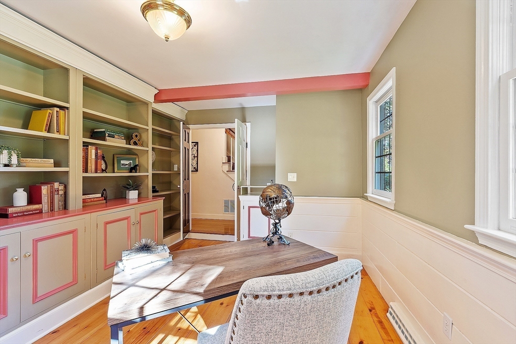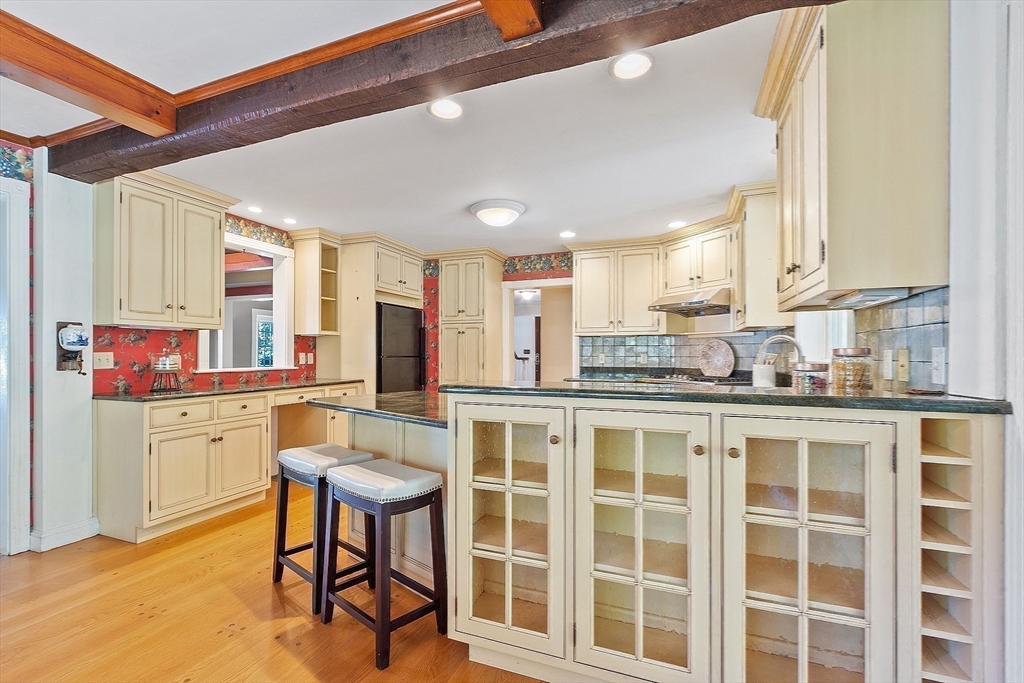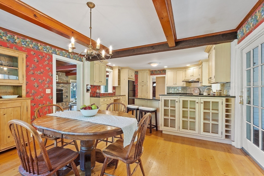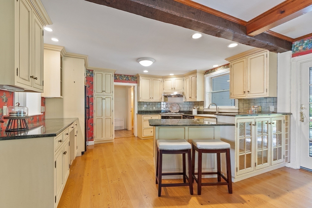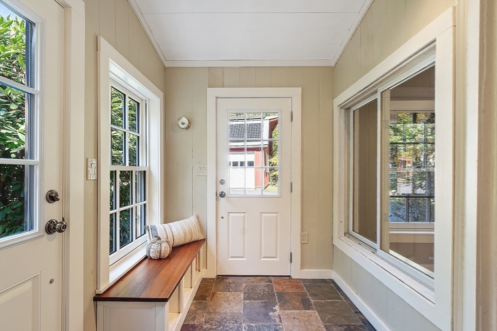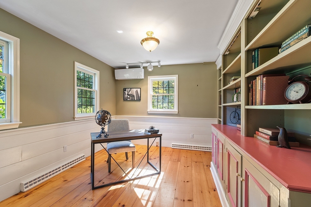 This is the one you've been waiting for! Come fall in love w/ this charming Antique home sited on a quiet country road just off the town center in desirable Harvard. The bucolic setting includes mature landscaping; peach & apple trees as well as raspberries. The house itself is warm & welcoming from the moment you step inside. Light & bright w/ gleaming wood floors.The first floor includes a mud room, living room, family room with rustic stone fireplace, home office w/ built-ins, full bath, dining room w/ views to the beautiful grounds & updated kitchen. The dining room has sliders that open onto the lovely 4 season porch w/ gas stove & a view of the large brick patio. The second floor consists of 4 bedrooms & a full bath w/ walk in tub. The oversized garage/barn provides plenty of room for storage, cars (an electric car charger) bikes & canoes, etc. Located close to the schools, the library, churches, Bare Hill Pond & the General store. Conveniently located near commuting routes.