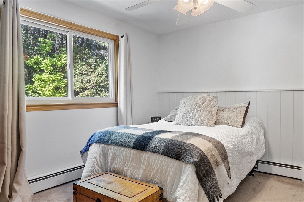 Welcome to this versatile 3–4 bedroom home offering a flexible floor plan with a possible first-floor bedroom. The main level boasts gleaming hardwood floors and fresh paint throughout, along with an updated kitchen featuring granite countertops and stainless-steel appliances. Enjoy year-round comfort in the heated 4-season porch, which opens to a spacious composite deck overlooking a private backyard that abuts the woods. Additional highlights include a roof (2014), exterior paint (2018), central air conditioning, backup generator, and oversized parking. Nestled on a private 2.4-acre lot with convenient access to Lake Shirley, major routes, and scenic nature trails—this home blends comfort, function, and location.