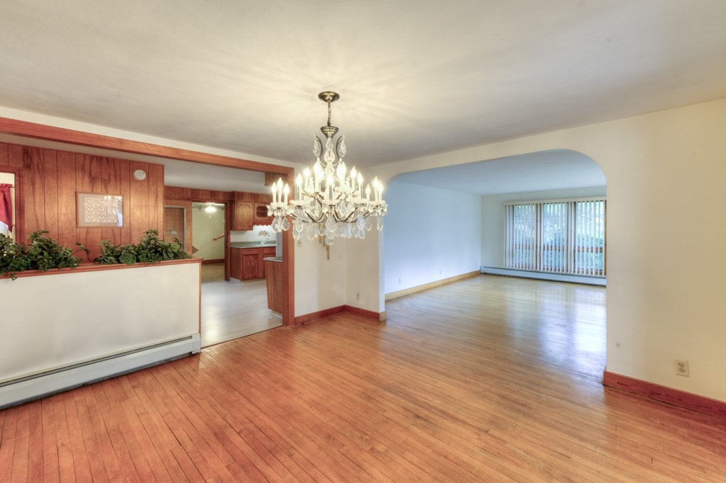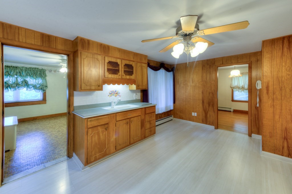 Welcome to this well-maintained ranch-style home, proudly owned by the same family for over 60 years. This charming residence features 3 spacious bedrooms and 2 full bathrooms, offering comfort and versatility for families of all sizes. Beautiful hardwood floors throughout all bedrooms, the living room, and the dining room; Bright and inviting eat-in kitchen, perfect for family meals and entertaining; Handicap accessible layout for added convenience; One-car garage for secure parking and extra storage; Large deck, ideal for outdoor gatherings and relaxation; The fully finished basement offers remarkable flexibility, featuring: Two finished rooms suitable for bedrooms, an office, or hobby space; Family room for casual living and entertainment; Second full bathroom for guests or extended family; Kitchenette area, providing the potential for an in-law or guest suite; With some TLC, you can make this space come to life! Lots of space to enjoy! Don't miss this one!
