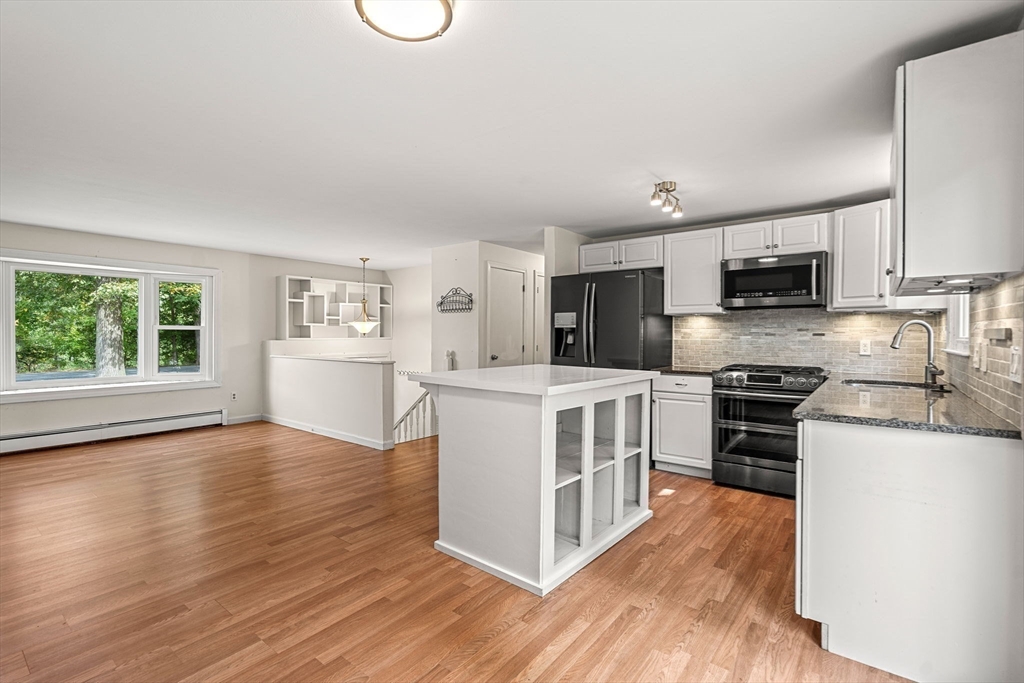 Don’t miss this move-in ready home with a huge yard and lots of updates! This 4 bedroom, 2 bath split-level abuts Foxhill Farm, offering the best of both town and country living - just 3 miles to downtown Amesbury, under 7 miles to Newburyport, and 22 miles to Portsmouth. Outdoor enthusiasts will love being near Woodsom Farm conservation land and Lake Gardner for year-round recreation. The main level features an open concept layout, bay window, and a modern kitchen with granite counters, stainless appliances, tile backsplash, and slider to a deck overlooking the fenced yard. Three bedrooms and a full bath complete the upper level. The finished lower level includes a spacious family room with recessed lighting, 4th bedroom or office, stylish new full bath, and laundry area. Recent updates include 14 new windows, a young roof, freshly painted interior, efficient gas heat, town water, and town sewer.