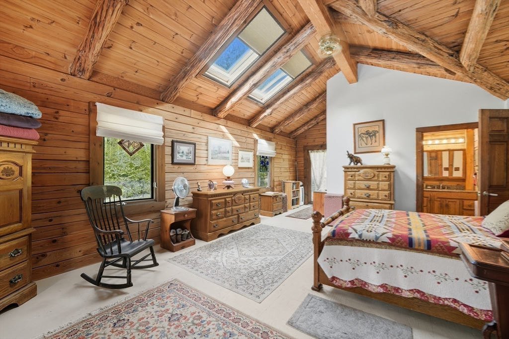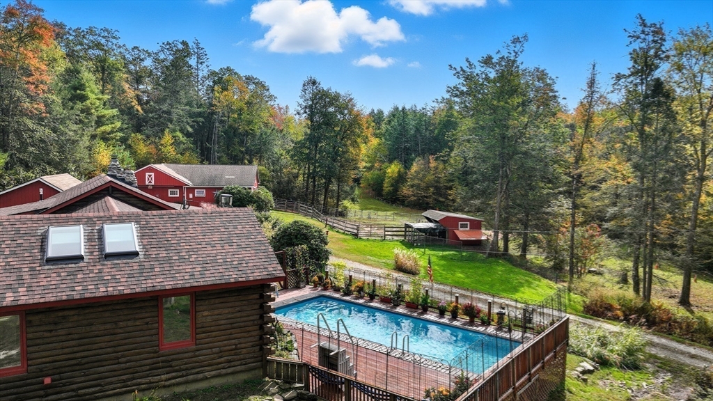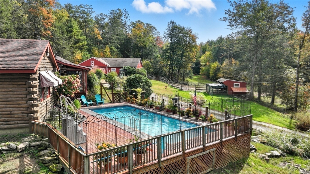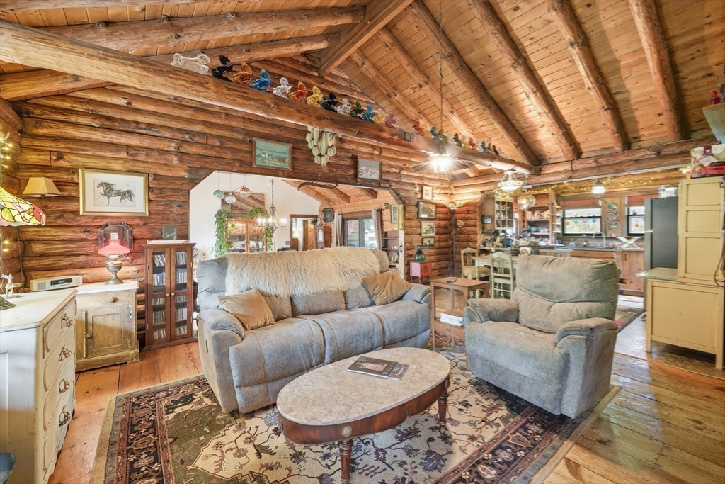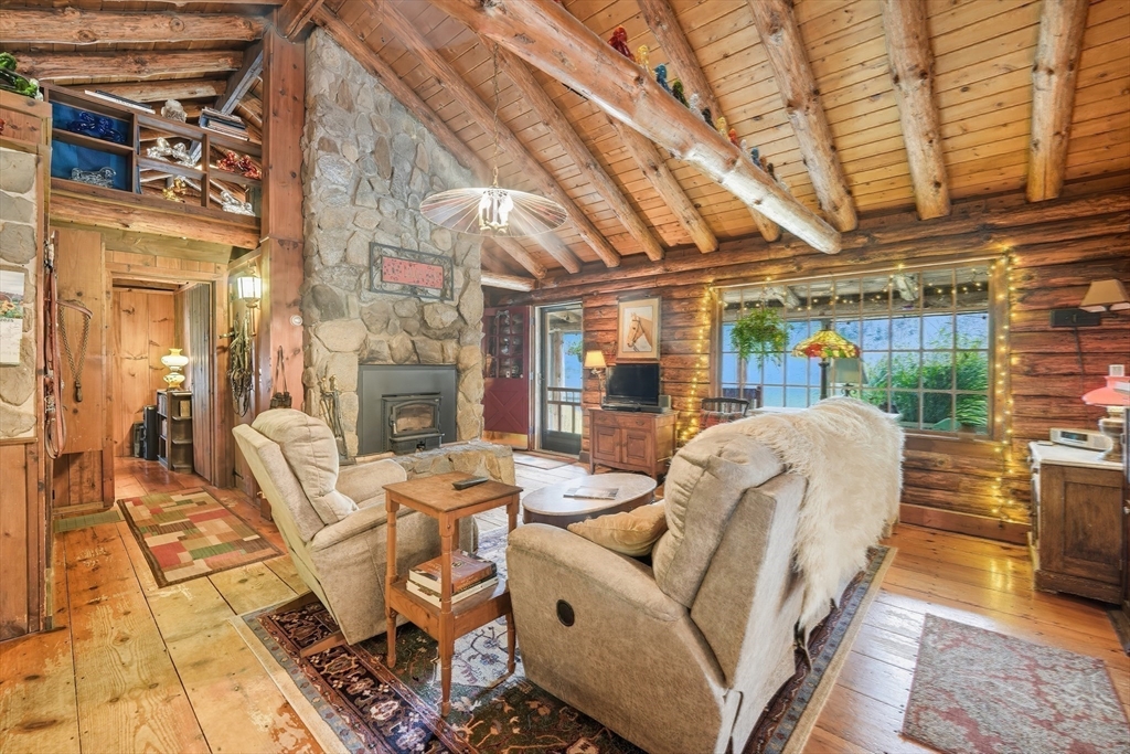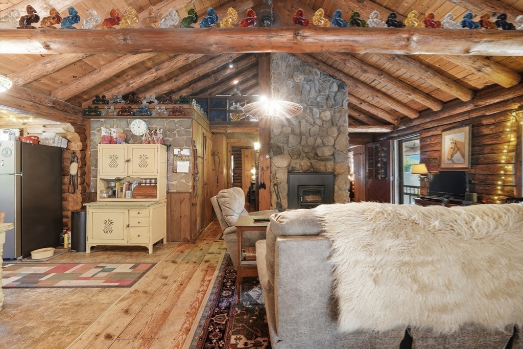 Escape to your own private sanctuary with this meticulously restored equestrian farm. The distinctive log cabin showcases vaulted ceilings and wide-plank pine flooring throughout, and a floor-to-ceiling stone fireplace at the heart of the home. The expansive primary suite features an indulgent jacuzzi tub, creating your personal retreat. With two more bedrooms and a second full bath, there’s plenty of room for guests. Horse enthusiasts will appreciate the facilities such as the 8-stall barn with hay loft and multiple pastures featuring attached runouts. There is also a 3-bay garage for ample workspace and storage. Outdoor entertaining is a breeze with a salt-water pool, screened porch, two decks, and stone patio. The multi-use farm also includes a full-property generator ensuring uninterrupted comfort. Nestled among mature woods, this remarkable estate offers the perfect blend of country living and modern amenities, all just a trail ride from Huntington State Forest's natural beauty.