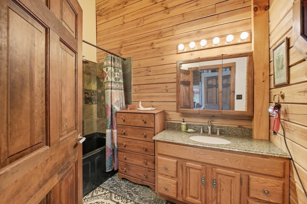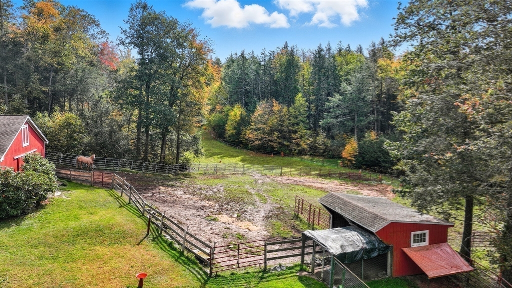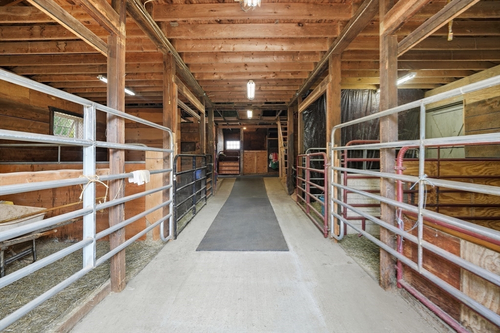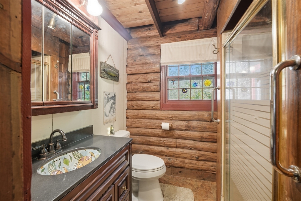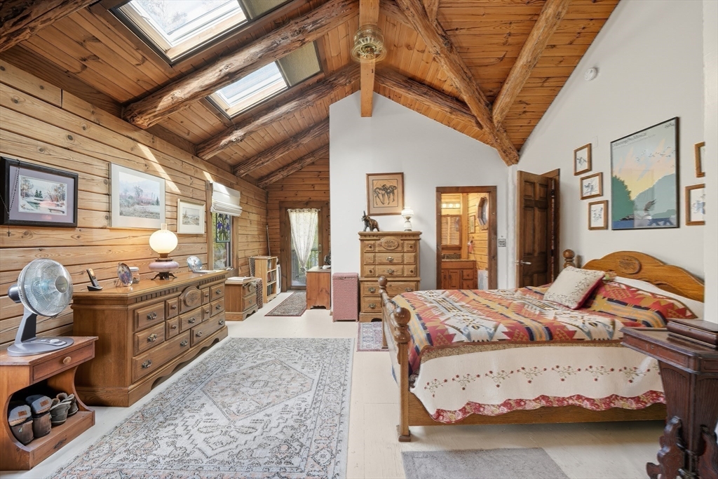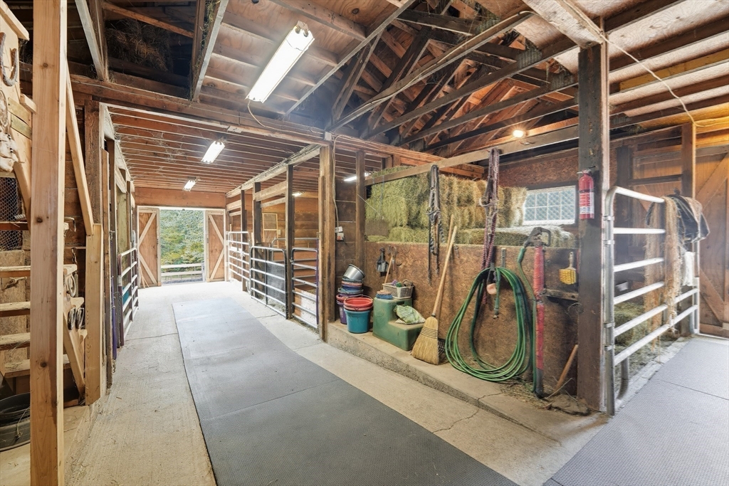 Escape to your own private sanctuary with this meticulously restored equestrian farm. The distinctive log cabin showcases vaulted ceilings and wide-plank pine flooring throughout, and a floor-to-ceiling stone fireplace at the heart of the home. The expansive primary suite features an indulgent jacuzzi tub, creating your personal retreat. With two more bedrooms and a second full bath, there’s plenty of room for guests. Horse enthusiasts will appreciate the facilities such as the 8-stall barn with hay loft and multiple pastures featuring attached runouts. There is also a 3-bay garage for ample workspace and storage. Outdoor entertaining is a breeze with a salt-water pool, screened porch, two decks, and stone patio. The multi-use farm also includes a full-property generator ensuring uninterrupted comfort. Nestled among mature woods, this remarkable estate offers the perfect blend of country living and modern amenities, all just a trail ride from Huntington State Forest's natural beauty.