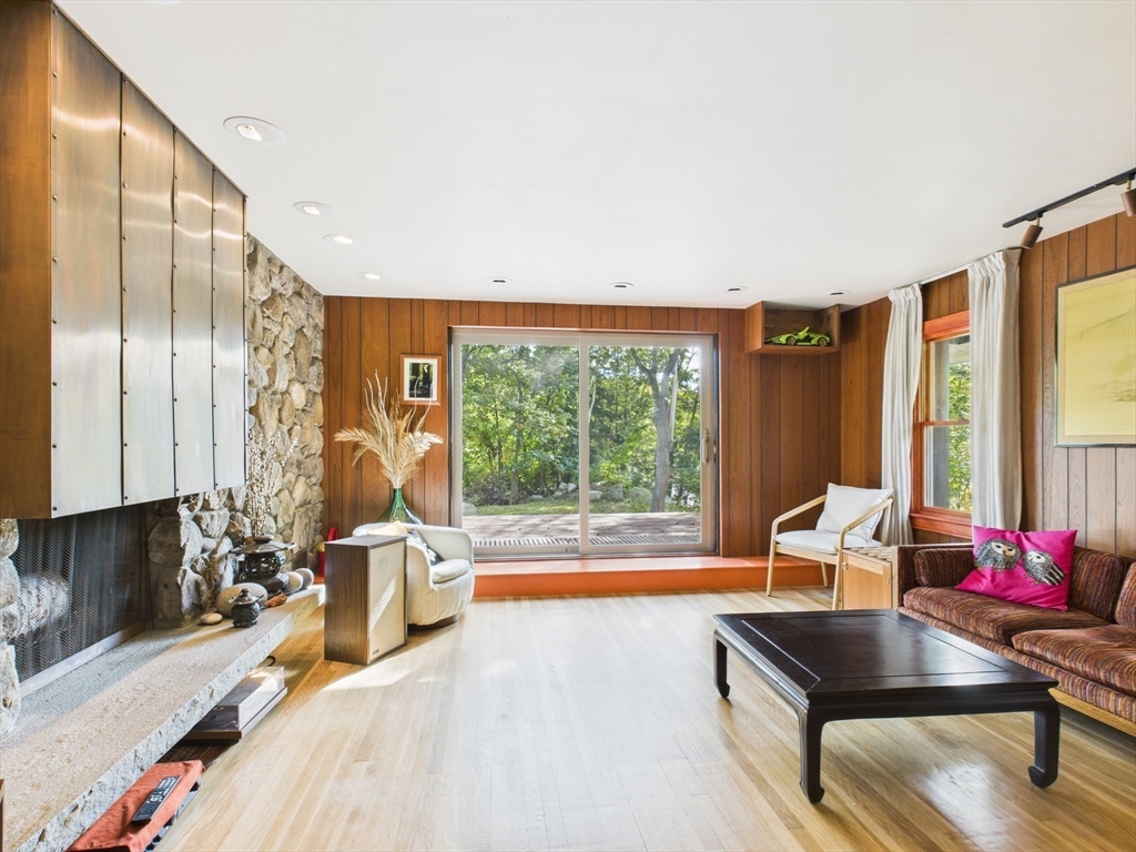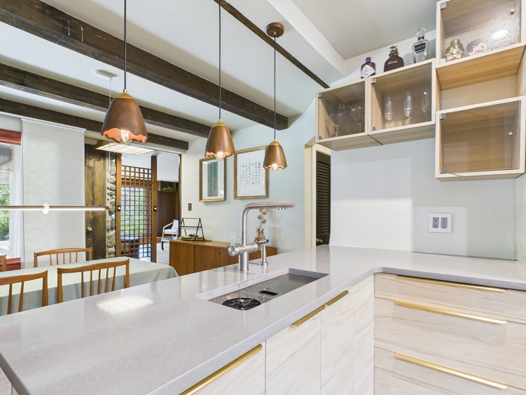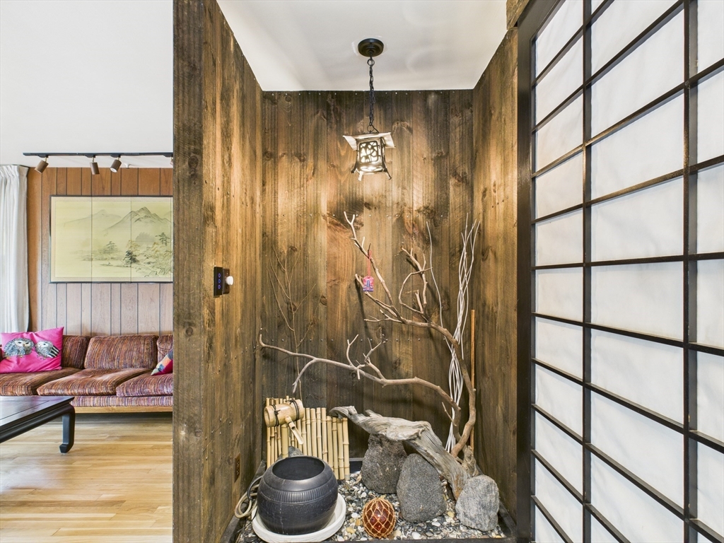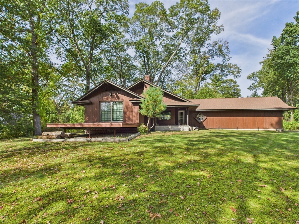 Don’t miss this custom-designed contemporary pagoda-style ranch, featuring oriental and nature elements for a zen oasis in the city! Recent updates include new gas stovetop and heat pump, central air for heating/cooling, tankless hot water heater and upgraded electrical. Enjoy single-level living with three bedrooms, two full bathrooms, and an open dining/kitchen area with hardwood floors throughout. The gourmet kitchen features custom built cabinets and top-of-the-line stainless steel appliances.The spacious living room showcases a stunning fieldstone fireplace and a full glass sliding door that leads to a private deck.The basement is ready to be finished, with ductwork and electrical already installed.Just a 15-minute walk to Chelmsford town center, with its restaurants, shops, and community amenities—and only a short drive to Route 495 and Route 3. Enjoy outdoor activities such as biking on the Bruce Freeman Rail Trail or hiking at the Warren-Pohl Conservation Reservation!