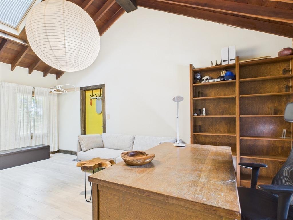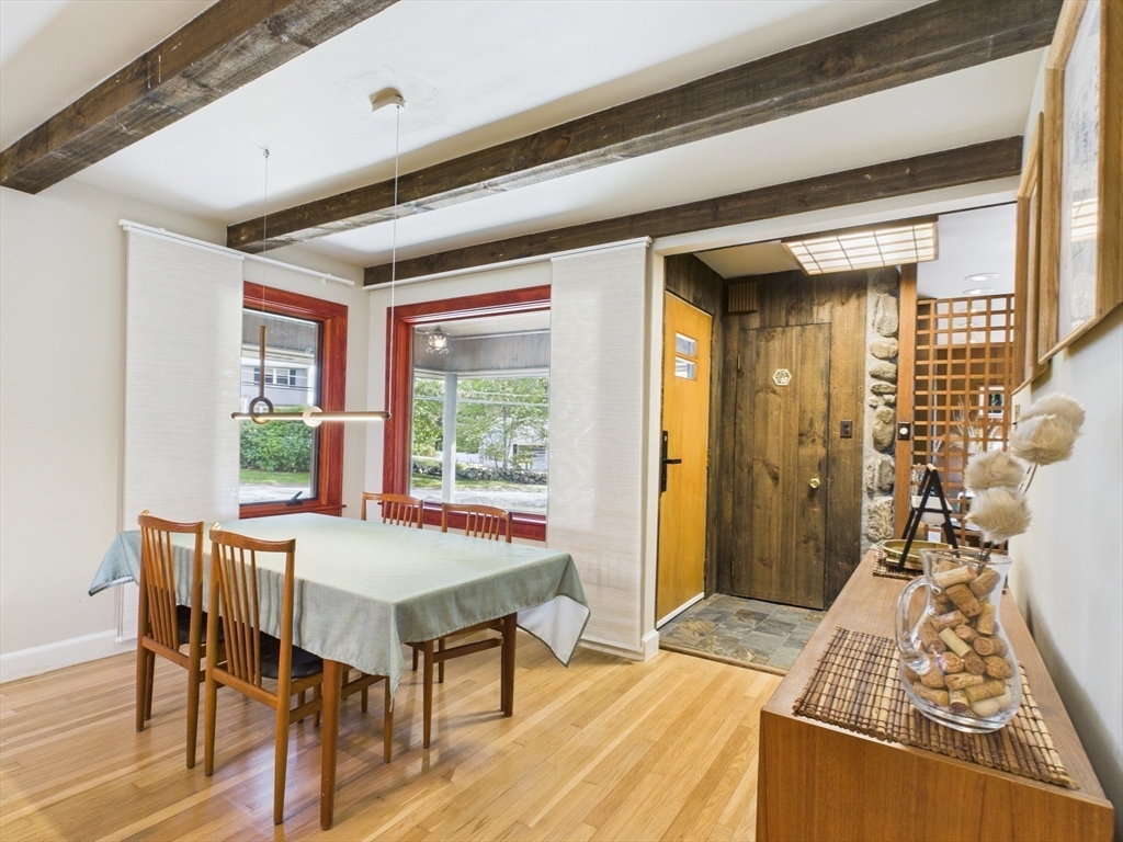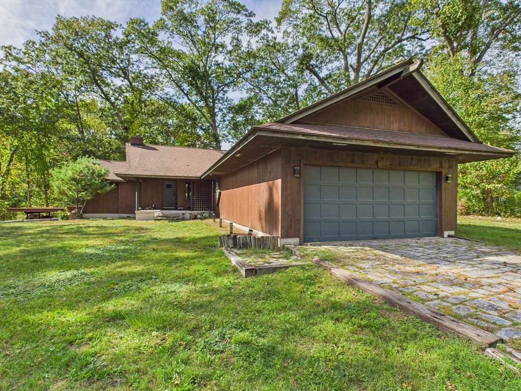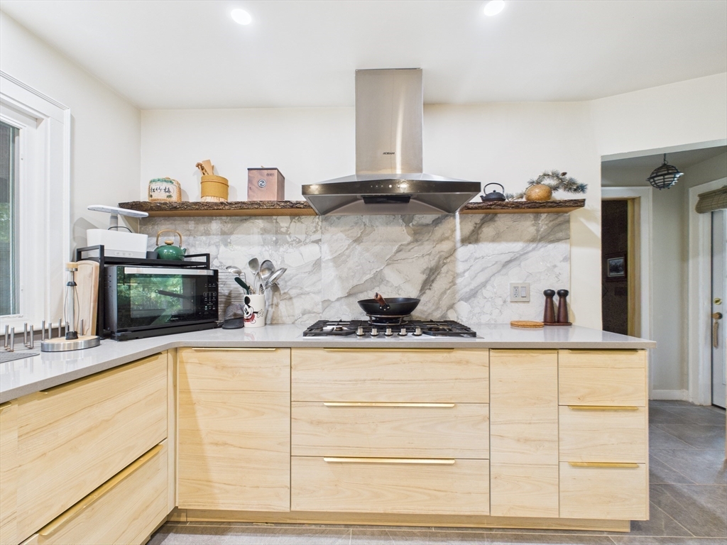 Don’t miss this custom-designed contemporary pagoda-style ranch, featuring oriental and nature elements for a zen oasis in the city! Recent updates include new gas stovetop and heat pump, central air for heating/cooling, tankless hot water heater and upgraded electrical. Enjoy single-level living with three bedrooms, two full bathrooms, and an open dining/kitchen area with hardwood floors throughout. The gourmet kitchen features custom built cabinets and top-of-the-line stainless steel appliances.The spacious living room showcases a stunning fieldstone fireplace and a full glass sliding door that leads to a private deck.The basement is ready to be finished, with ductwork and electrical already installed.Just a 15-minute walk to Chelmsford town center, with its restaurants, shops, and community amenities—and only a short drive to Route 495 and Route 3. Enjoy outdoor activities such as biking on the Bruce Freeman Rail Trail or hiking at the Warren-Pohl Conservation Reservation!