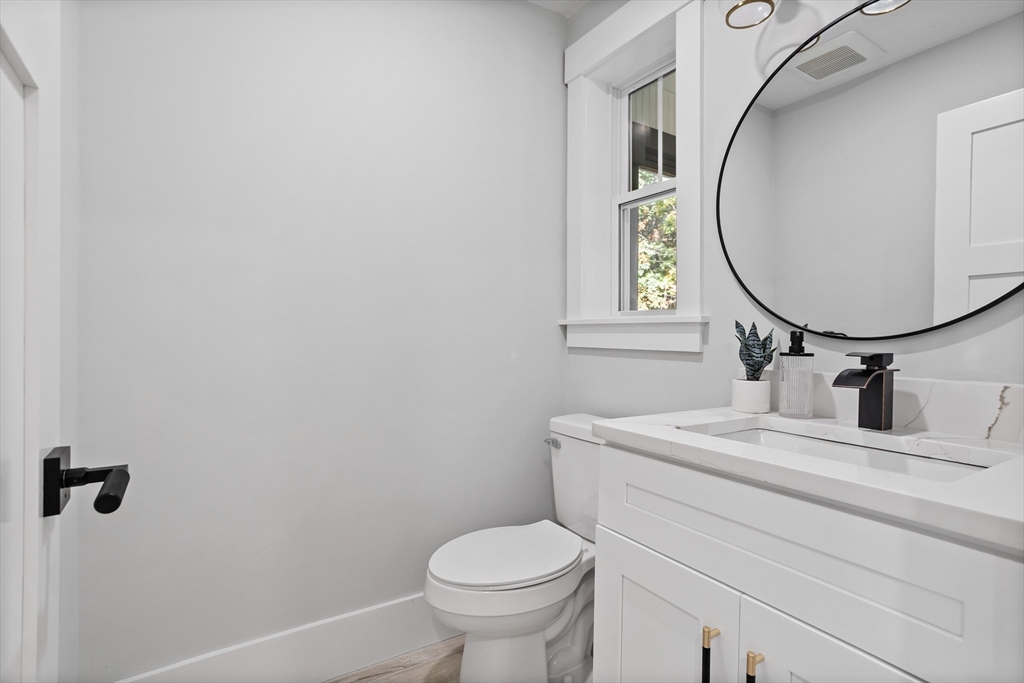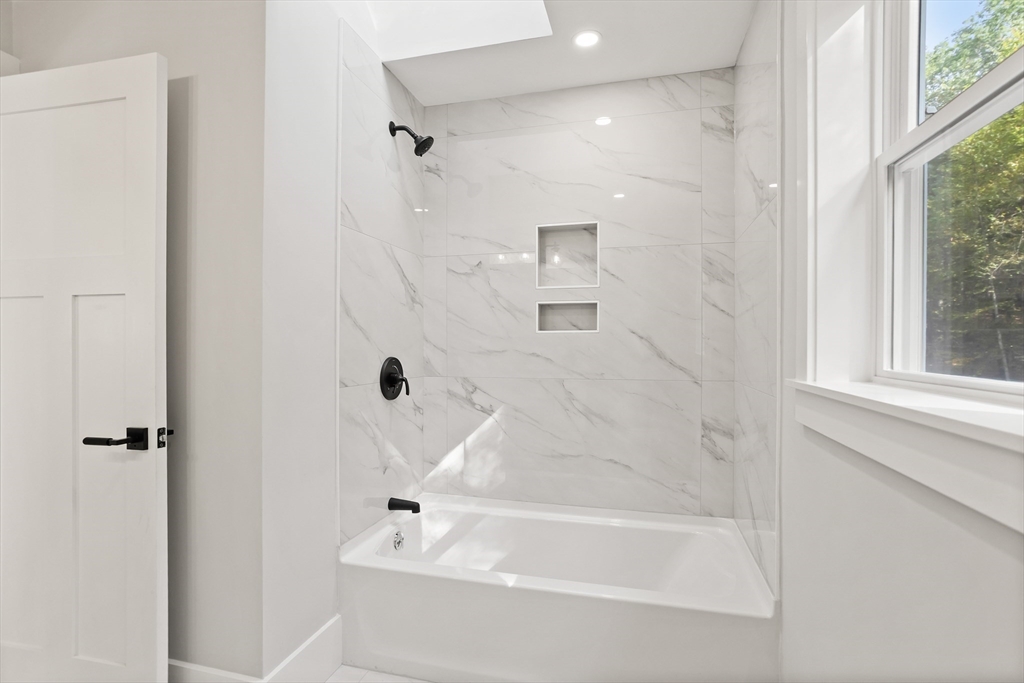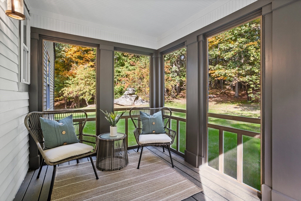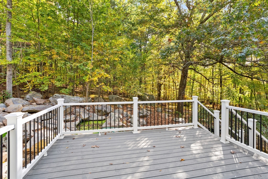 A natural stone approach leads to this exquisitely remodeled Cape privately set on 2.7 serene acres abutting protected land. The stunning white center island kitchen w/ quartz counters, breakfast bar, gas range & sun-filled dining area flows into a spacious dining room & beautifully appointed living room—an open-concept design perfect for entertaining. Unwind in the dreamy primary suite showcasing a spa-worthy bath w/ luxurious tiled shower & double quartz vanity. Two additional bedrooms & gorgeous full bath complete the 2nd floor. The enviable finished walk-out lower level boasts a bath with tile shower, bonus space & a sprawling family room with twin sliders filling the space with natural light. Relax on the screen porch or composite deck overlooking tranquil woodland views. Striking wide plank floors, a convenient mudroom keeping busy lives organized & an oversized 3-car garage add style & functionality. A rare blend of New England charm & modern luxury in a picture-perfect setting.