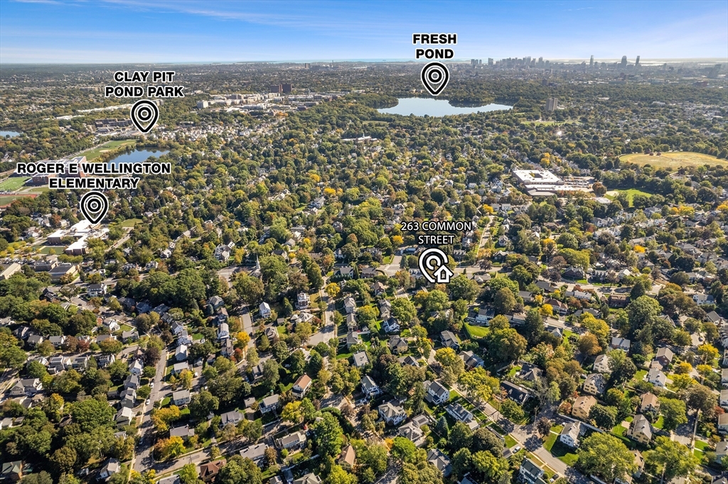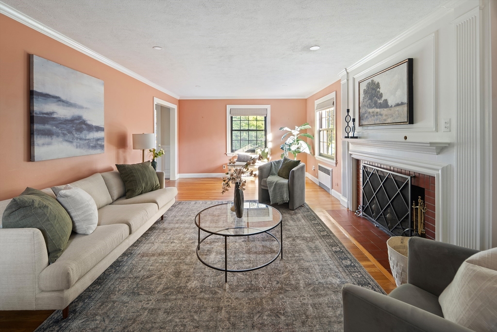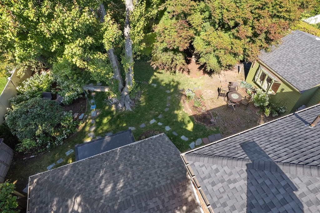 Sited on the crest of a knoll on quintessential Common Street, a 1/3 acre between Belmont Center & Cushing Sq, this meandering 5-bed 3.5-bath Colonial blends timeless architecture with modernizations in a charming, fairytale setting. A gracious entry foyer welcomes us into a living room w/3 exposures, fireplace, custom built-ins; dining room w/original built-ins, central kitchen w/ exceptional storage, cozy library & powder room. The 2 main floor bedrooms/bathroom are multi-use spaces & may form a separate suite from the main house for inlaws/au pair. Upstairs is a primary suite w/WIC & renovated luxe bath, 2 corner bedrooms + gut-renovated bath. Updates include roof replacement, new windows across the main house, 7 mini-splits w/3 condensers & electric car charger. 1000-1400sf expansion potential in the attic & basement with finished stairs. Moments to top-rated schools, shops, restaurants & train, this home offers the best of New England living on one of its most picturesque streets.