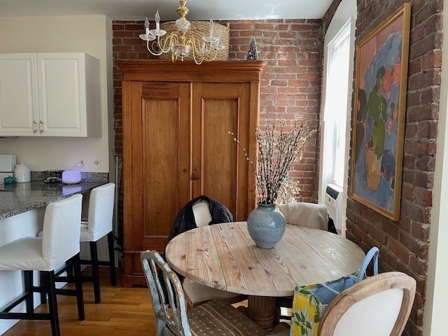 Brownstone duplex in a desirable Brookline location. Charming, sunfilled one bedroom on two levels features two ornamental fireplaces, exposed brick, open floor plan, modern, fully applianced kitchen with abundant cabinet and counter space. Spiral staircase to the first floor bedroom, 1.5 baths, hardwood floors, high ceilings, huge windows, and laundry in unit. Convenient to Cleveland Circle, Washington Square and Coolidge Corner shopping, restaurants and the T. Prime location!