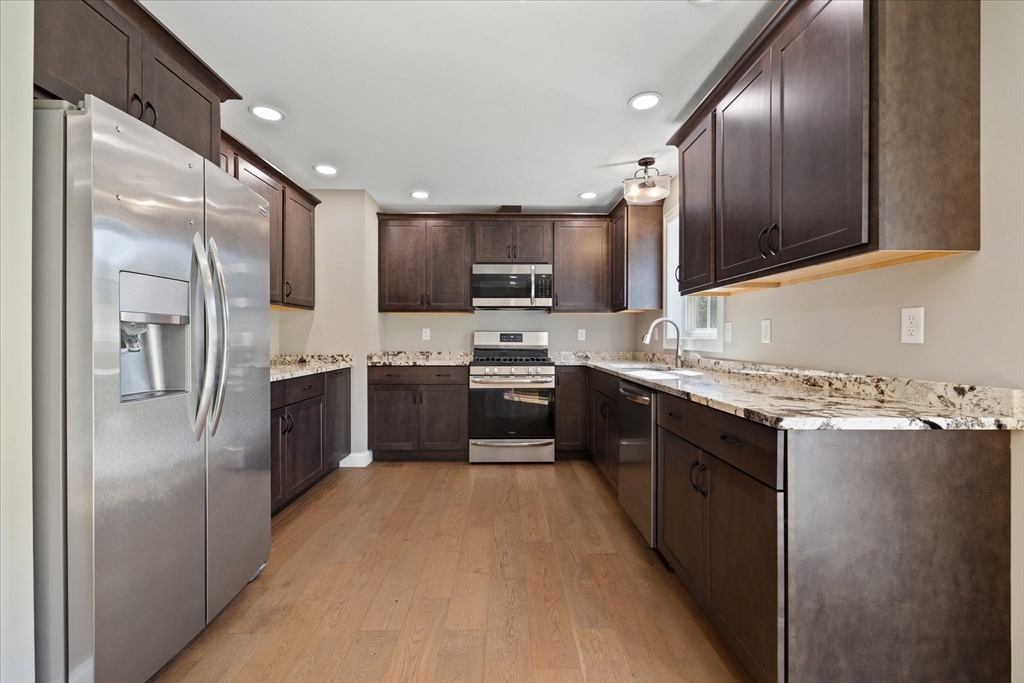 Four full bedrooms AND no condo fees? Yes please! This attached Colonial delivers on everything you’ve been searching for, offering over 1,700 sq. ft. of well-designed living space. The 1st floor boasts hardwood floors, a spacious living room perfect for gathering, plus a convenient half bath & laundry. The open kitchen/dining area shines with granite counters, stainless appliances & a slider leading out to your private patio & exclusive enjoyment of more than an acre of land. Upstairs, you’ll find 4 generously sized bedrooms, including a beautiful primary suite complete with its own bath & walk-in closet. One of the bedrooms features vaulted ceilings for extra character, and there’s an additional full bath to serve the 2nd level. An attached one-car garage, central air & a full basement ready for finishing round out the package. All of this is set in a prime commuter-friendly location with easy highway access - giving you space, privacy, and convenience all in one rare find!