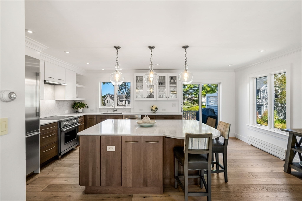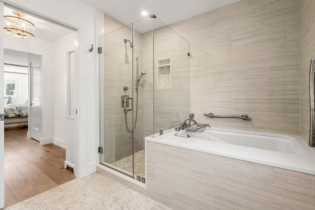 Welcome to this exquisite townhouse in Hawthorne Point, Rocky Neck—just steps from Niles Beach and offering stunning water views. Renovated in 2020, this light-filled home spans three thoughtfully designed levels. The first floor features a spacious foyer, access to the garage, ample storage, and a large private en suite bedroom with flexible use and direct access to a brick patio overlooking the water. The second level boasts a chef’s kitchen with high-end appliances, open-concept dining and living areas, a half bath, a front balcony, and a rear deck with breathtaking water views. On the third level, you’ll find a luxurious en suite bedroom with a walk-in closet, in-unit laundry, and a spa-like bathroom complete with a soaking tub. This residence perfectly blends natural beauty, privacy, and an elevated coastal lifestyle.