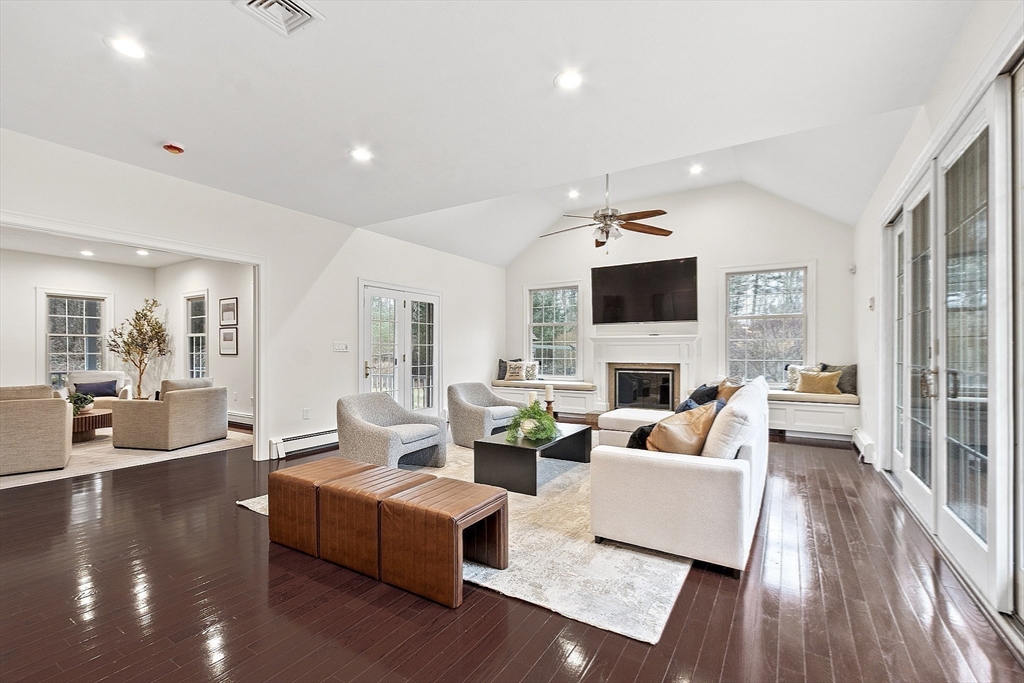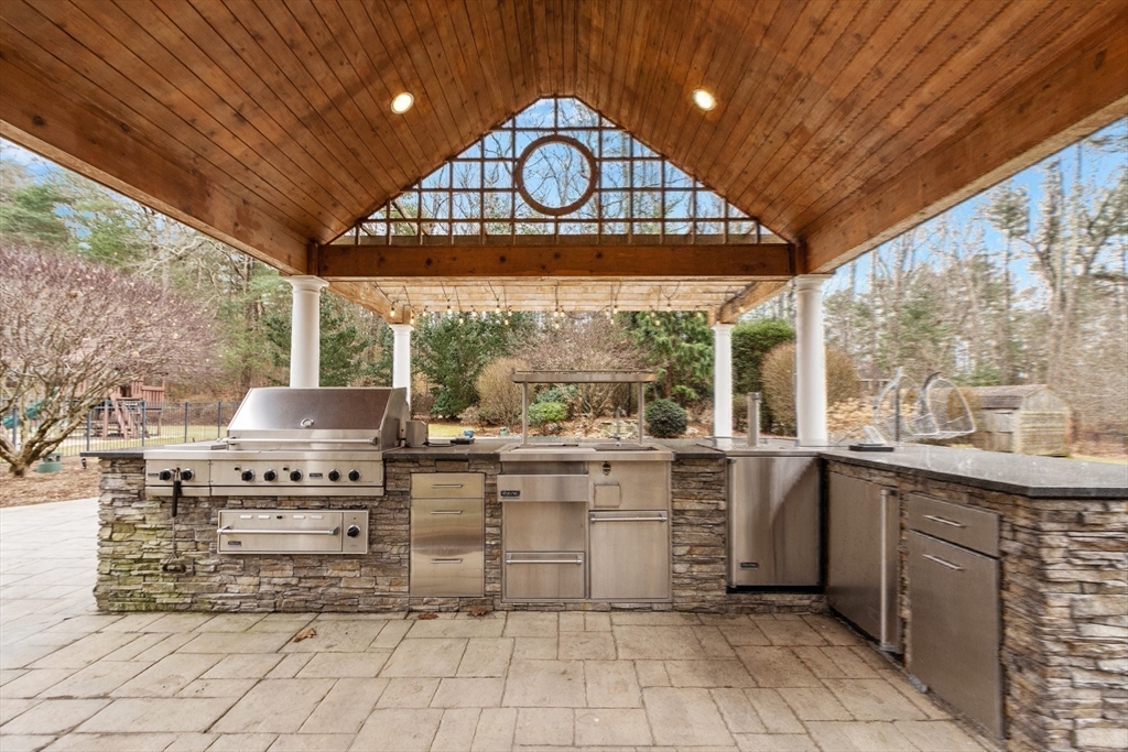 Experience Unparalleled Living at this one-of-a-kind storied Estate, previously owned by a three-time NE Patriots Super Bowl Champion. Tucked away on a secluded 7.64 acres of mature landscaping, with private trails out to beautiful Beaumont Pond, this Private Oasis encompasses a Stunning Main Residence, where Luxury has been redefined with top- of-the-line renovations including a State-of-the-Art Chef's Kitchen, a new Open Floor Plan, and all new Bathrooms including a Spa-Like Primary Bathroom crafted to the highest standards. Add a Home Gym to the finished basement, complete with Full Bath and Sauna. Spend your Summers by the Heated Pool w/Waterfall and fully-equipped Outdoor Kitchen, or head out to the freshwater pond for fishing, kayaking, and spectacular sunsets. The Carriage House/ADU within the Property boasts a 4-car garage with a Full Studio above, perfect for Guests, Home Office, Au-Pair Suite. Luxury, Legacy, and Lifestyle....one of Foxboro's Most Prestigious Homes!