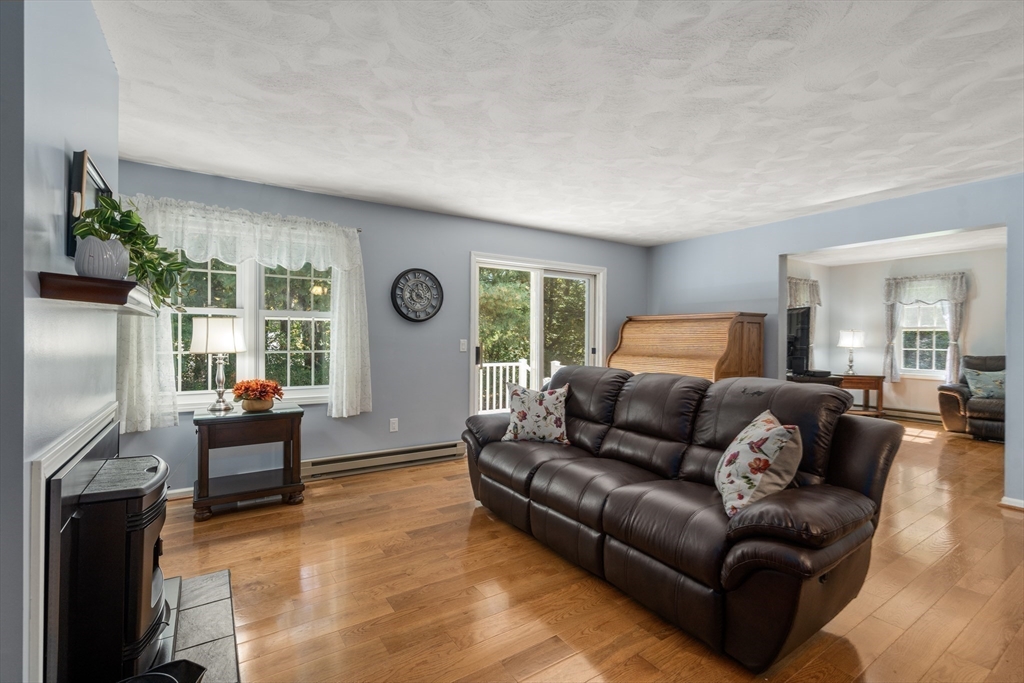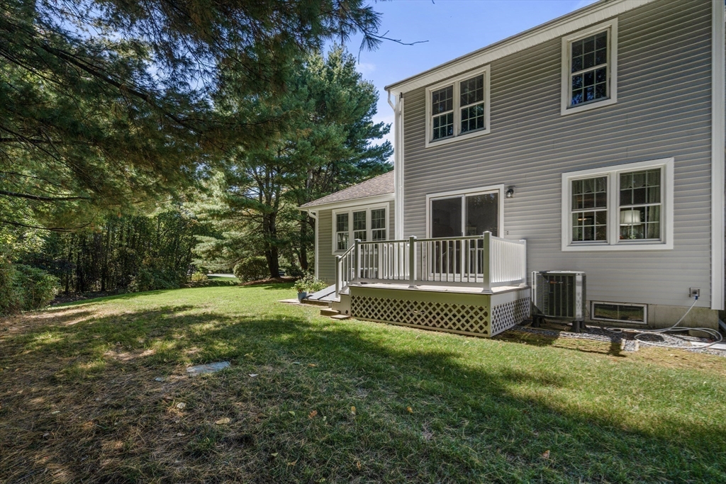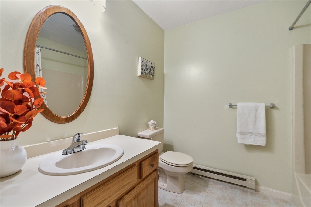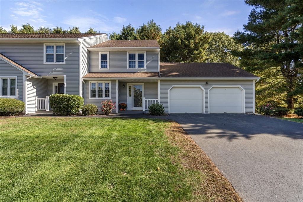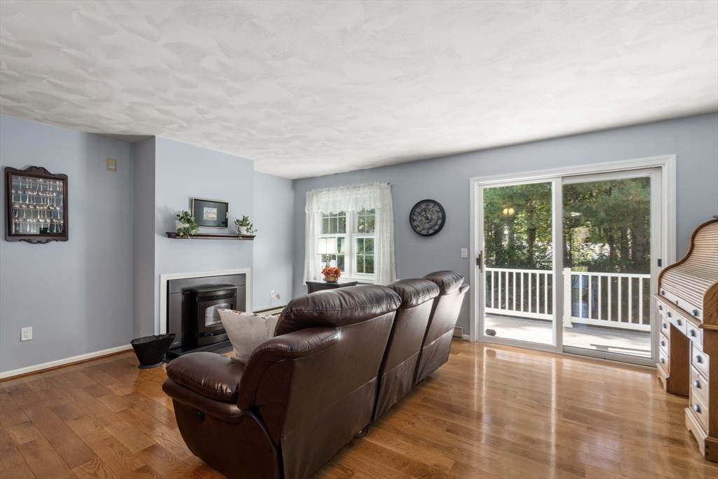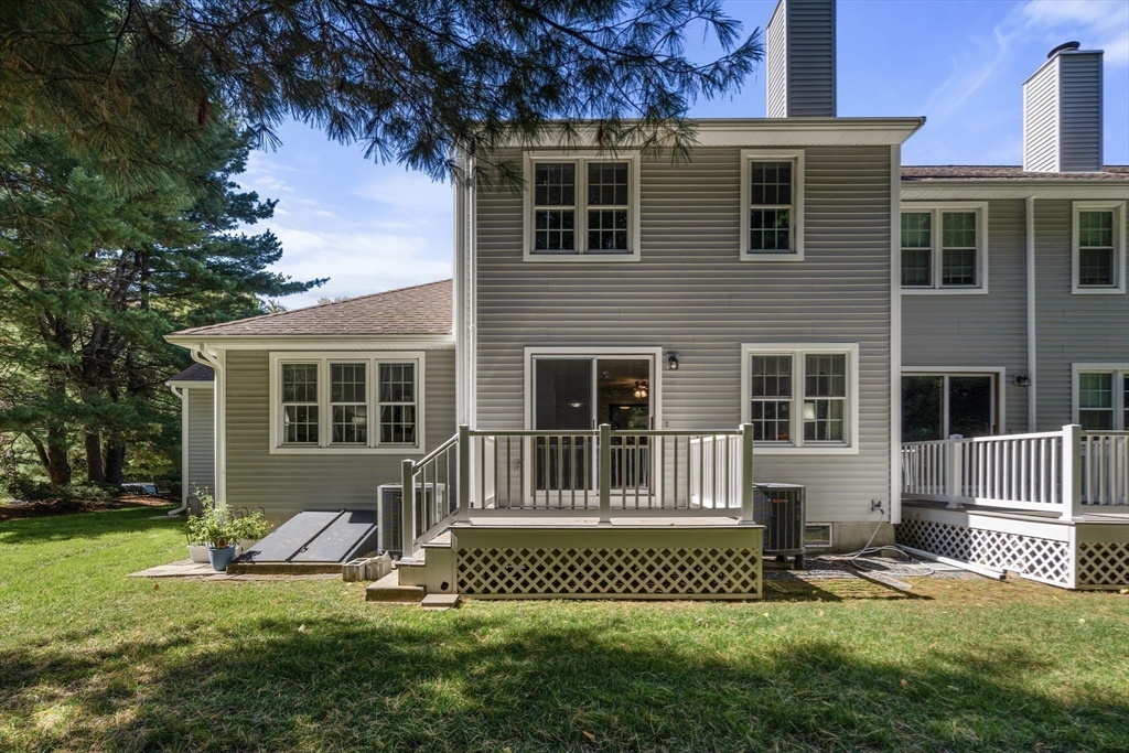 Spacious and sun-drenched, this Harvard-style end-unit townhouse boasts the largest floor plan in one of the area's most desirable communities. The eat-in kitchen flows into a bright dining area and large living room with a cozy pellet stove and access to a composite deck and private backyard—perfect for relaxing or entertaining. A versatile first-floor room is ideal for a home office, den, or guest bedroom. Upstairs features two oversized bedrooms with double closets, including a primary suite with private bath, plus a second full bath and convenient second-floor laundry. The partially finished basement offers additional living space with cabinetry—ideal for a second kitchen setup, hobby area, or in-law potential-and additional laundry hook-up. Includes a one-car attached garage, new hot water heater (2024), two heat pumps installed 2018, vinyl siding (2019), and 40-year architectural roof (2005). Move-in ready with space, flexibility, and room to make it your own.