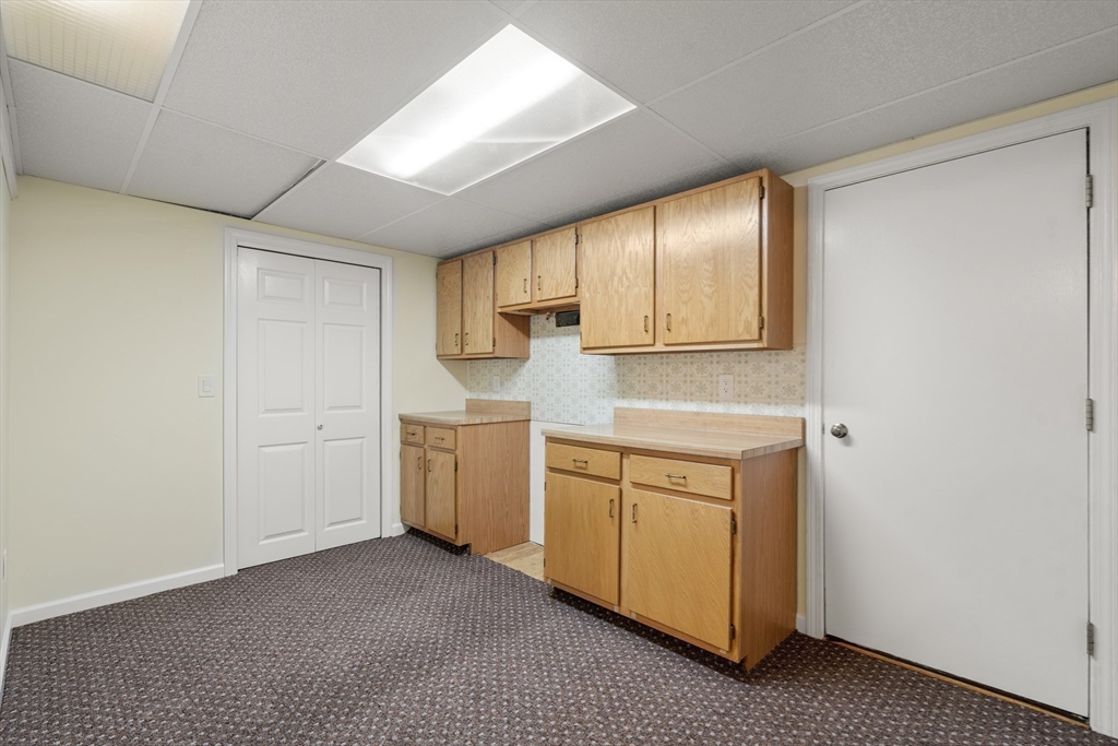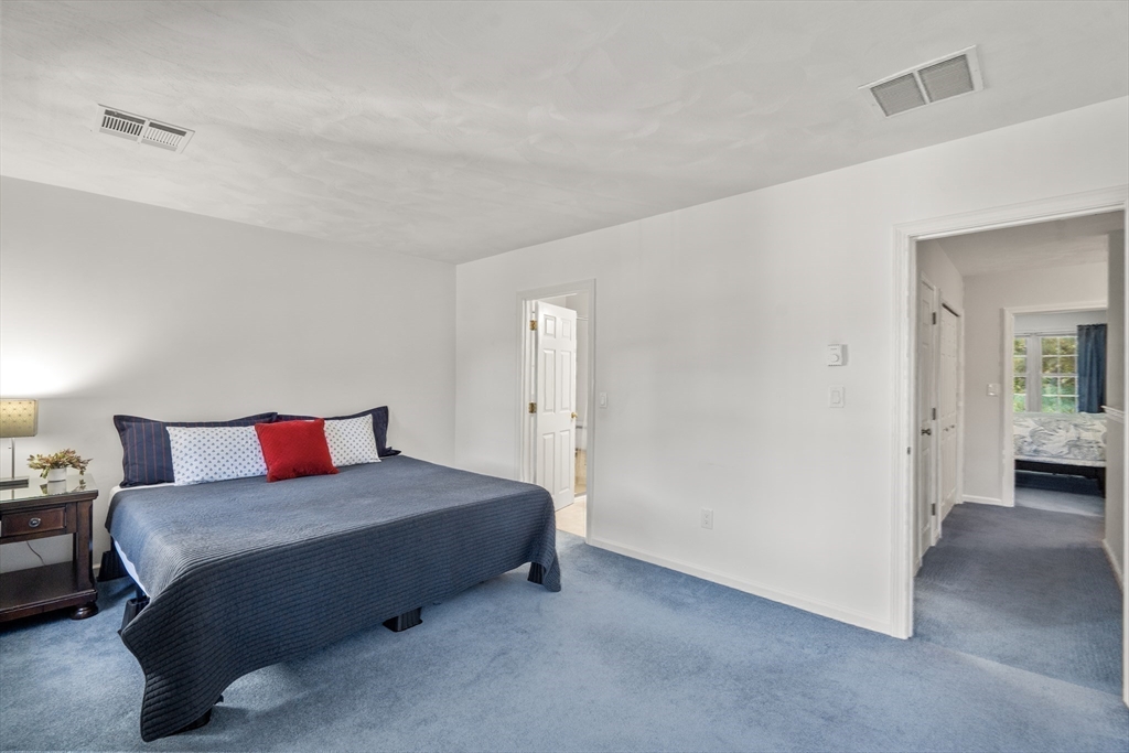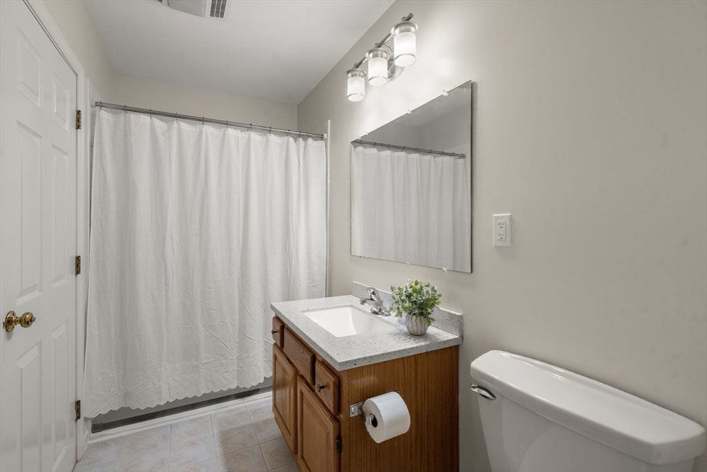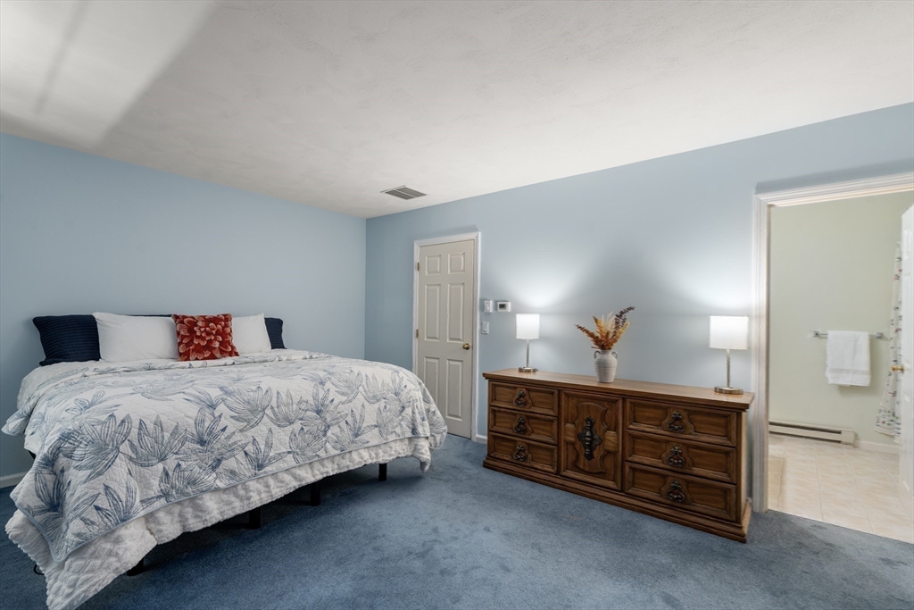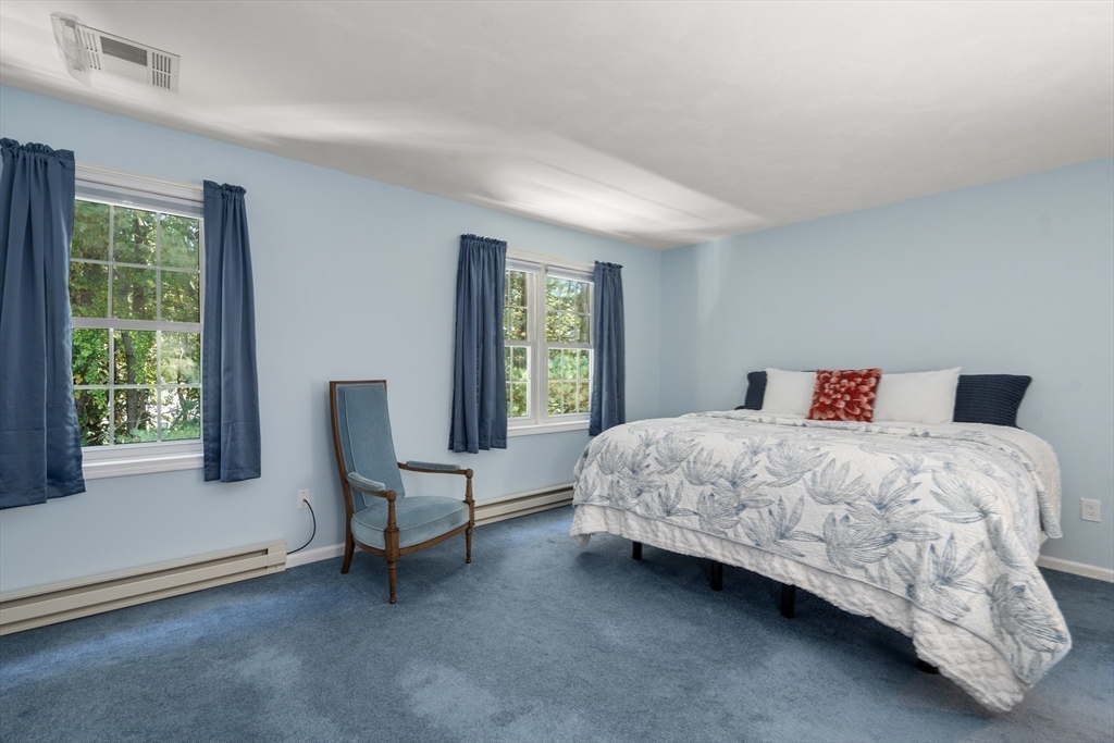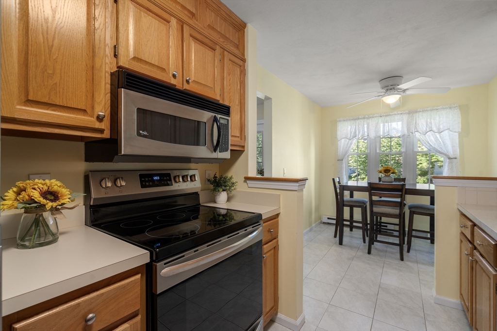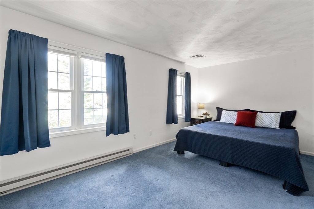 Spacious and sun-drenched, this Harvard-style end-unit townhouse boasts the largest floor plan in one of the area's most desirable communities. The eat-in kitchen flows into a bright dining area and large living room with a cozy pellet stove and access to a composite deck and private backyard—perfect for relaxing or entertaining. A versatile first-floor room is ideal for a home office, den, or guest bedroom. Upstairs features two oversized bedrooms with double closets, including a primary suite with private bath, plus a second full bath and convenient second-floor laundry. The partially finished basement offers additional living space with cabinetry—ideal for a second kitchen setup, hobby area, or in-law potential-and additional laundry hook-up. Includes a one-car attached garage, new hot water heater (2024), two heat pumps installed 2018, vinyl siding (2019), and 40-year architectural roof (2005). Move-in ready with space, flexibility, and room to make it your own.