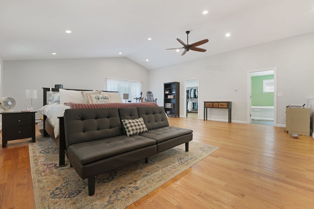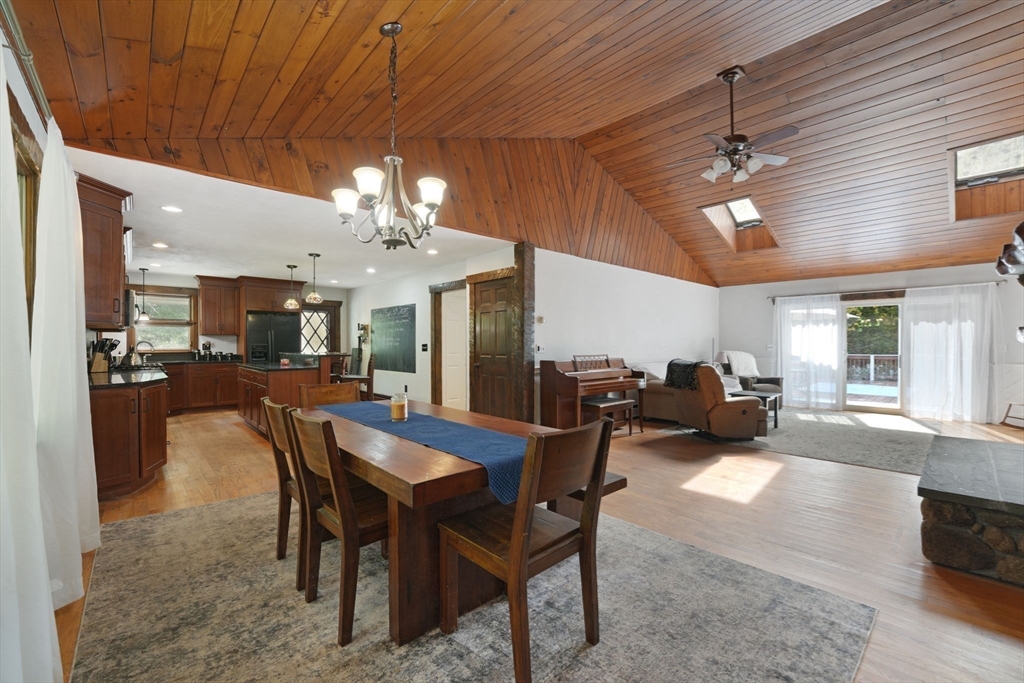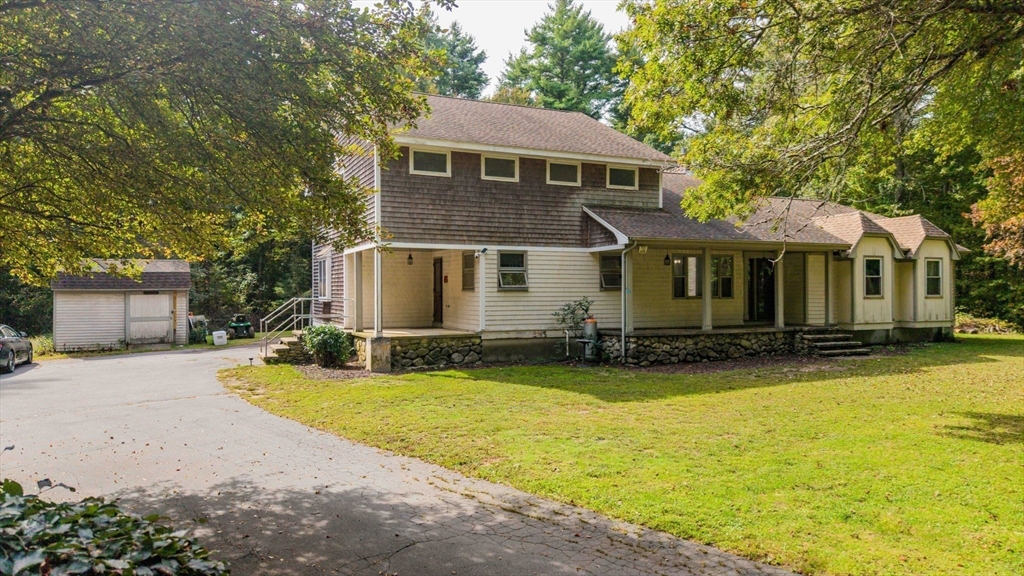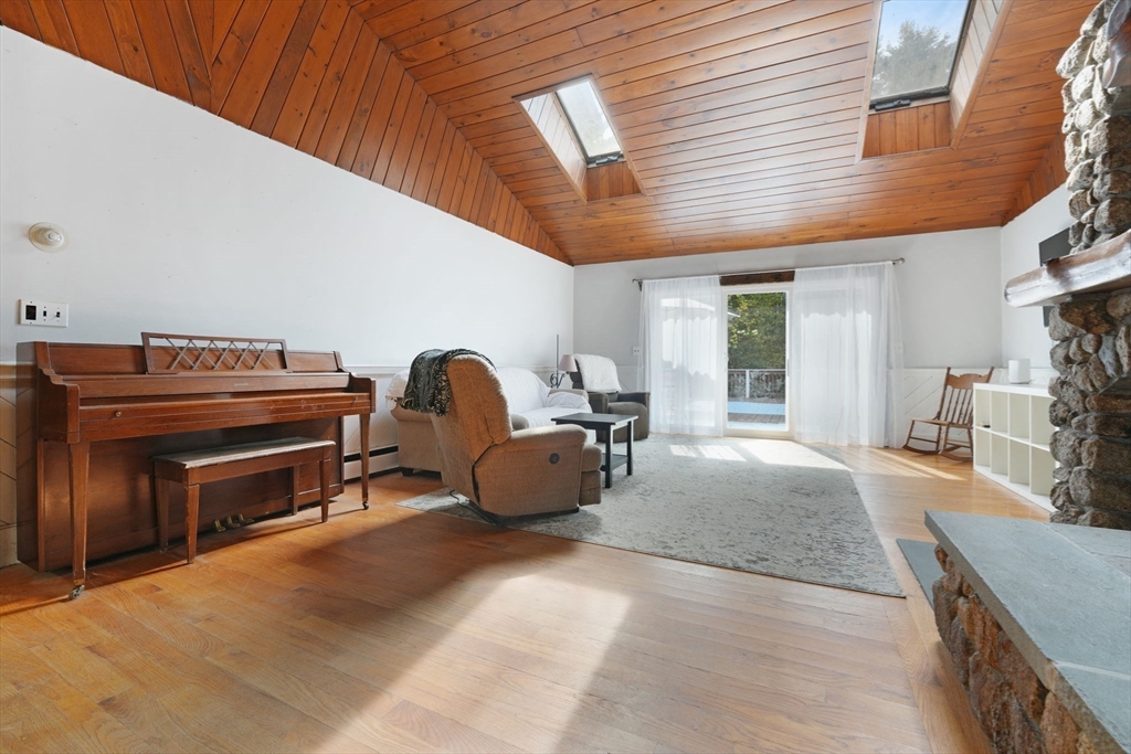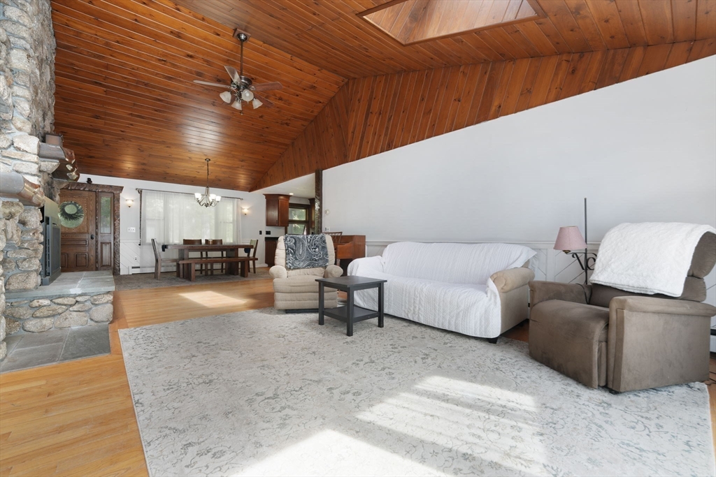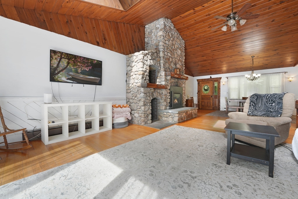 Sprawling and beautifully updated,196 High Street in picturesque Rochester, MA offers 5 bedrooms, 3 baths, and 2 private ensuite retreats on an impressive 5.6-acre lot. The main level features an open floor plan with an updated kitchen boasting granite countertops, custom cabinetry, and large island. A dramatic stone fireplace with propane insert and soaring cathedral wood ceilings anchor the living space. The first-floor primary suite includes a full bath. Also, there are 3 additional bedrooms providing flexibility. Upstairs, discover a second luxurious ensuite with vaulted ceilings, recessed lighting, a walk-in closet, and a spa-like bathroom with a Russian soaker tub and double vanity. Outside, enjoy the expansive grounds ideal for gardens, outdoor recreation, or hobby farming in Rochester’s Right to Farm community. Also, you have beach rights to Silver Shell Beach in Marion, easy access to Wareham Crossing, Rte. 495, and Rte.195.All this and seller is putting in a new septic system