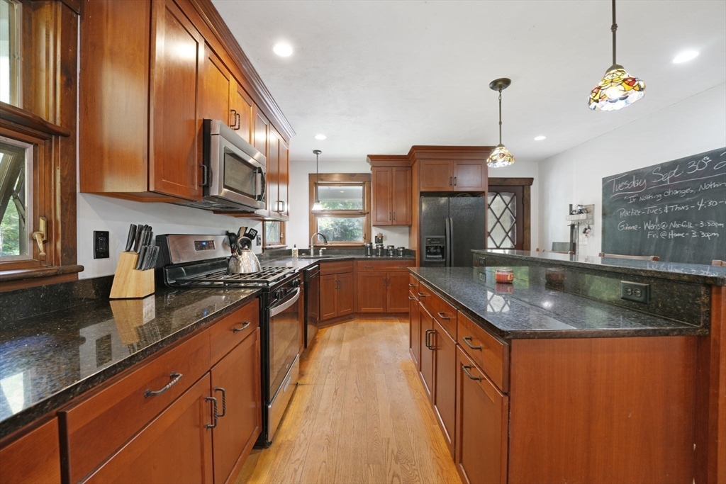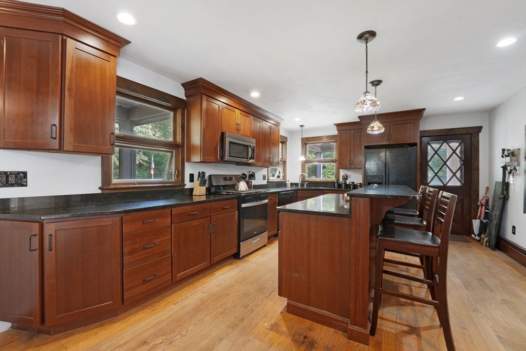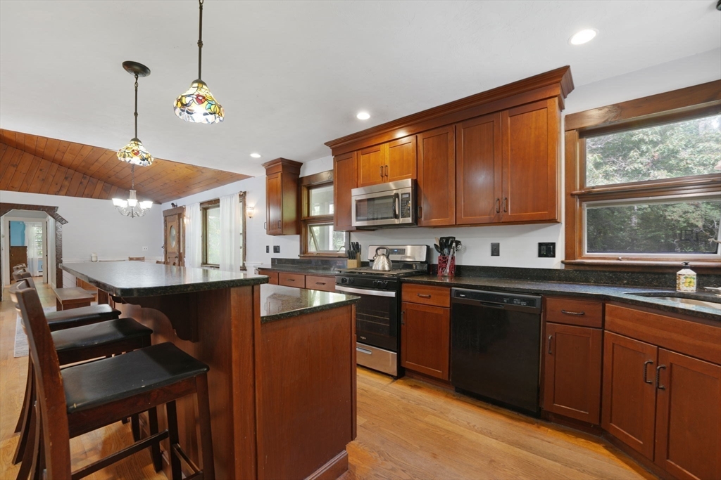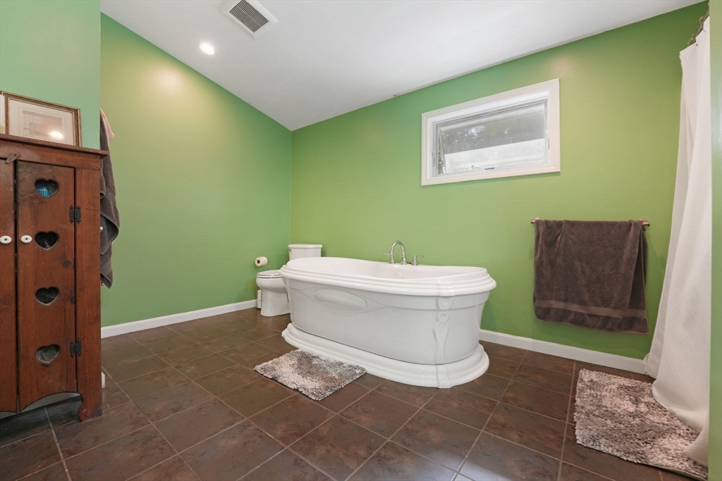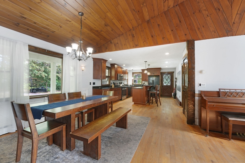 Sprawling and beautifully updated,196 High Street in picturesque Rochester, MA offers 5 bedrooms, 3 baths, and 2 private ensuite retreats on an impressive 5.6-acre lot. The main level features an open floor plan with an updated kitchen boasting granite countertops, custom cabinetry, and large island. A dramatic stone fireplace with propane insert and soaring cathedral wood ceilings anchor the living space. The first-floor primary suite includes a full bath. Also, there are 3 additional bedrooms providing flexibility. Upstairs, discover a second luxurious ensuite with vaulted ceilings, recessed lighting, a walk-in closet, and a spa-like bathroom with a Russian soaker tub and double vanity. Outside, enjoy the expansive grounds ideal for gardens, outdoor recreation, or hobby farming in Rochester’s Right to Farm community. Also, you have beach rights to Silver Shell Beach in Marion, easy access to Wareham Crossing, Rte. 495, and Rte.195.All this and seller is putting in a new septic system