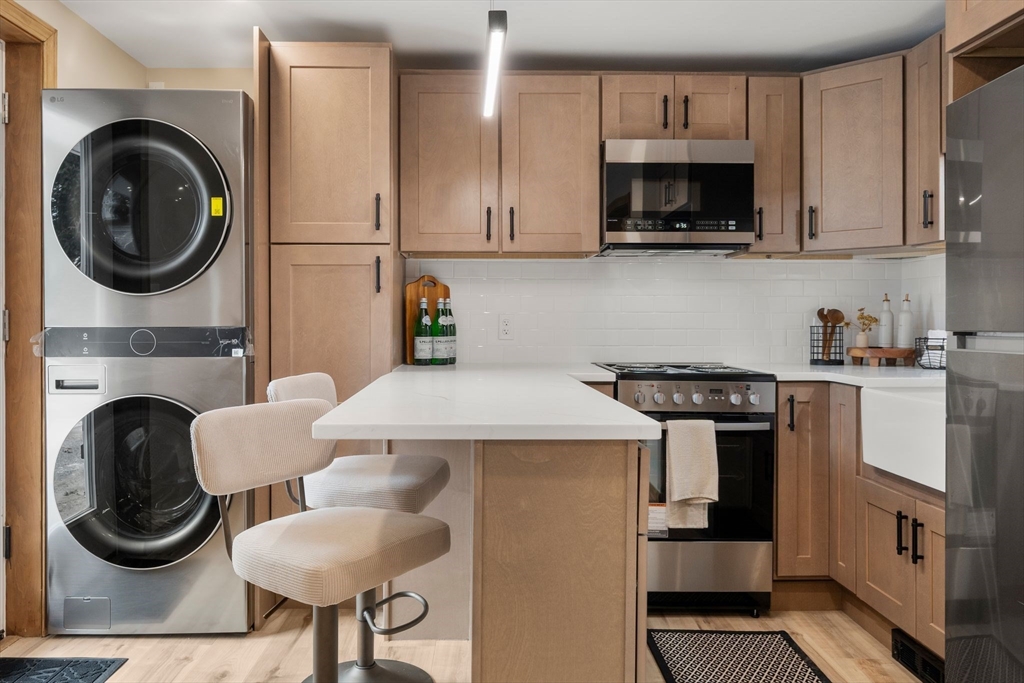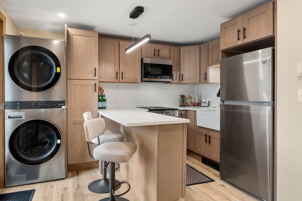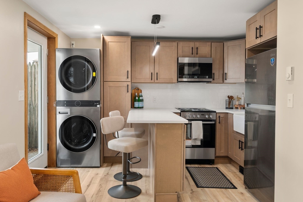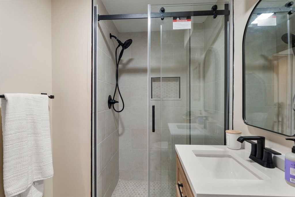 Fully renovated 1 floor living Duplex! Very rare to find! This beautiful 2-family offers a unique opportunity for a low maintenance, move in ready home, all on one level. The property has a new rubber roof, electrical, plumbing, kitchens, bathrooms, floors, and more! Both sides feature 1 bedroom and 1 bathroom. The kitchens have brand new shaker cabinets, quartz counters, farmhouse sink and stainless steel appliances. The bathrooms are thoughtfully designed with comfort and style in mind, featuring tiled walk-in showers, creating a spa-like experience within the home. Additional highlights include 4 off-street parking spaces. Ideal for an investor or owner-occupant seeking a turnkey two-family property.