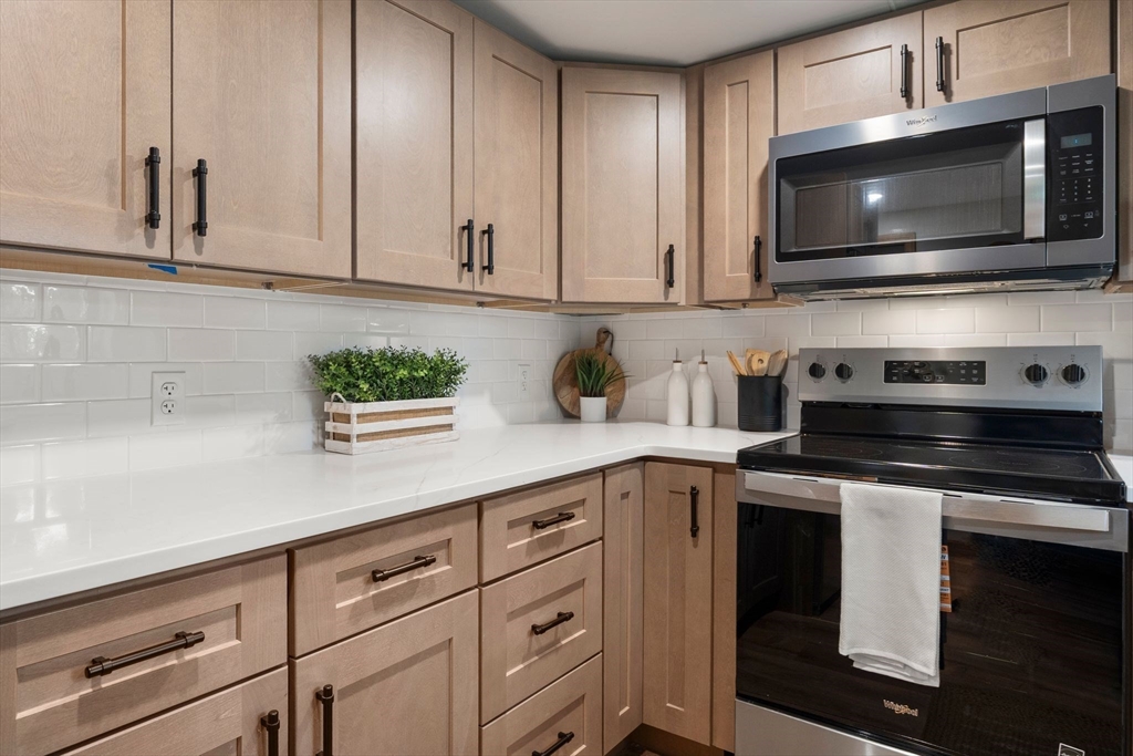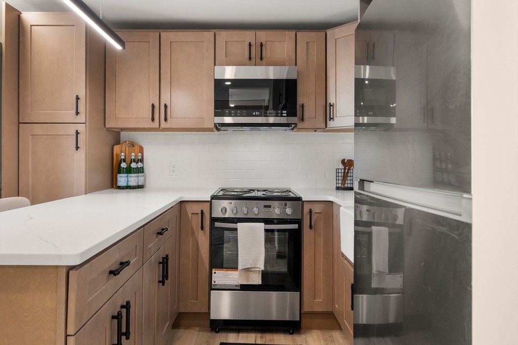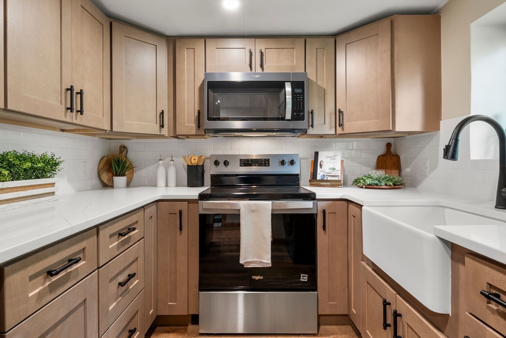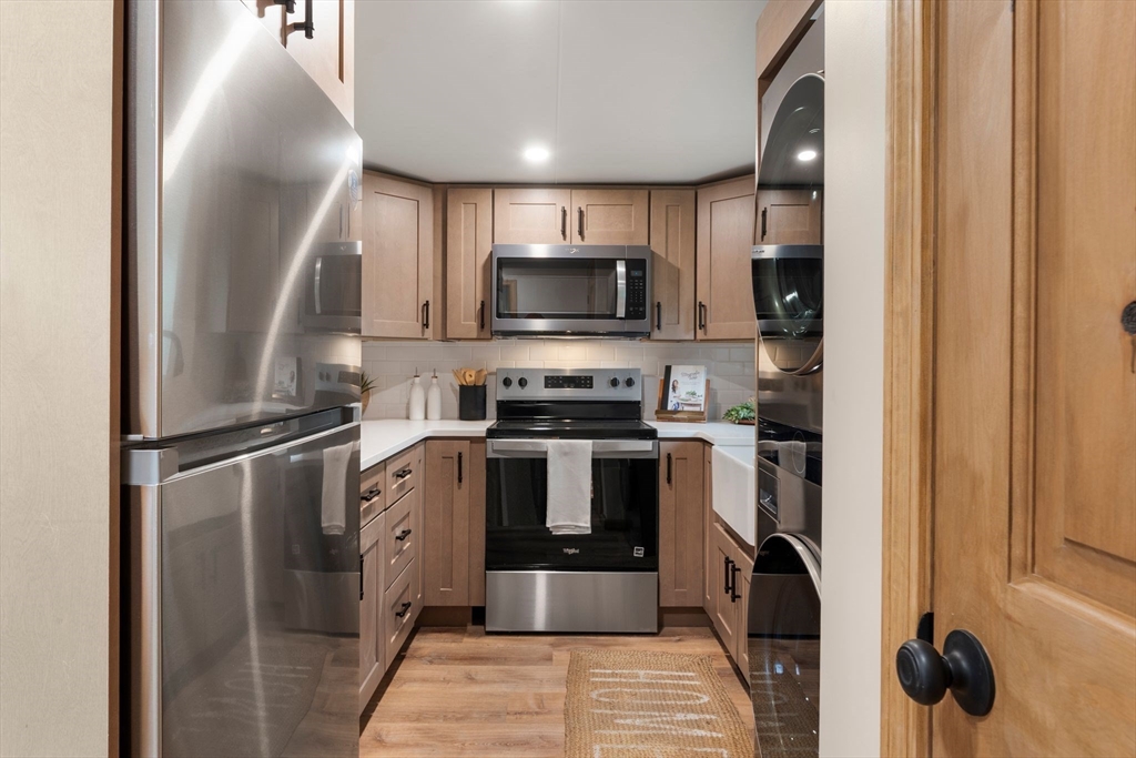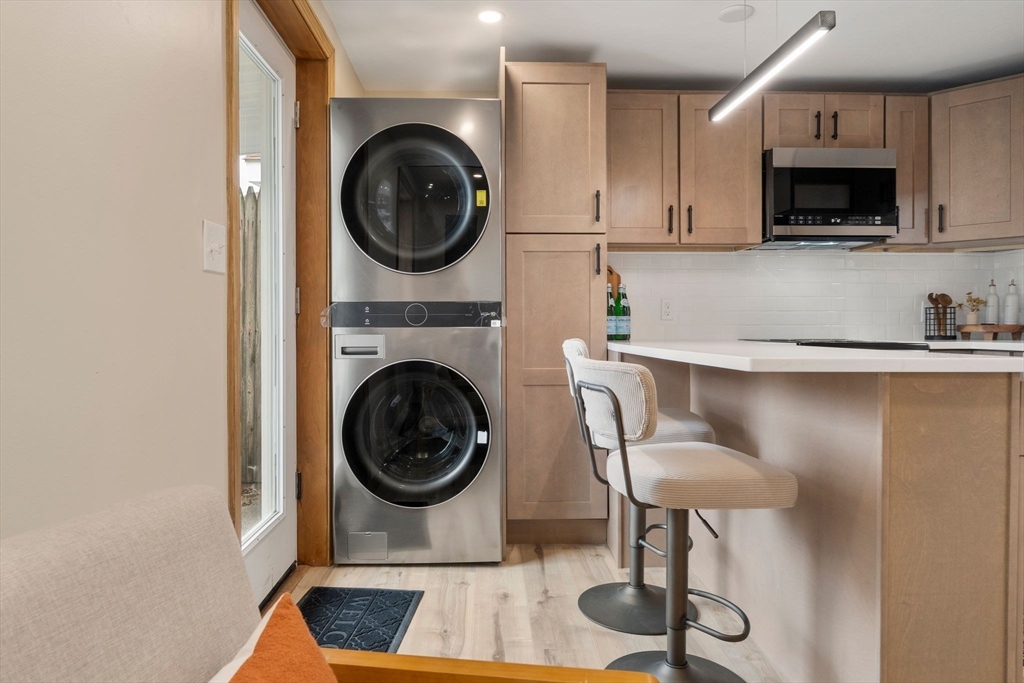 Fully renovated 1 floor living Duplex! Very rare to find! This beautiful 2-family offers a unique opportunity for a low maintenance, move in ready home, all on one level. The property has a new rubber roof, electrical, plumbing, kitchens, bathrooms, floors, and more! Both sides feature 1 bedroom and 1 bathroom. The kitchens have brand new shaker cabinets, quartz counters, farmhouse sink and stainless steel appliances. The bathrooms are thoughtfully designed with comfort and style in mind, featuring tiled walk-in showers, creating a spa-like experience within the home. Additional highlights include 4 off-street parking spaces. Ideal for an investor or owner-occupant seeking a turnkey two-family property.