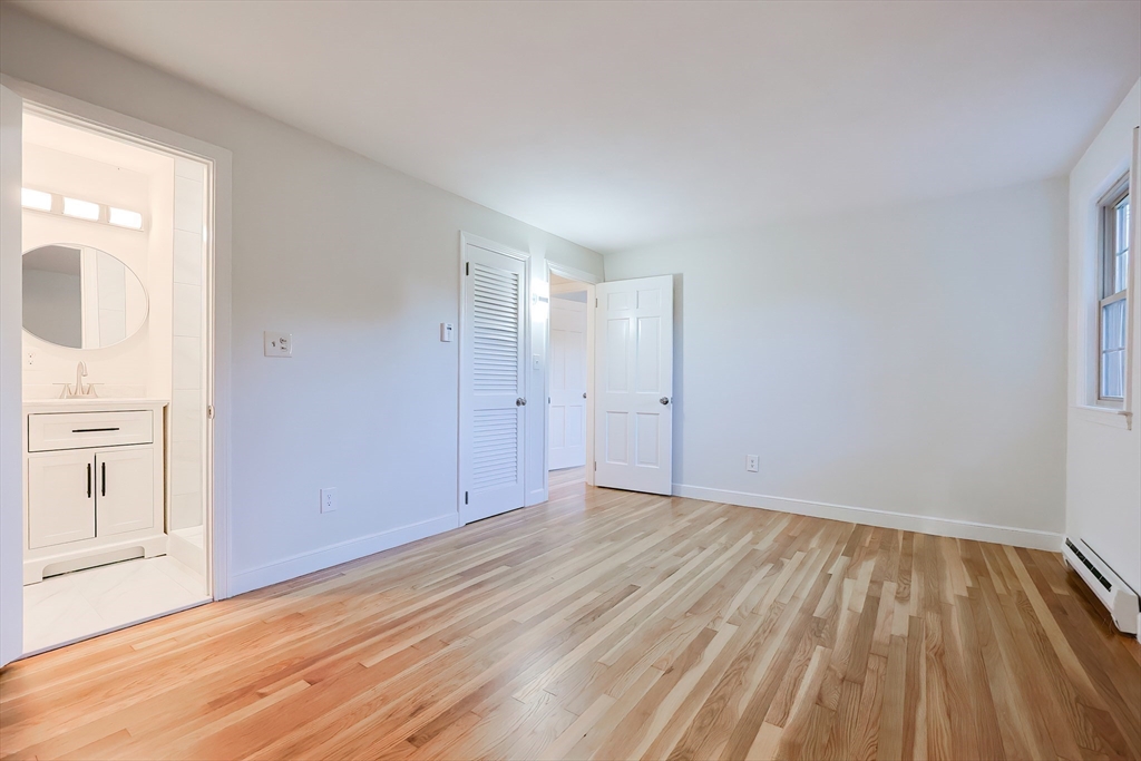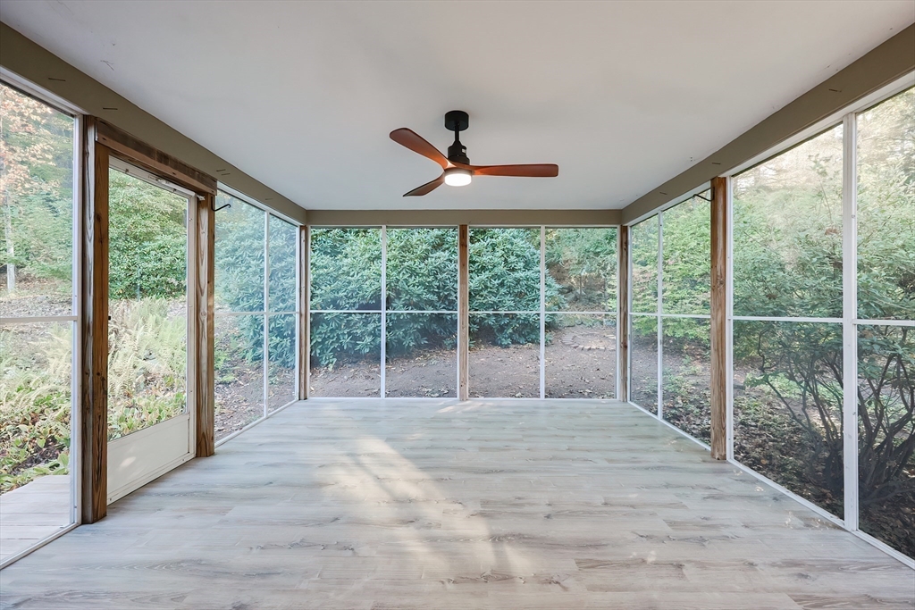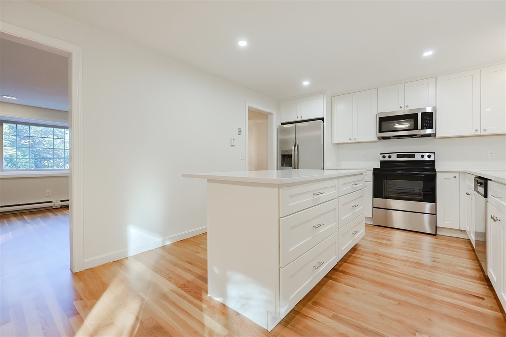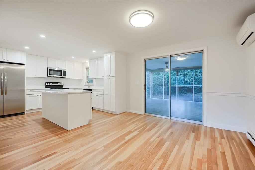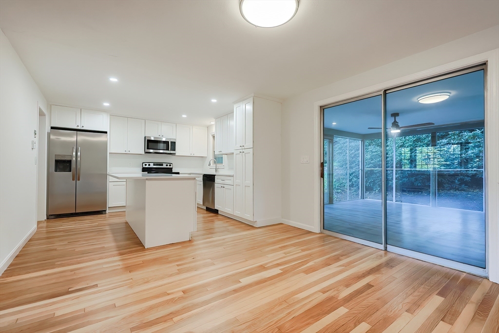 Renovated Raised Ranch: 4 BR/2 ½ bath, 2-car garage home in highly desirable Woodcrest Acres!!! Brand New Kitchen with island, shaker cabinets, quartz countertop, and new appliances. 2 Brand new fully renovated full bathrooms on the main floor. New paint and beautifully refinished hardwood flooring. Home is energy efficient with 3 Heat Pumps & minisplits to individually set temp in each room. Built by original owners with old-school quality craftsmanship with solid wood doors and high quality windows. Updated electrical and plumbing, and new garage doors and openers. Set on a wooded, half acre lot with lovely Screened Porch for meals, relaxing and entertaining. Large Living Rm with wood burning fireplace and bay window. Lower level large Family room with wood-burning fireplace and large picture window. Large lower level office / project room with double closets. Lower level half bath in laundry room. Great location convenient to Rt 9, Mass Pike and close proximity to the trains