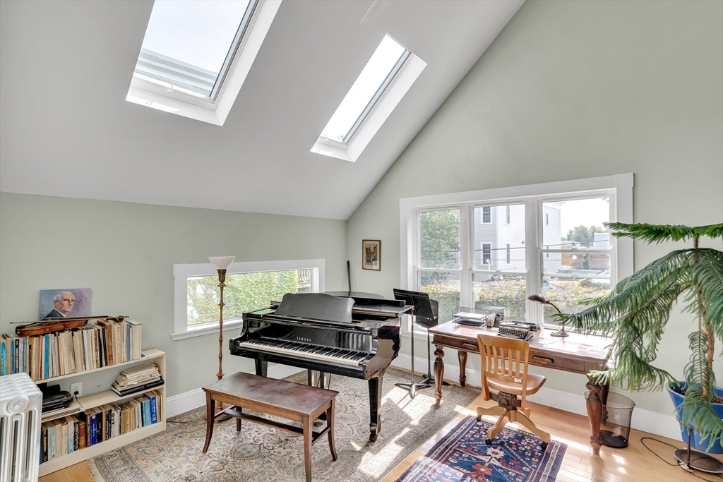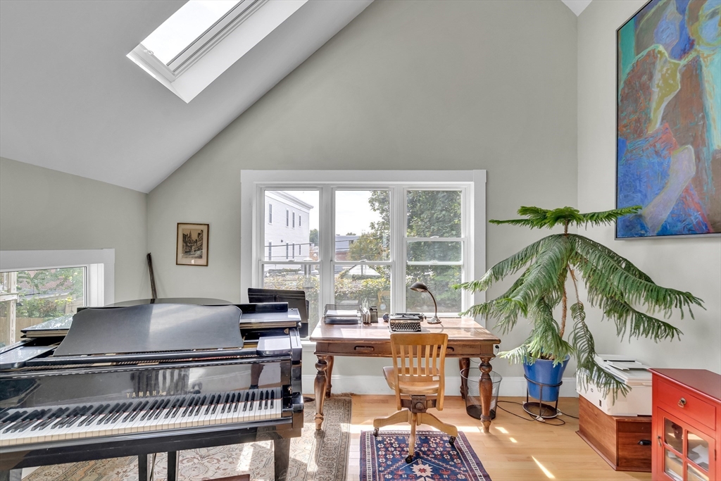 Great opportunity to own a single family (C'1900) in one of Somerville's most desirable locations- on top of Union Sq and close to the Green Line. Urban access yet on a quiet, one-block long, one-way street. Substantial improvements were made during the last five years. With an emphasis on light throughout- the kitchen and dining room were re-designed and a bath (w/ laundry), added. Upstairs, one of the three bedrooms was re-imagined as a skylit studio with a vaulted ceiling. Two additional, generously-sized bedrooms and the common, older bath complete the 2nd floor. A classic, period staircase, hardwood floors and large windows throughout. French doors off of the living room lead to the heated sunroom- the perfect home-office, play-room or "flex" space. Newer roof, exterior paint, an upgraded 200amp panel and gas systems complement the untapped basement with a ceiling height of 7'9". This prime location, a private back yard and driveway complete the package. Welcome to 22 Knapp St.
