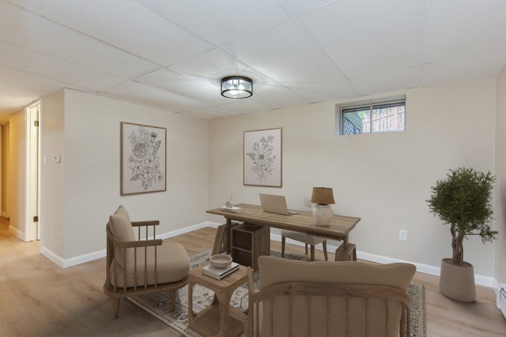Stunningly renovated 3-bed, 2-bath home perfectly situated on a desirable corner lot! Step inside to find a brand-new kitchen featuring custom cabinetry, sleek quartz countertops, stainless steel appliances & gleaming hardwood floors that flow throughout. Both full bathrooms have been thoughtfully renovated, with one showcasing a beautiful custom tiled shower. A finished lower level provides a spacious secondary living room & dedicated home office area. The One-year-old roof & new 200-amp electrical service offer peace of mind for years to come. Additional amenities include one car garage, large driveway providing plenty of parking as well a secondary side driveway for even more parking, a large attic & exterior storage shed provides plenty of storage, covered rear deck leading to a spacious patio complete with a fence-in backyard! Designed with a blend of modern luxury & function, this move-in ready home is perfect for entertaining, working from home, or simply relaxing in style.