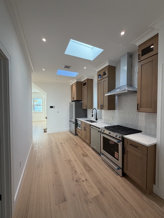 Welcome to 5 Thurston Street, Unit 3 – a brand-new, never-before-lived-in boutique luxury residence in Somerville featuring a spectacular private roof deck with sweeping skyline views and a dedicated gas line for grilling — a true retreat for city living. This top-floor condo-quality home with custom carpentry throughout boasts 11' ceilings, off-street parking, in-unit laundry, and a galley-style cook’s kitchen with high-end stainless steel appliances and gas cooking. Thoughtful touches include a mini mudroom entry, an electric fireplace, instant hot water, and industry-leading sound isolation for exceptional privacy between units.Enjoy a private front porch and assigned off-street parking with a private EV charger. Just a 2-minute walk to the brand-new Green Line and Community Bike Path with direct access to Boston or Tufts, and close to Somerville’s award-winning dining scene (including Sarma, recently rated #1 in MA), City Hall, the new High School, YMCA, playgrounds, and more.