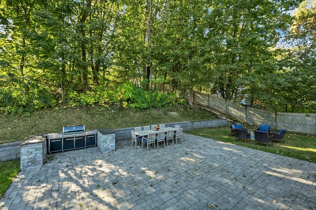 Welcome to this beautifully maintained home, nestled in a quiet cul-de-sac in the heart of Belvidere. Set on a spacious, private wooded lot, this move-in-ready gem offers comfort & style in a walkable, friendly neighborhood. Step inside to an inviting open-concept kitchen and living room featuring granite countertops, a center island, and new refrigerator and stove. Enjoy gatherings on the expansive outdoor patio, complete with a premium Weber grill, patio furniture, and a cozy firepit—ready for fall nights & summer BBQs alike! The main level includes 3 generous bedrooms and a full bath, while the finished lower level offers flexible living space with a gas fireplace, full bath, and an additional room with a walk-in closet—ideal for guests, or a home office. Additional features include: freshly painted interior, central A/C, new gutters, new windows, pull-down attic for storage & a fully fenced backyard. Mins from Rte 495, 45 mins from Boston. OPEN HOUSES Sat. & Sunday 11:00am-1:00pm