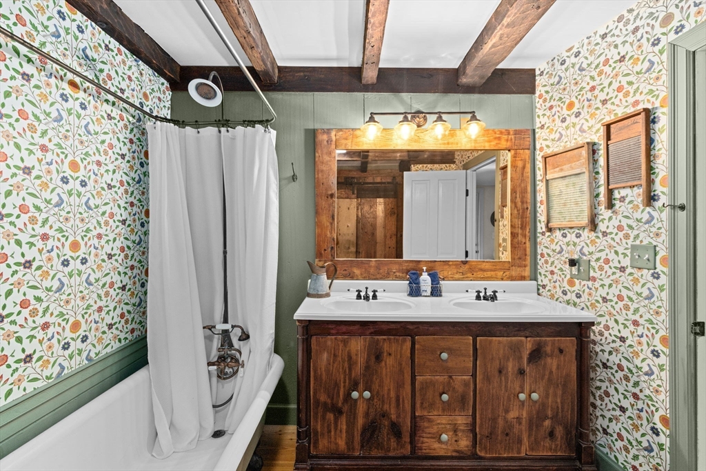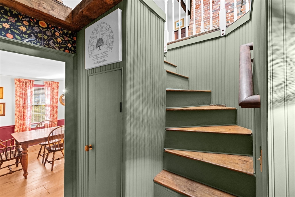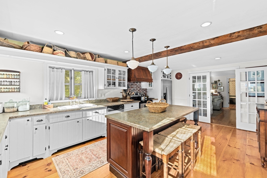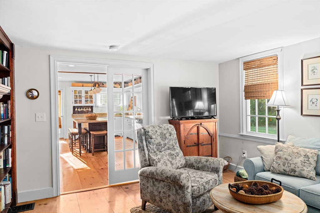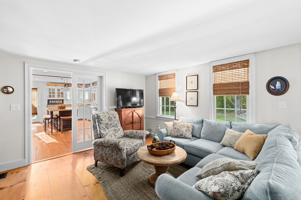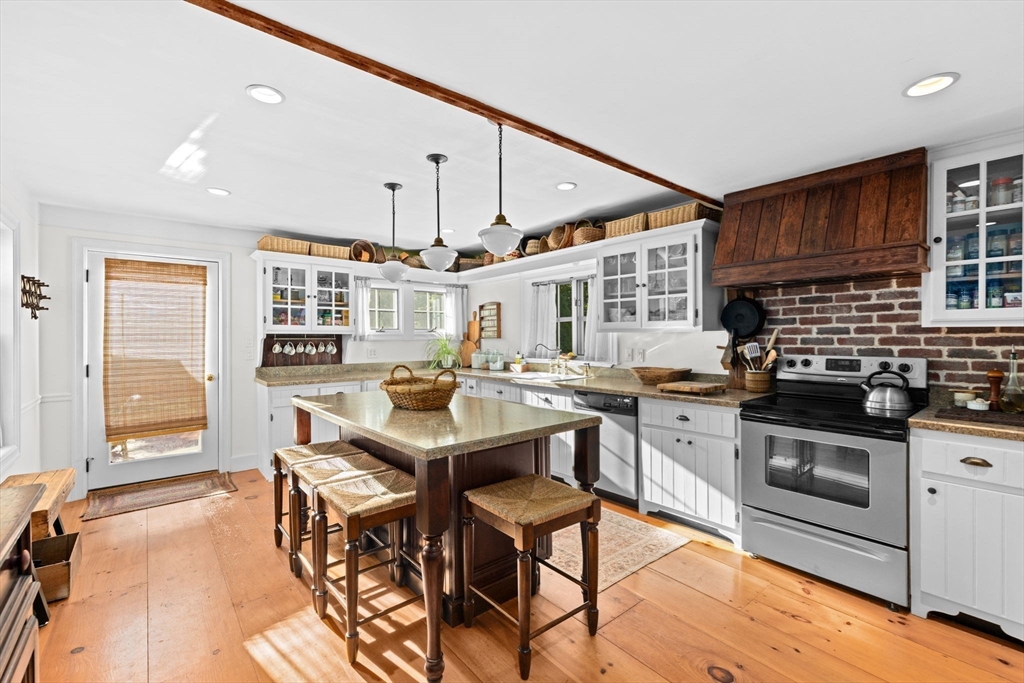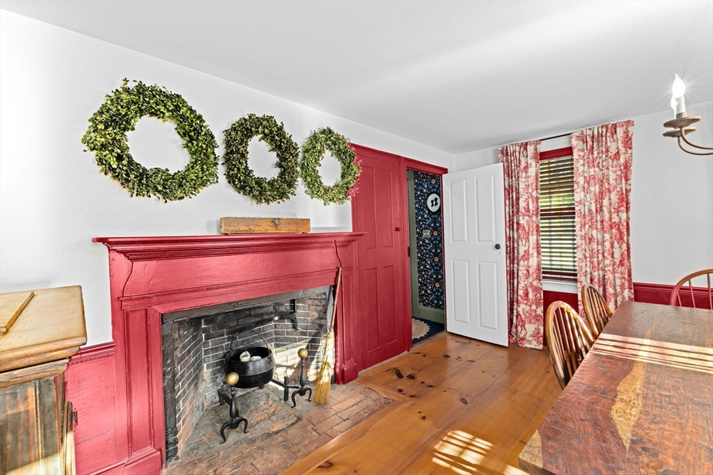 Quintessential Antique Cape, circa 1770, offers a step back in time with todays amenities. This home has been lovingly restored while preserving many period details. Wide pine floors, beams & 4 fireplaces adorn the rooms while reclaimed wood has been incorporated into many of the renovations. Charming bead board kitchen with large center island offers casual ambiance & great space for the chef to create. Glass doors welcome you into the living area where a massive fireplace, built ins & bookcase flank the center wall. A formal dining room with fireplace is always ready to host holiday gatherings. First floor main bedroom with fireplace & bath with laundry allows for one level living. Second floor offers two additional bedrooms each with its own bath. The barn is just steps away & has been transformed into a fabulous family room & office with mini split heat & a/c. Additionally, a 2 car garage & a large storage shed are all perched on meticulous grounds offering a brick patio & firepit.