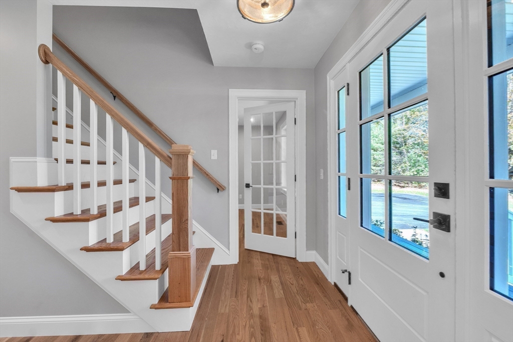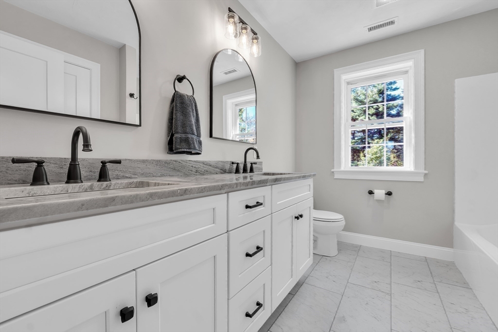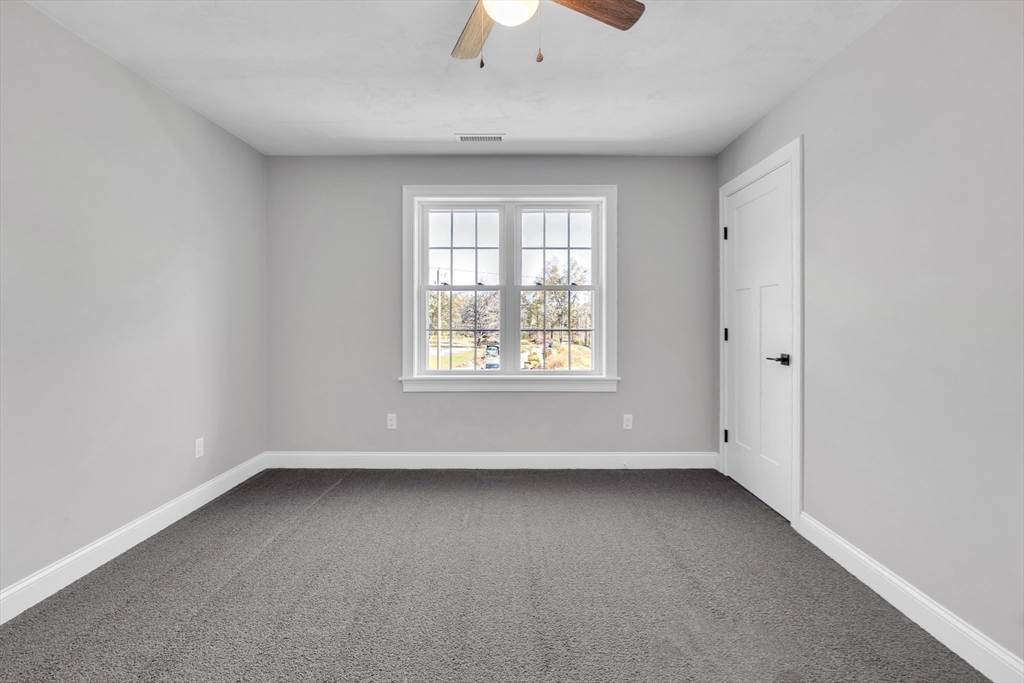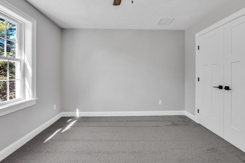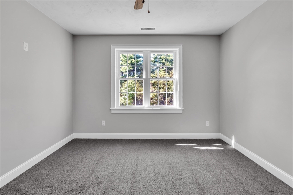 New construction by Elbag Builders—known for high-quality, energy-efficient homes—this beautiful farmhouse strikes a nice balance between privacy and community. Set on 1.5 acres near the Rutland/Princeton line, just minutes to 68. The first floor features an elegant living room with a propane fireplace, sunlit dining room with expanded sliders and custom millwork, chef’s kitchen with center island, stainless steel appliances, granite counters, and walk-in pantry with built-in shelving and matching granite counters. A flex/office room sits off the open foyer. Upstairs, the spacious primary suite includes a custom walk-in closet and a relaxing bath, along with two additional bedrooms and a full bathroom with a double vanity. The laundry room features two hanging racks and ample counter space for folding clothes. Additional highlights include a farmers porch, oversized two-car garage, built-in mud bench, and large composite deck overlooking the scenic backyard with western sunsets.