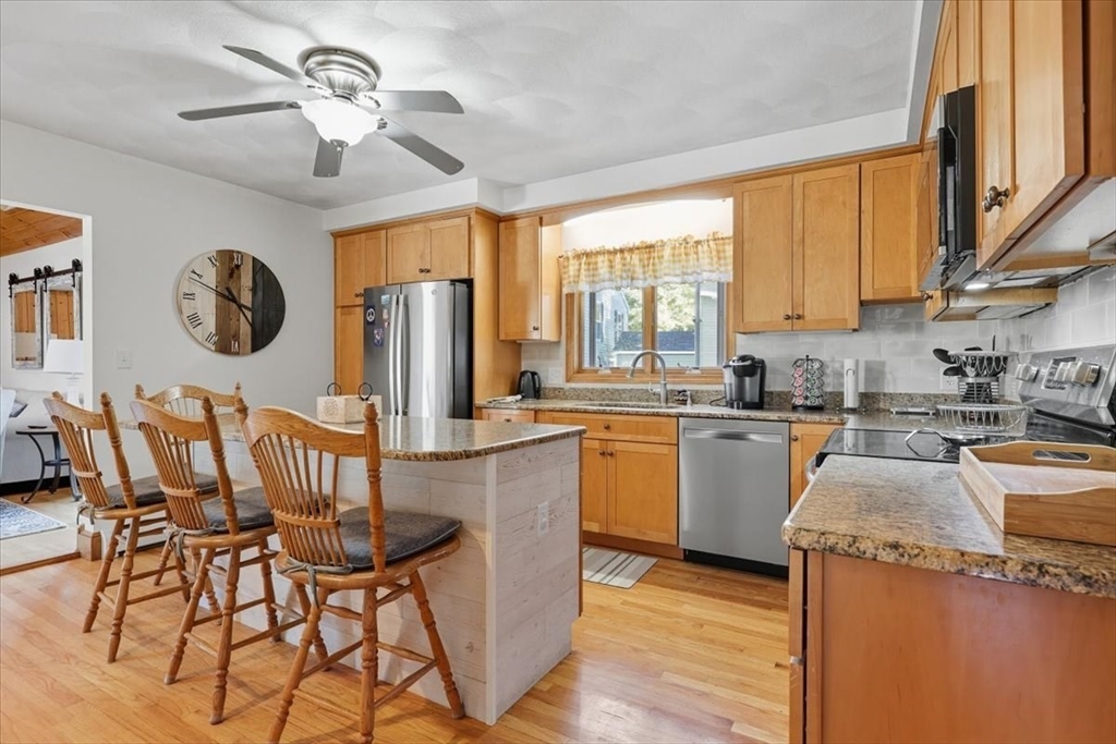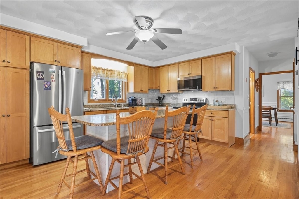 Nestled in the heart of Wilmington, this charming Colonial offers 2,000 square feet of comfortable living space. The home features three bedrooms, two bathrooms, and an open concept kitchen and family room. Inside, hardwood and carpeted floors flow throughout the home, with a classic wood-and-brick exterior. A cozy fireplace anchors the living-room, providing a welcoming atmosphere for relaxing and entertaining. The unfinished basement offers ample potential for storage. This property is situated in the welcoming suburban community of Wilmington, known for its strong community spirit and excellent public schools. For commuters, the location offers convenient access to major highways (I-93 and I-95) and the MBTA commuter rail, making it a perfect blend of suburban tranquility with urban accessibility.