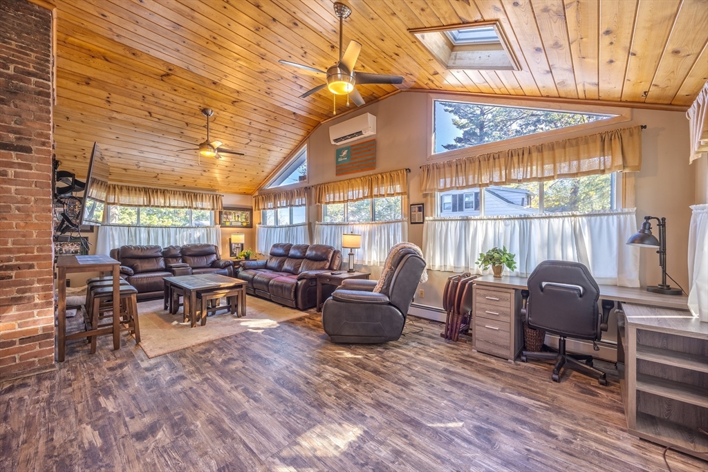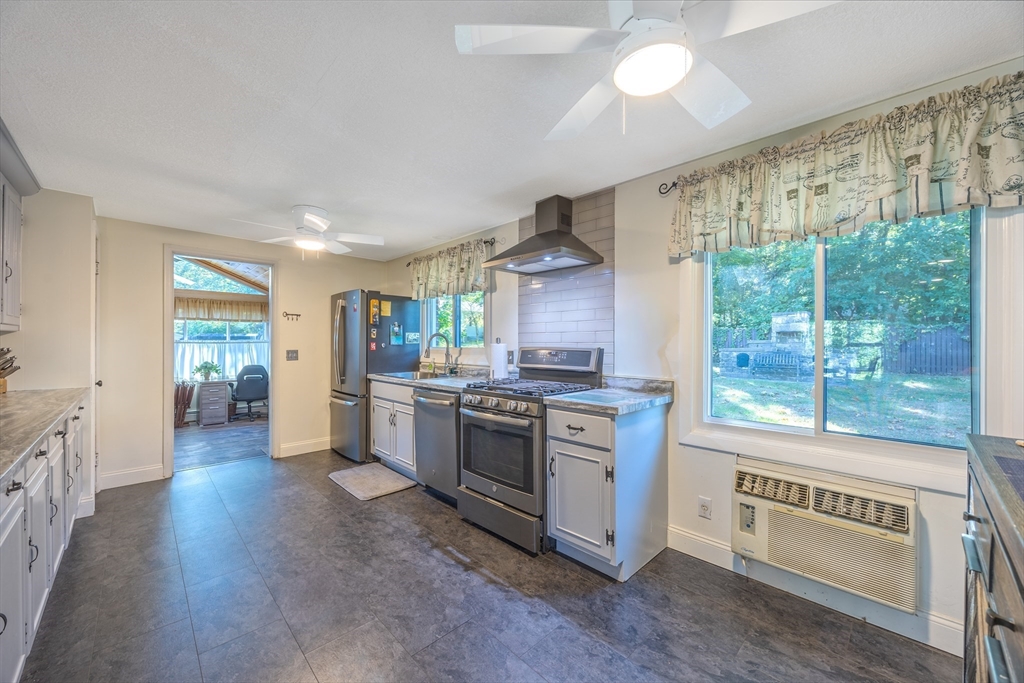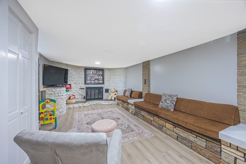 CUSTOM BRICK RANCH offering fantastic, versatile living spaces! Original living room with stunning stone fireplace now serves as a spacious dining room. Kitchen boasts ample cabinets, counters, cozy dining nook & SS appliances. Sun-filled family room features skylights & a wall of windows—perfect for relaxing. Main level includes 2 large bedrooms & remodeled full bath. Lower level impresses with another family room, masonry built-ins, fireplace, two more bedrooms, updated ¾ bath, laundry, and access to the attached garage. Enjoy a beautifully landscaped yard with outdoor fireplace & 10x12 shed. Lovingly maintained with lots of recent updates: windows throughout, flooring in the lower level, four mini splits, gutters w/ guards, regrading & basement waterproofing. Move-in ready! Showings begin at the Open House Sunday October 5, 2025 from 12:30pm to 2:00pm. Don't miss this one!