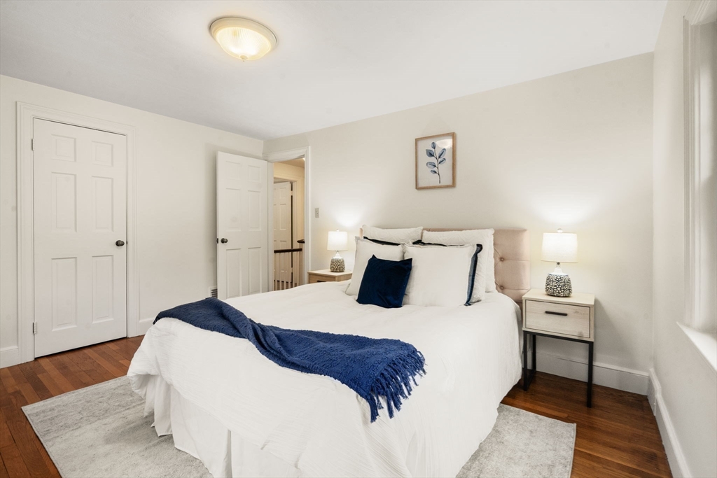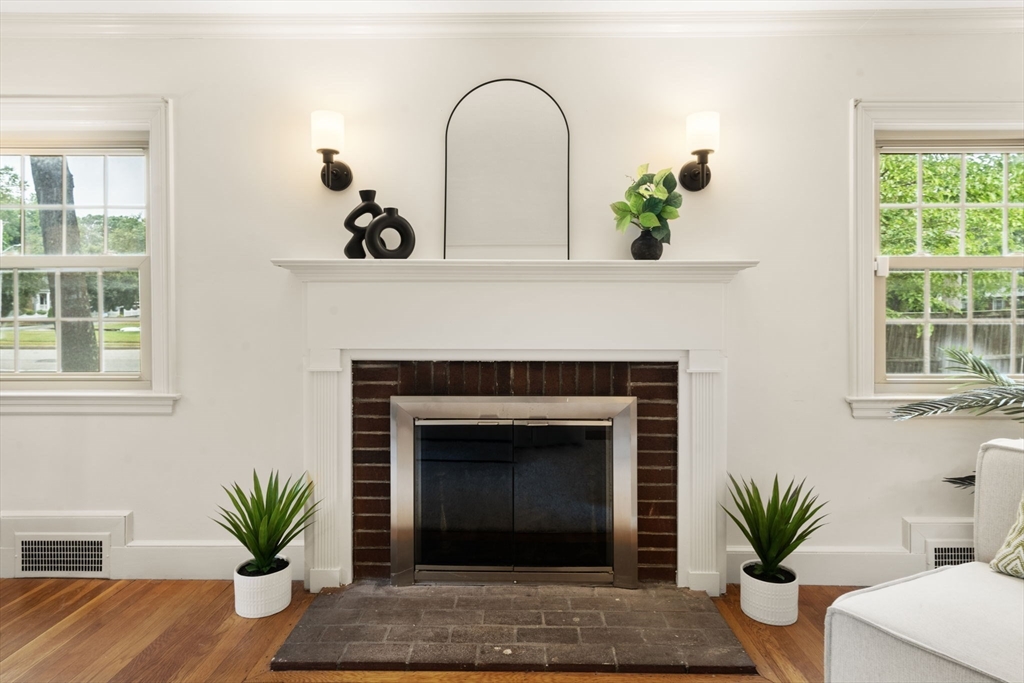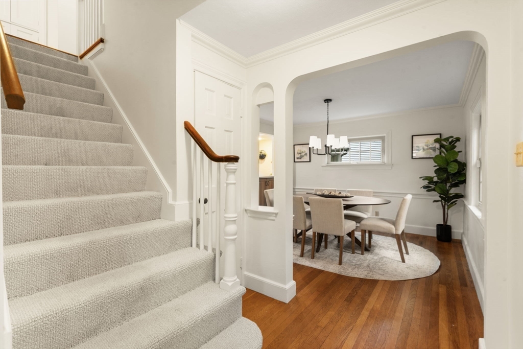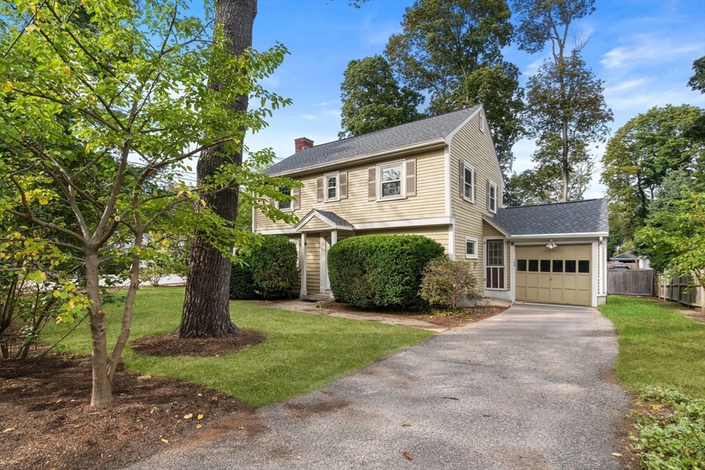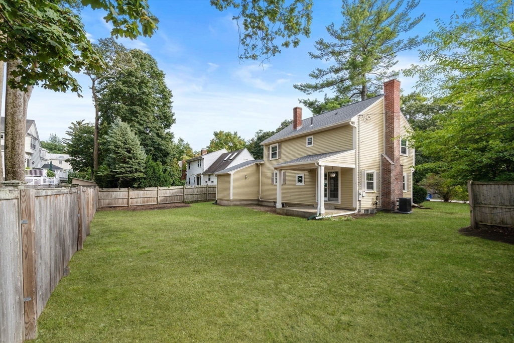 Welcome to 163 Day Street in Auburndale—a delightful Colonial featuring 3 beds, 1.5 baths, Central AC, and garage. Upon entering, you're greeted by a bright, freshly painted interior that leads to the living room with hardwood floors & wood burning fireplace. French doors open to a covered patio and partially fenced, level backyard, offering privacy & space to enjoy the outdoors. The eat-in kitchen is well-appointed with ample cabinetry, Corian counters, kitchen island with gas stove, and double ovens. The adjacent dining room with chandelier opens to the kitchen, making it an ideal setting for entertaining. A convenient half bath rounds out this level. Newly carpeted stairs guide you to the 2nd floor, featuring the spacious primary bedroom with walk-in closet and ensuite full bath. A second bathroom door provides access to 2 additional bedrooms completing this floor. The freshly painted lower level offers 660sqft of unfinished space, ready for your imagination. 163 Day is a must see!