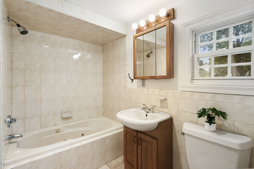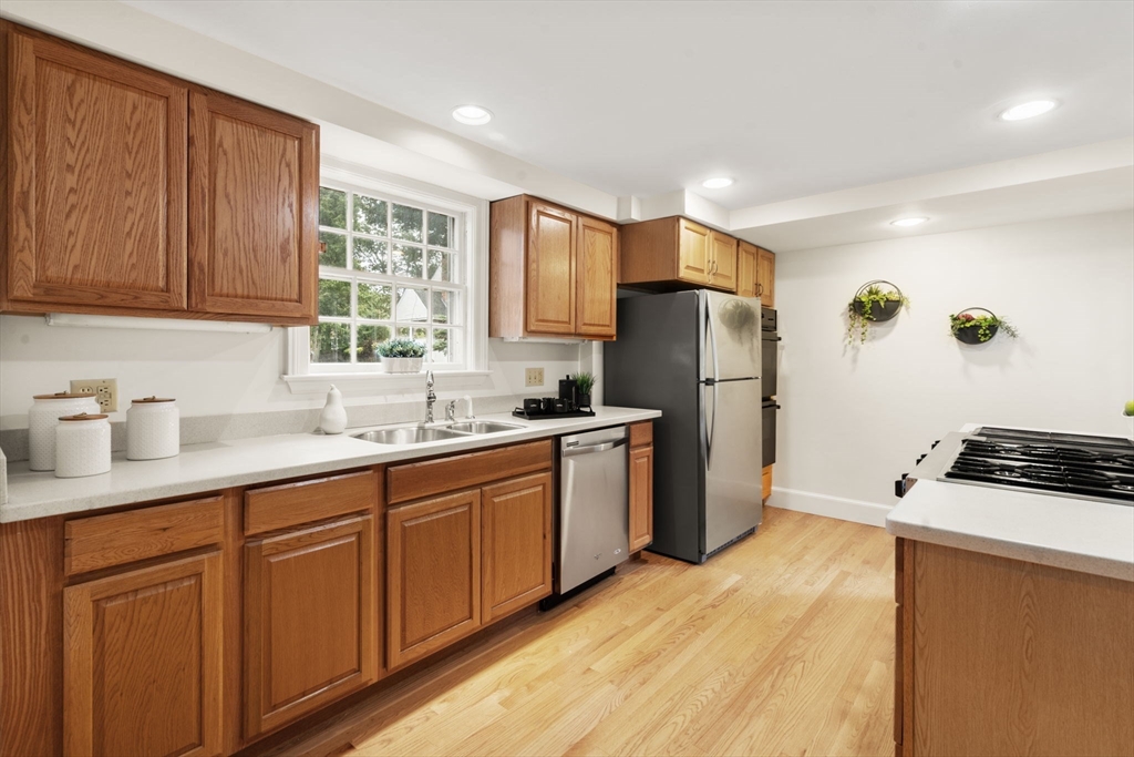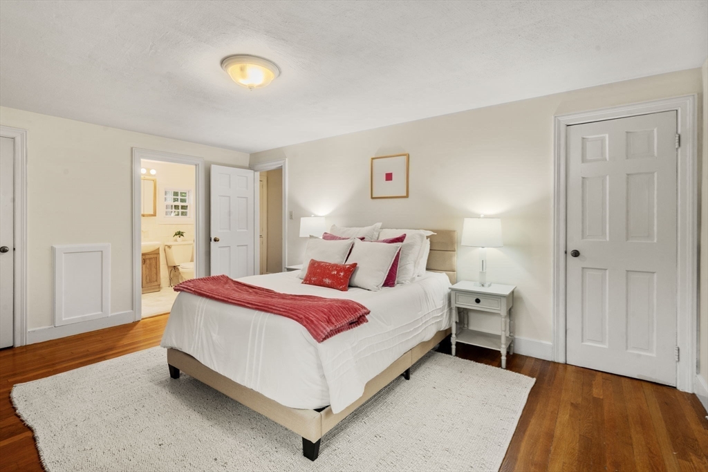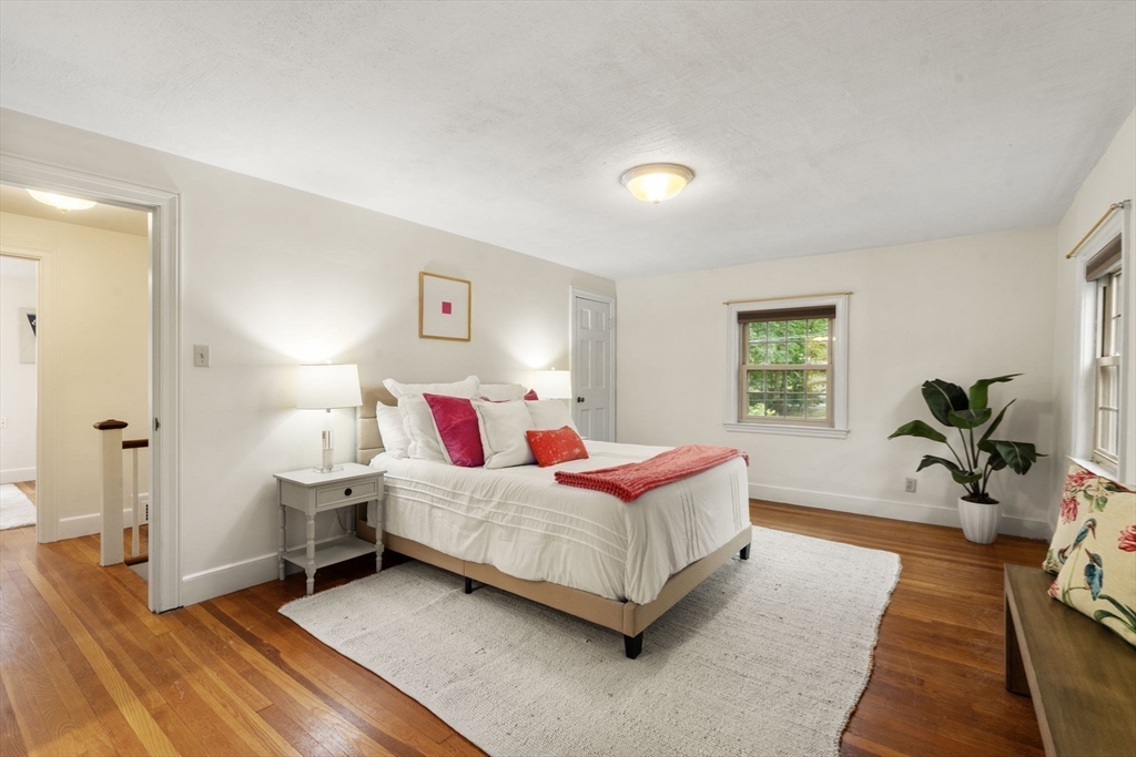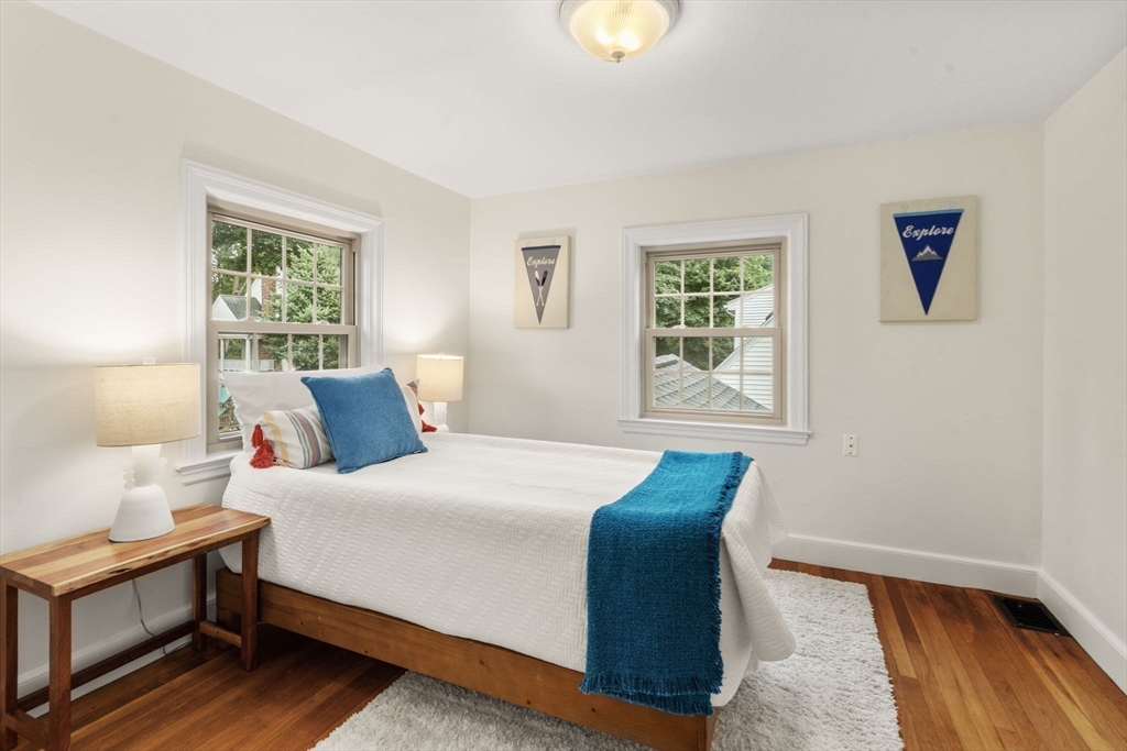 Welcome to 163 Day Street in Auburndale—a delightful Colonial featuring 3 beds, 1.5 baths, Central AC, and garage. Upon entering, you're greeted by a bright, freshly painted interior that leads to the living room with hardwood floors & wood burning fireplace. French doors open to a covered patio and partially fenced, level backyard, offering privacy & space to enjoy the outdoors. The eat-in kitchen is well-appointed with ample cabinetry, Corian counters, kitchen island with gas stove, and double ovens. The adjacent dining room with chandelier opens to the kitchen, making it an ideal setting for entertaining. A convenient half bath rounds out this level. Newly carpeted stairs guide you to the 2nd floor, featuring the spacious primary bedroom with walk-in closet and ensuite full bath. A second bathroom door provides access to 2 additional bedrooms completing this floor. The freshly painted lower level offers 660sqft of unfinished space, ready for your imagination. 163 Day is a must see!