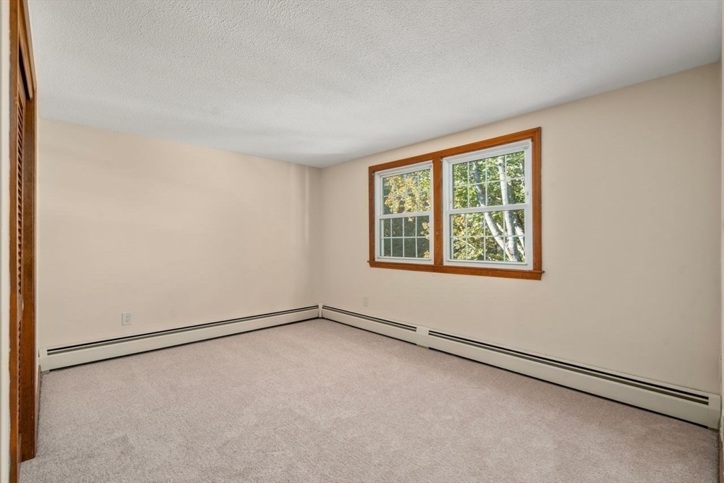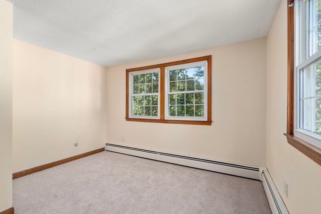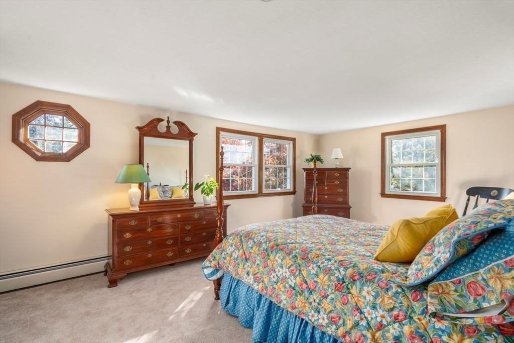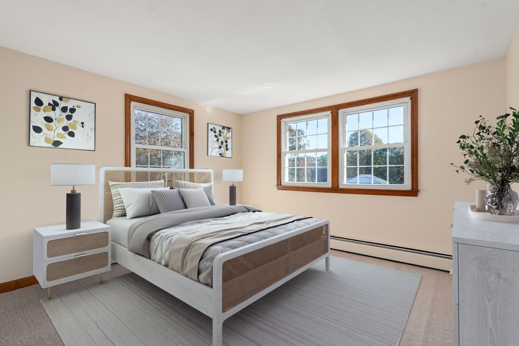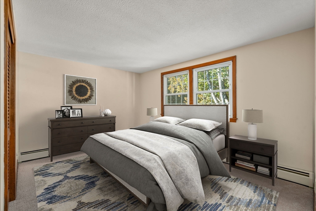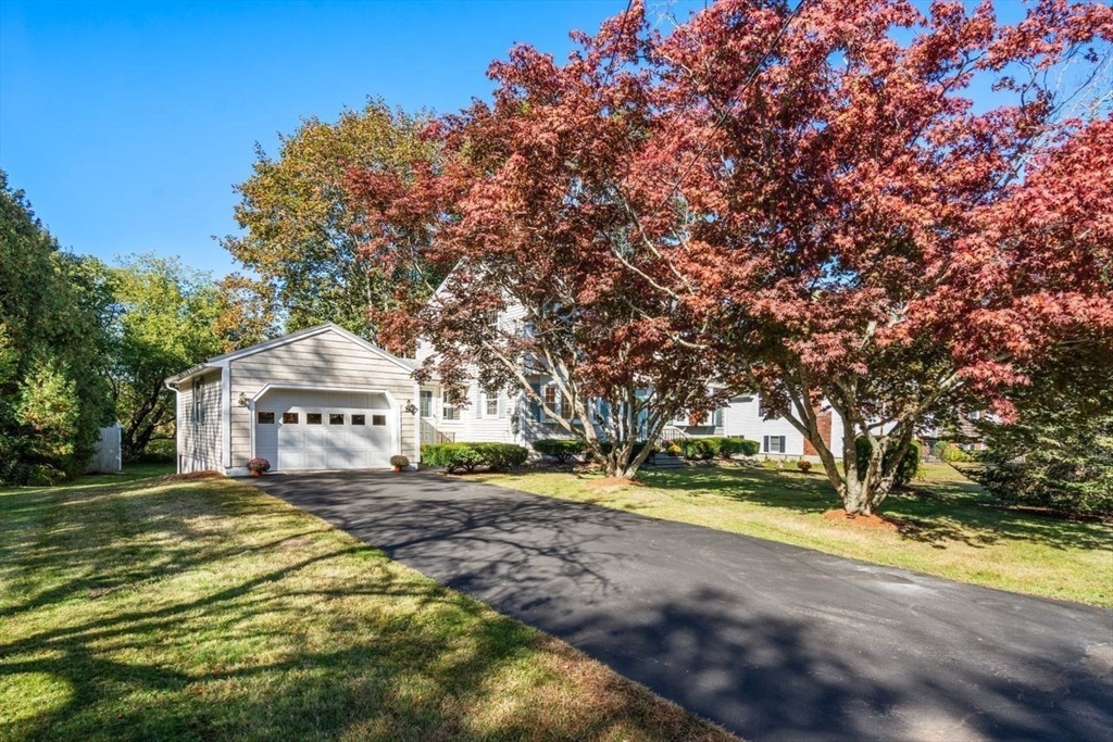 Welcome home to this meticulously maintained, move-in ready residence, perfectly positioned on a tranquil cul de sac in a highly sought after neighborhood. Designed for comfortable living & affording a variety of options for effortless entertaining, this delightful house offers an excellent flow & is flooded with natural light & lovely views of the large, level, manicured yard with its mature trees, garden areas & convenient shed, abutting a hayfield. Recent updates include newly refinished gleaming hardwood floors, plush new wall to wall carpeting & fresh paint throughout. Elegant crown molding adds a touch of sophistication to the spacious main rooms. Key features & amenities: eat-in kitchen, energy efficient paned windows, 2 year old upgraded electrical panel; abundant storage throughout; an oversized, attached, side entry, 1 car garage; a wonderfully green, peaceful location, combining easy access to major routes 93 & 495, shopping & recreation to provide gracious living.
