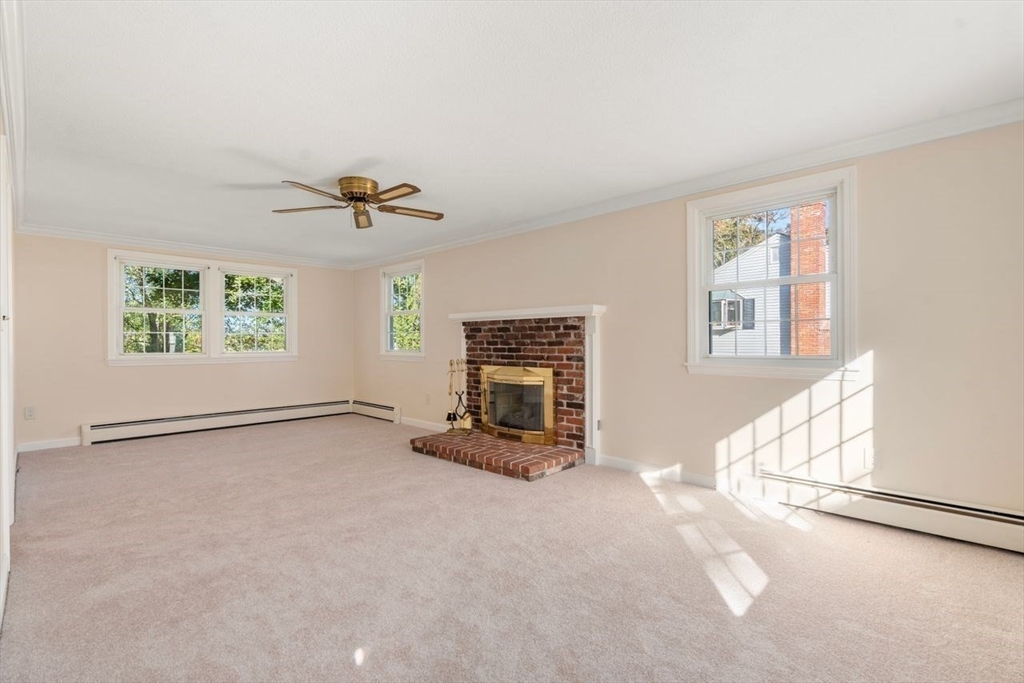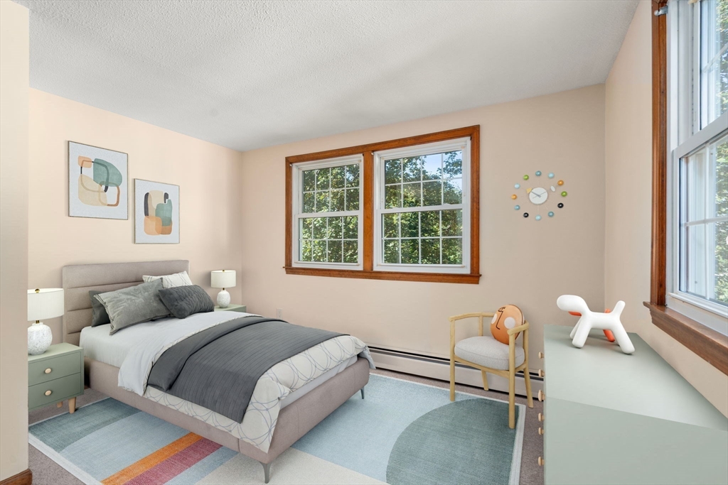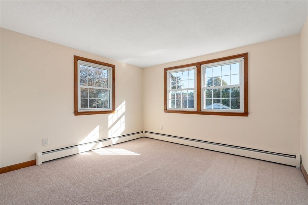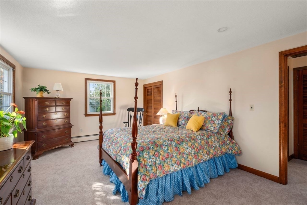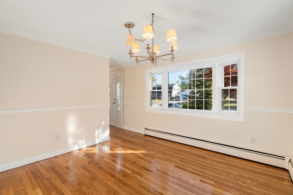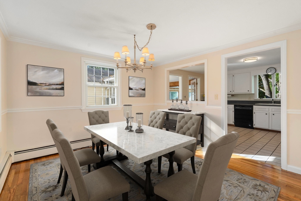 Welcome home to this meticulously maintained, move-in ready residence, perfectly positioned on a tranquil cul de sac in a highly sought after neighborhood. Designed for comfortable living & affording a variety of options for effortless entertaining, this delightful house offers an excellent flow & is flooded with natural light & lovely views of the large, level, manicured yard with its mature trees, garden areas & convenient shed, abutting a hayfield. Recent updates include newly refinished gleaming hardwood floors, plush new wall to wall carpeting & fresh paint throughout. Elegant crown molding adds a touch of sophistication to the spacious main rooms. Key features & amenities: eat-in kitchen, energy efficient paned windows, 2 year old upgraded electrical panel; abundant storage throughout; an oversized, attached, side entry, 1 car garage; a wonderfully green, peaceful location, combining easy access to major routes 93 & 495, shopping & recreation to provide gracious living.