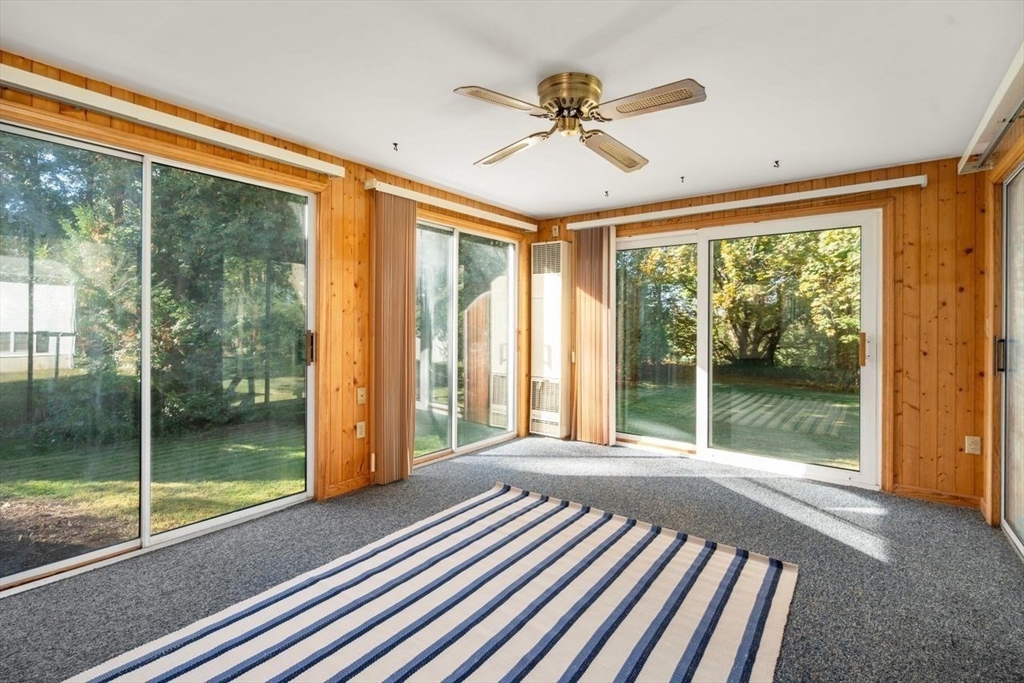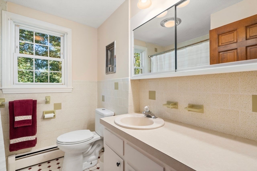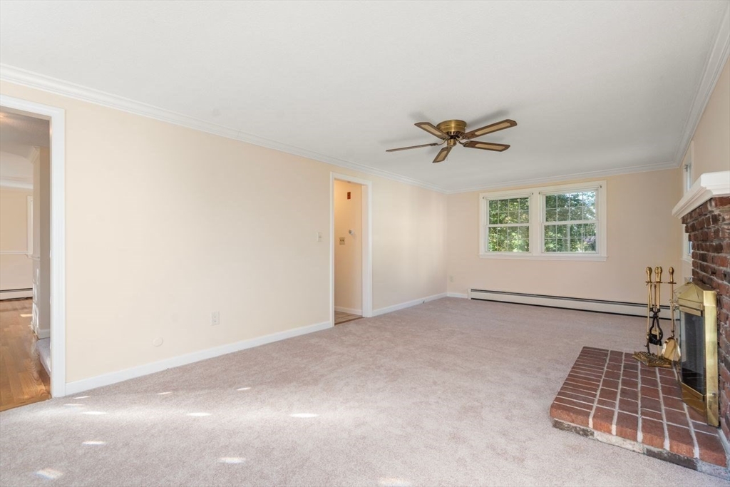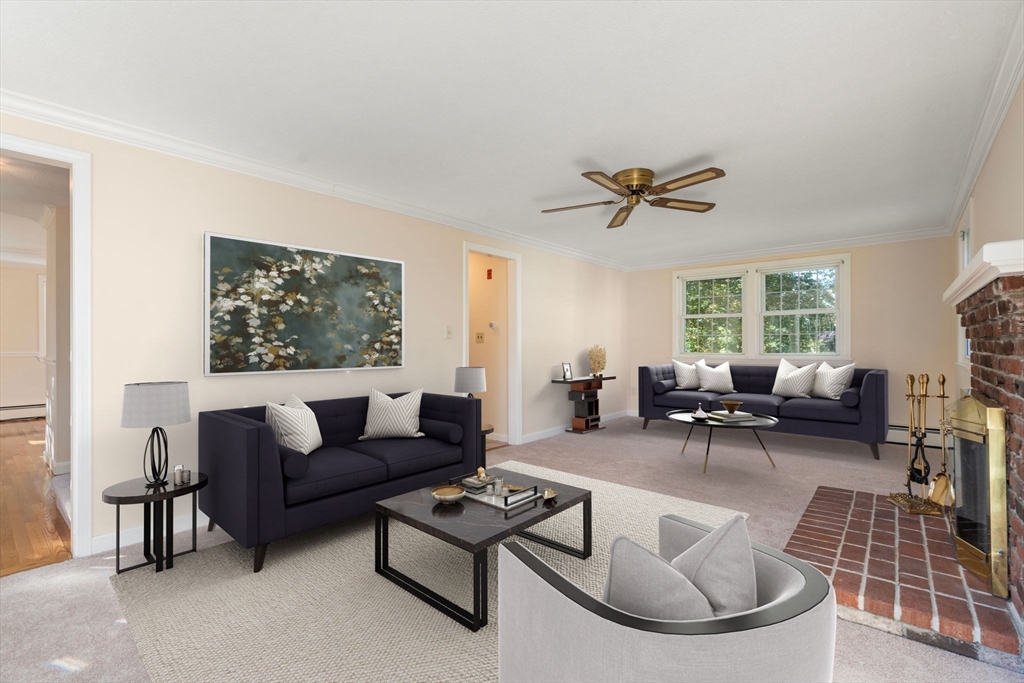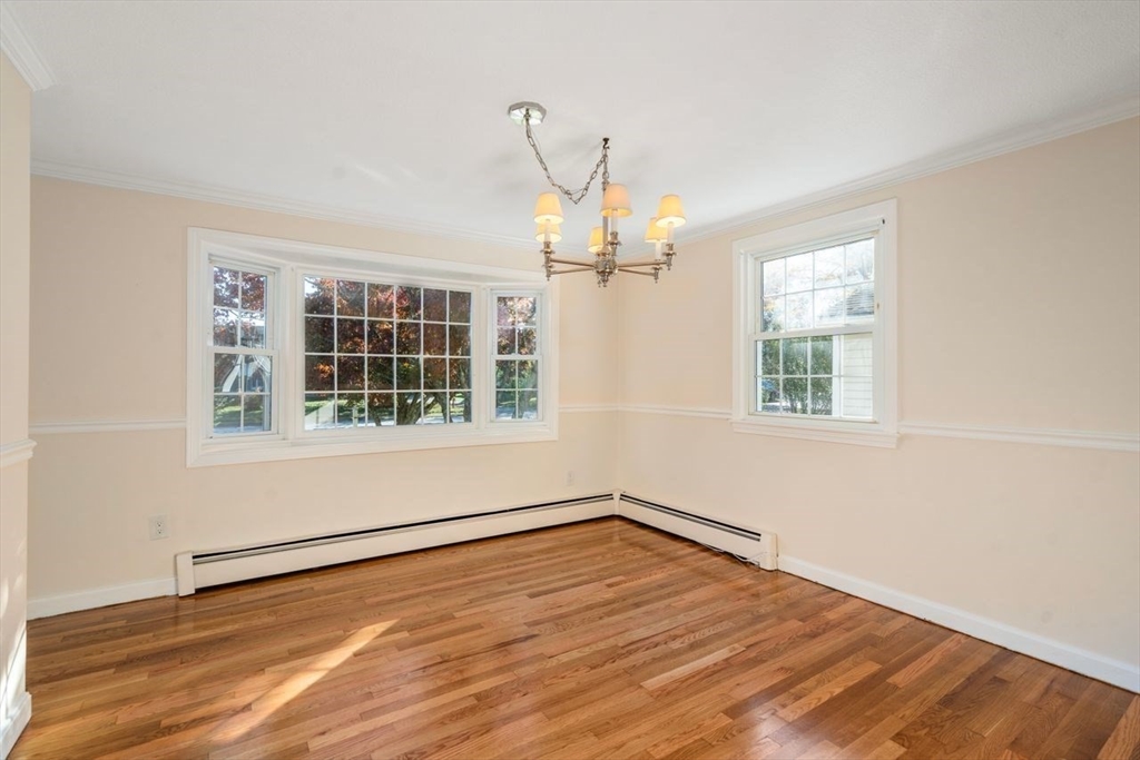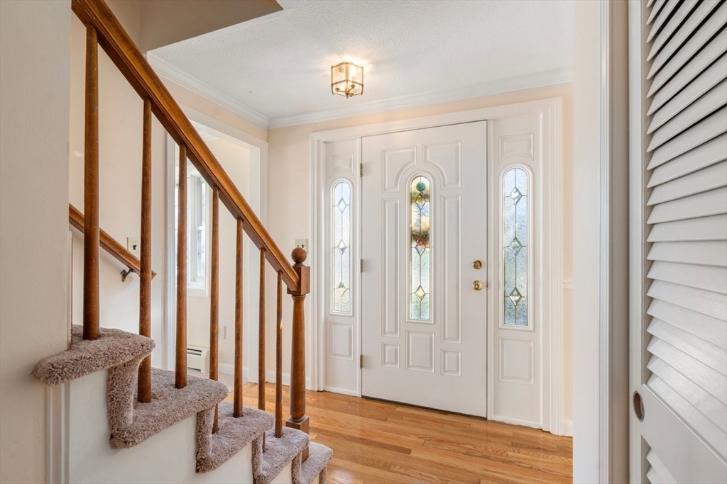 Welcome home to this meticulously maintained, move-in ready residence, perfectly positioned on a tranquil cul de sac in a highly sought after neighborhood. Designed for comfortable living & affording a variety of options for effortless entertaining, this delightful house offers an excellent flow & is flooded with natural light & lovely views of the large, level, manicured yard with its mature trees, garden areas & convenient shed, abutting a hayfield. Recent updates include newly refinished gleaming hardwood floors, plush new wall to wall carpeting & fresh paint throughout. Elegant crown molding adds a touch of sophistication to the spacious main rooms. Key features & amenities: eat-in kitchen, energy efficient paned windows, 2 year old upgraded electrical panel; abundant storage throughout; an oversized, attached, side entry, 1 car garage; a wonderfully green, peaceful location, combining easy access to major routes 93 & 495, shopping & recreation to provide gracious living.